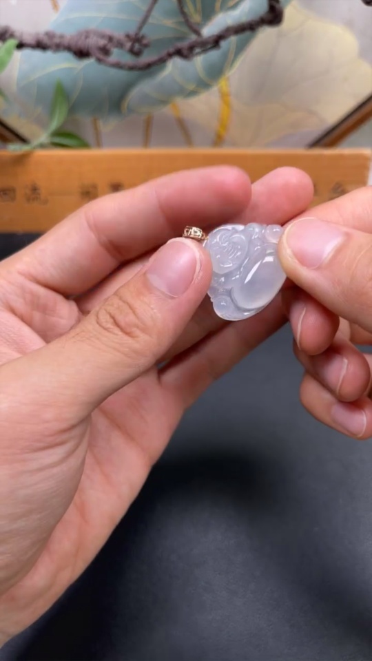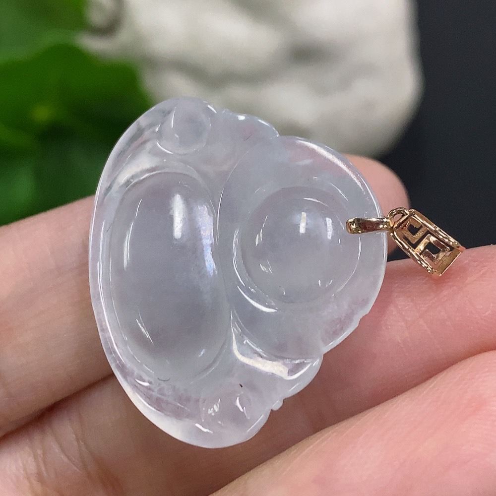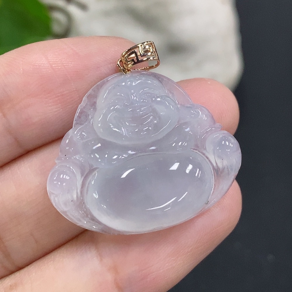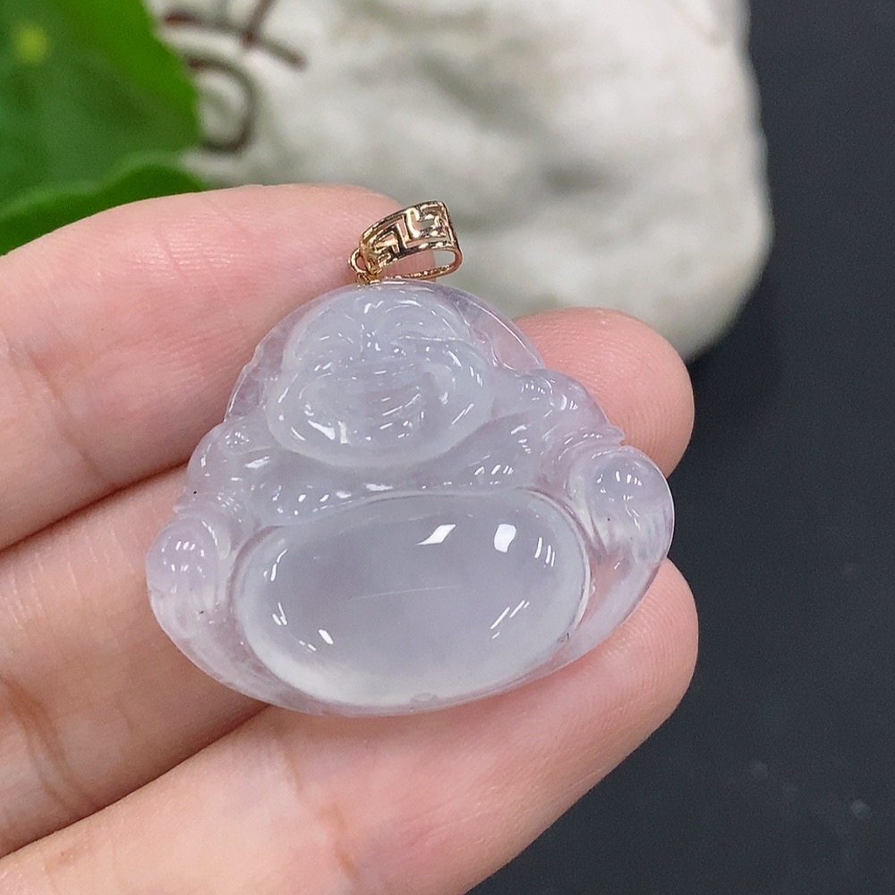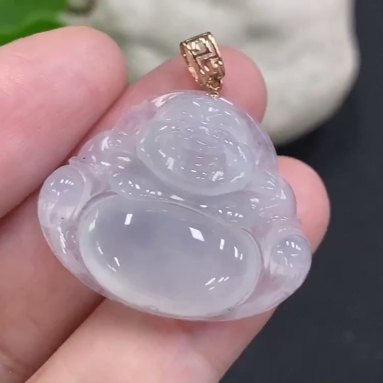 Jadeite Buddha Pendant with 18K Gold Clasp, Total Weight Approximately 5.8g