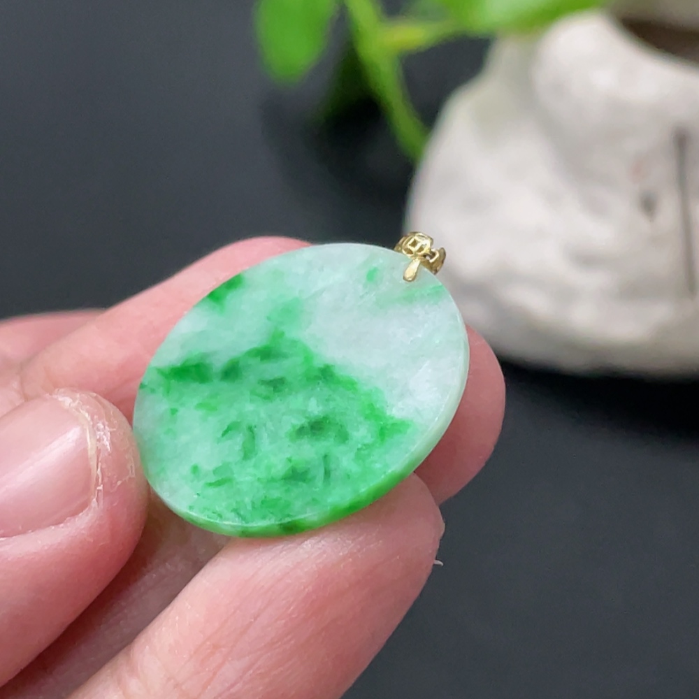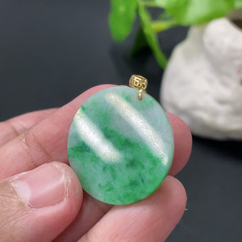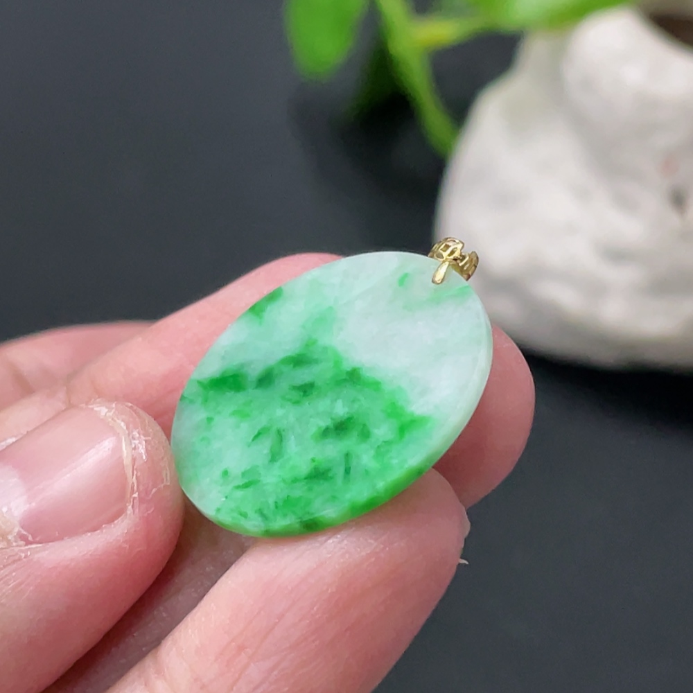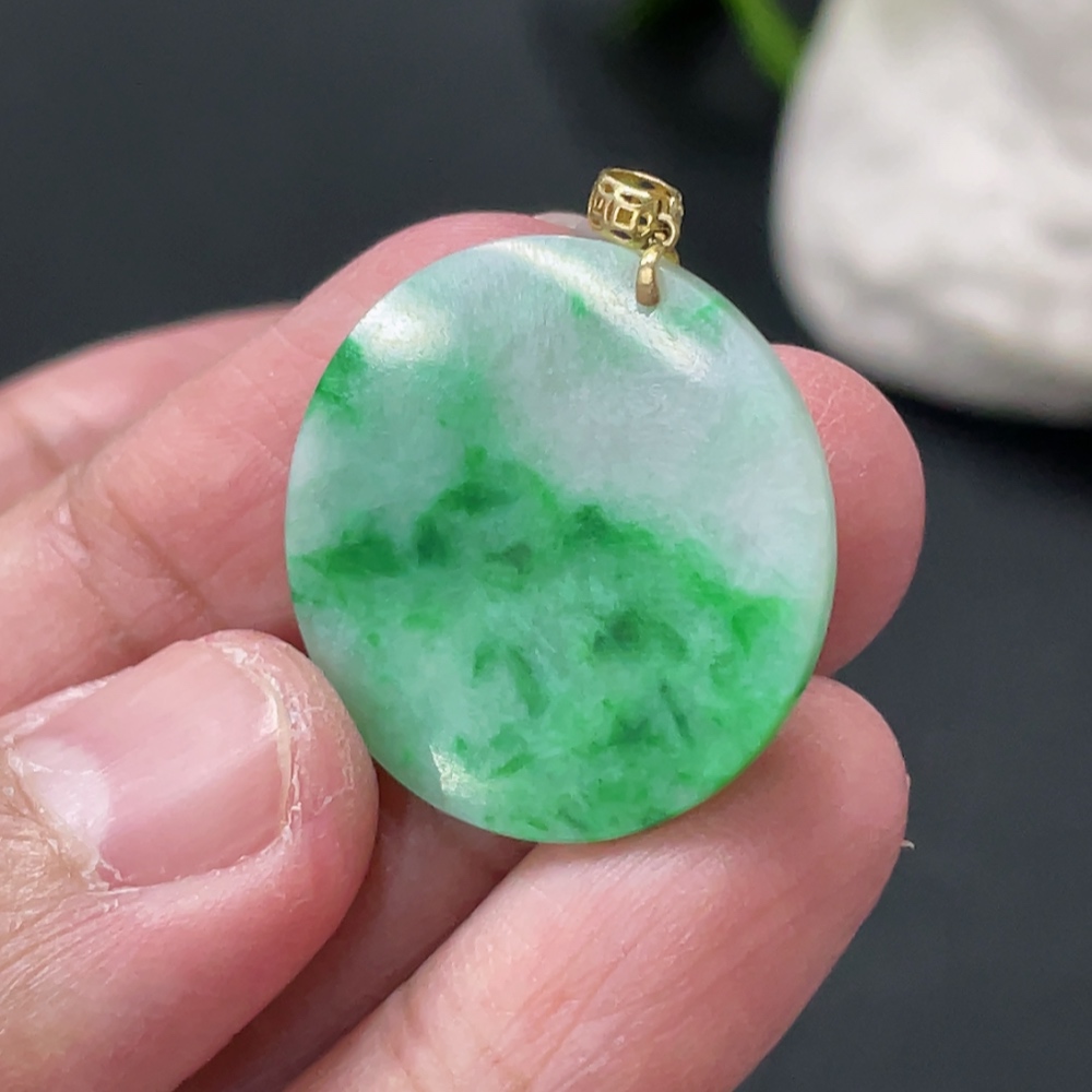 Jadeite Plain Pendant with 18K Gold Clasp, Total Weight Approx. 2.4g