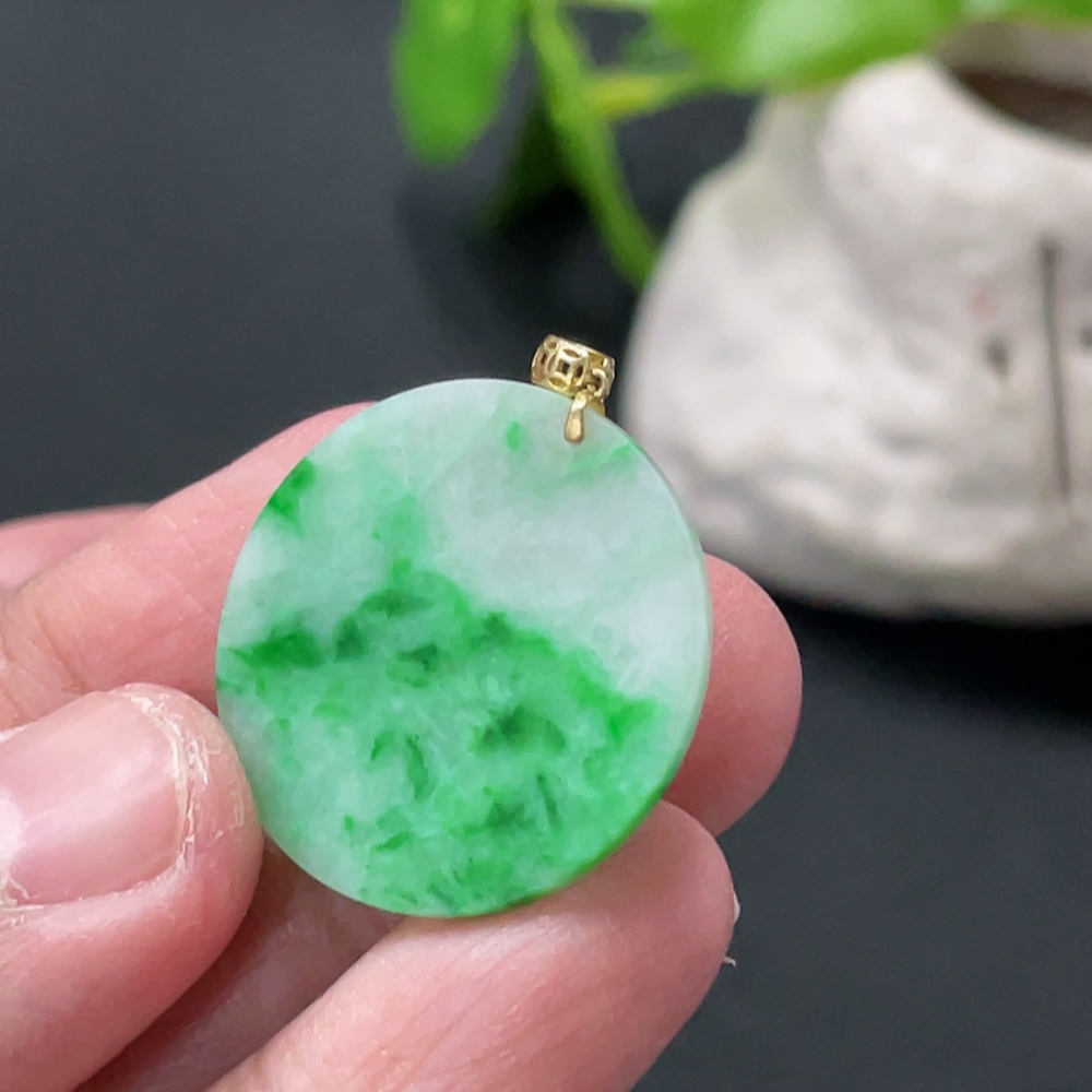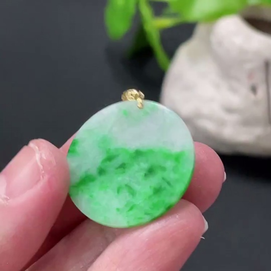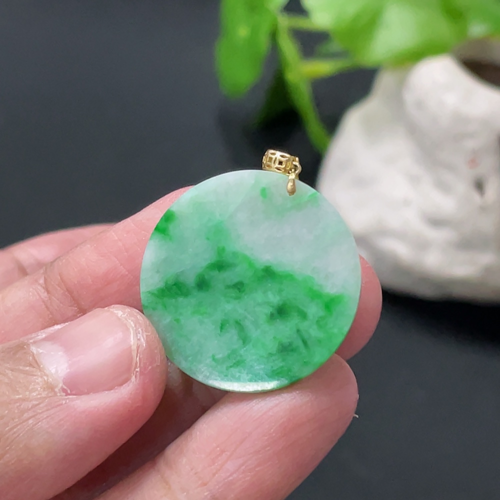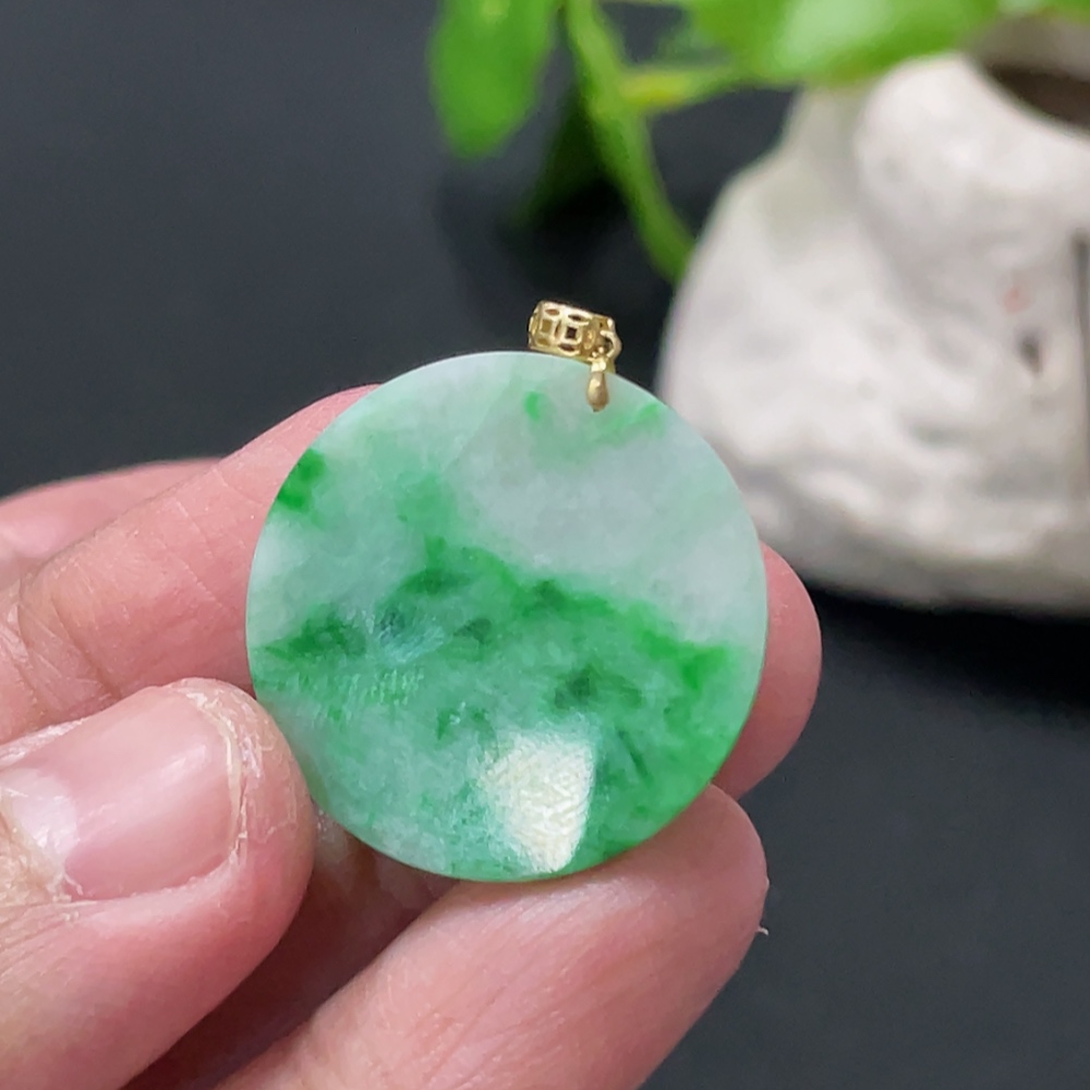 Jadeite Plain Pendant with 18K Gold Clasp, Total Weight Approx. 2.4g