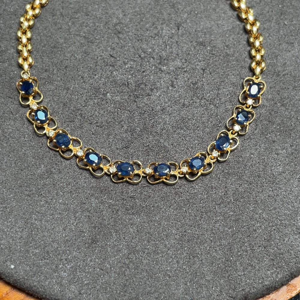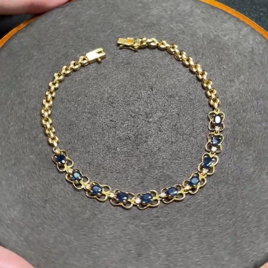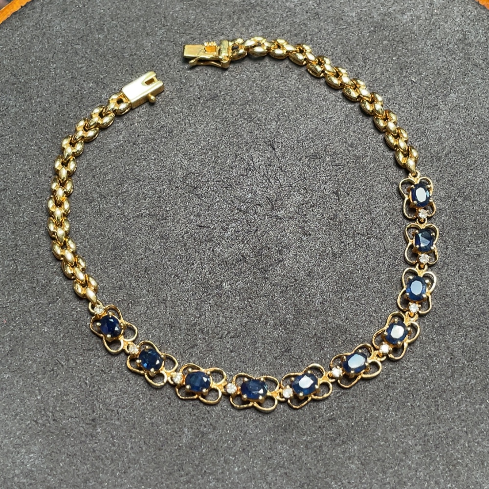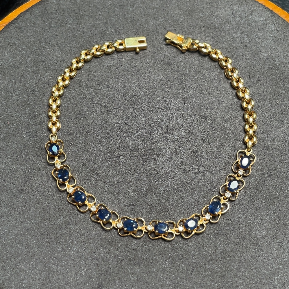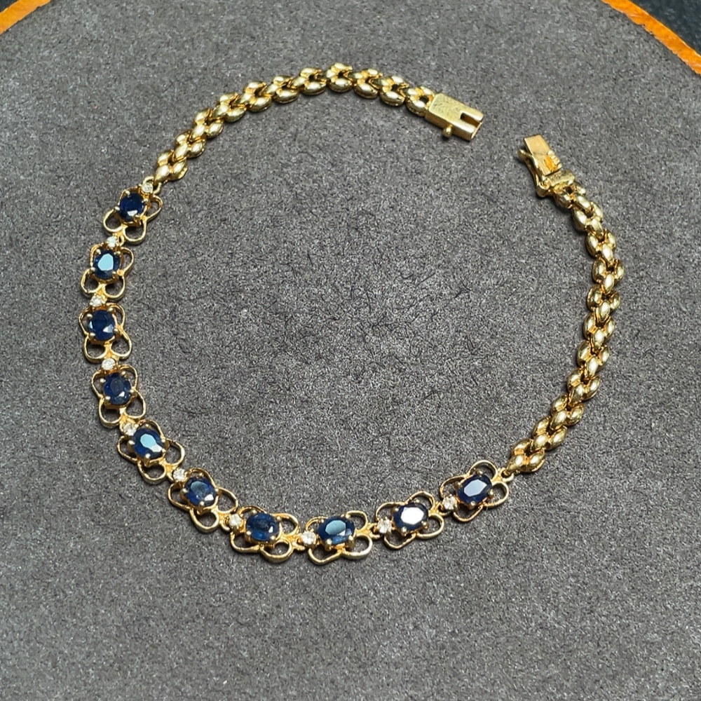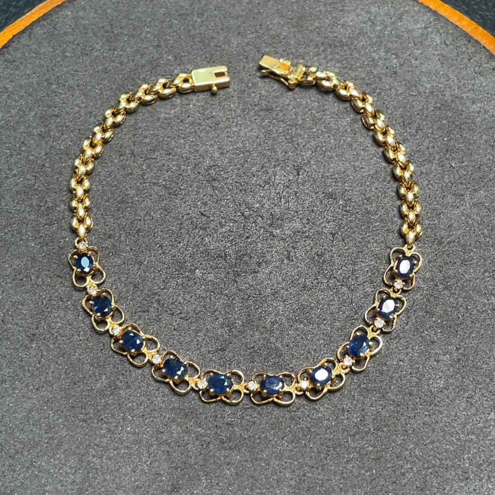 Sapphire Bracelet 18K Gold with Diamond Accents, Total Weight Approx. 5.58g