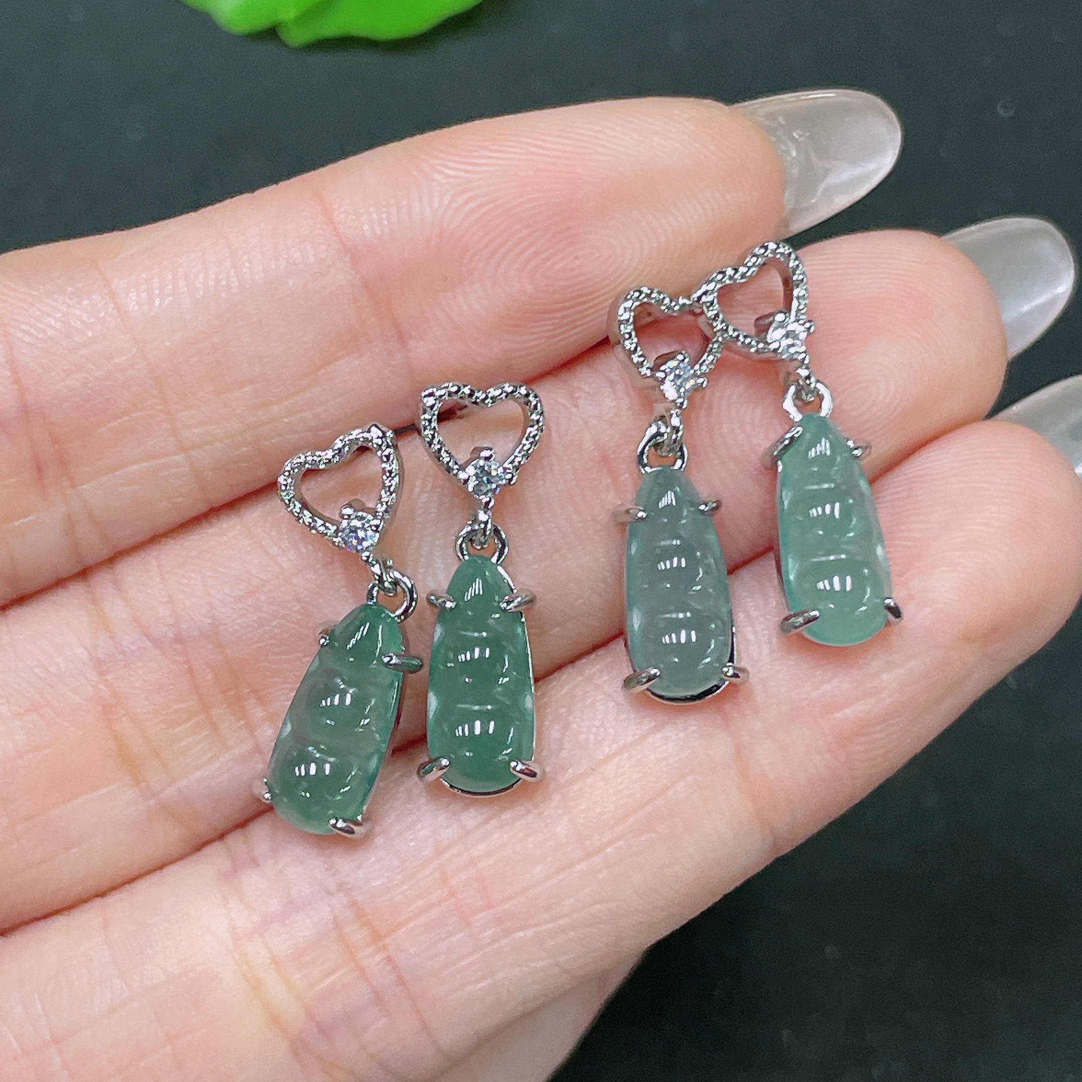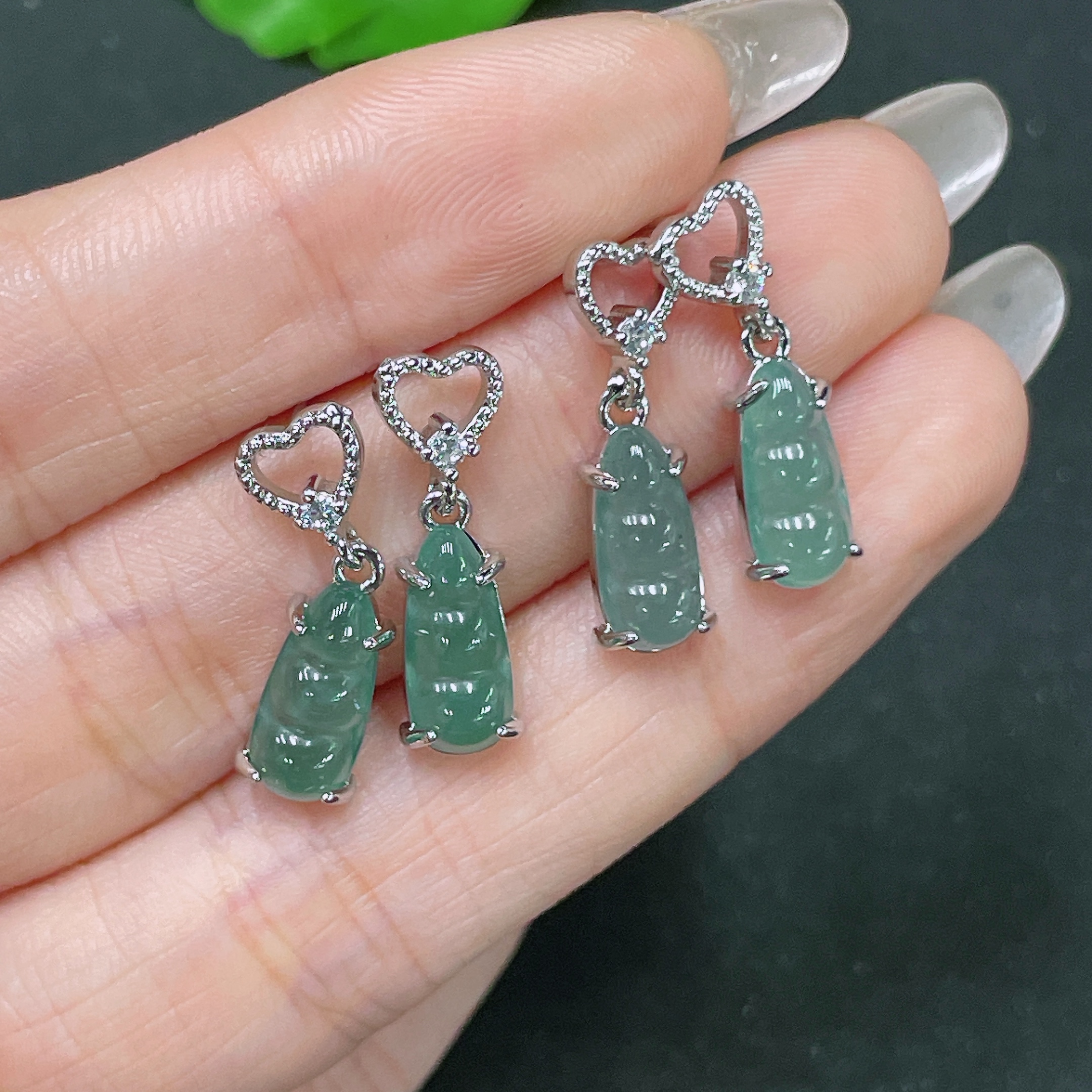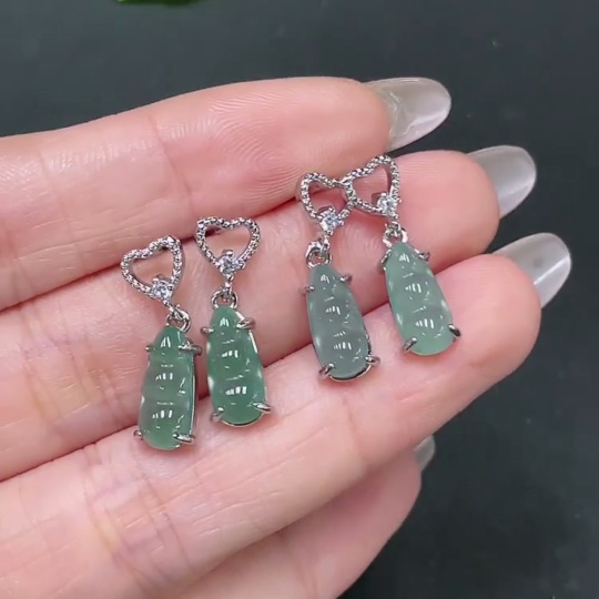Jadeite Inlaid Non-Gold Earrings