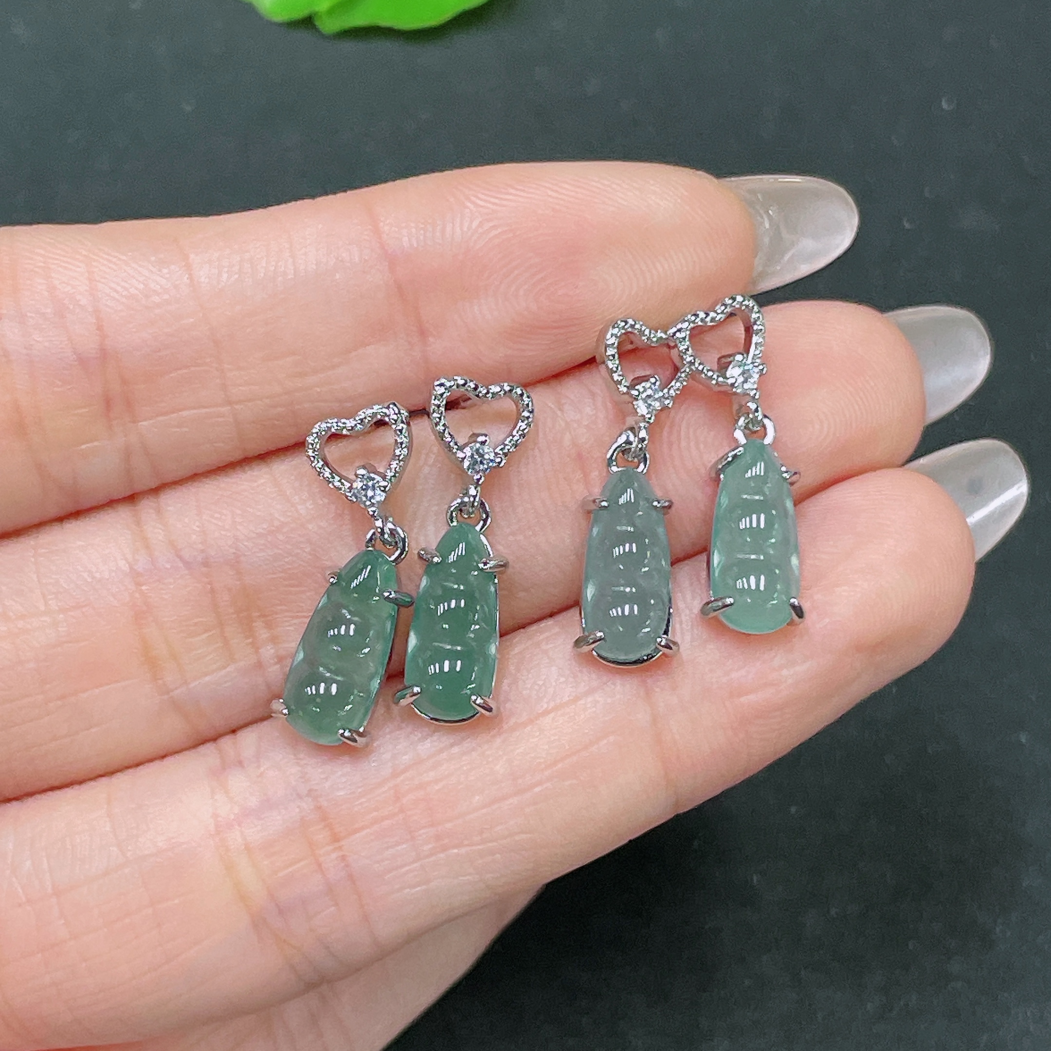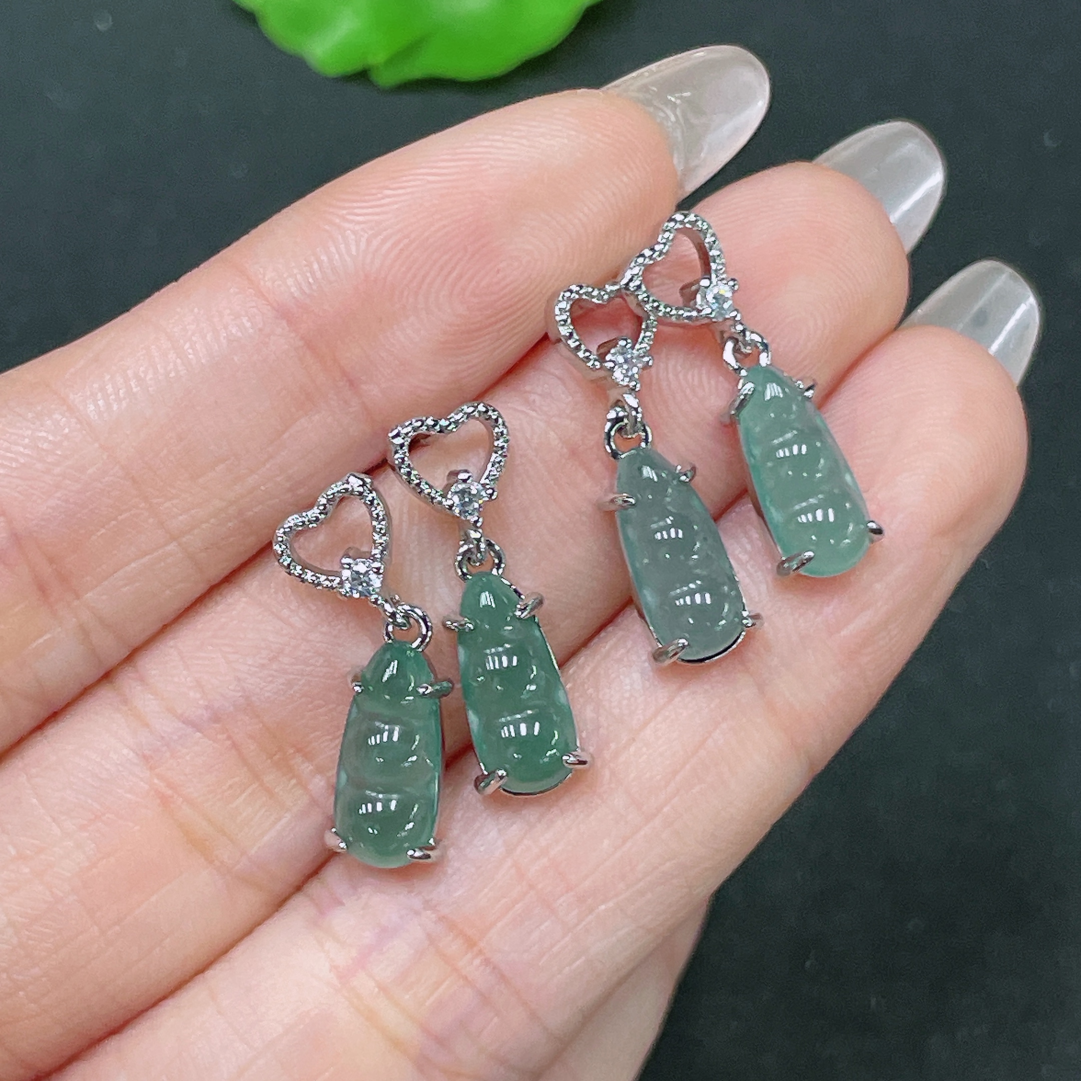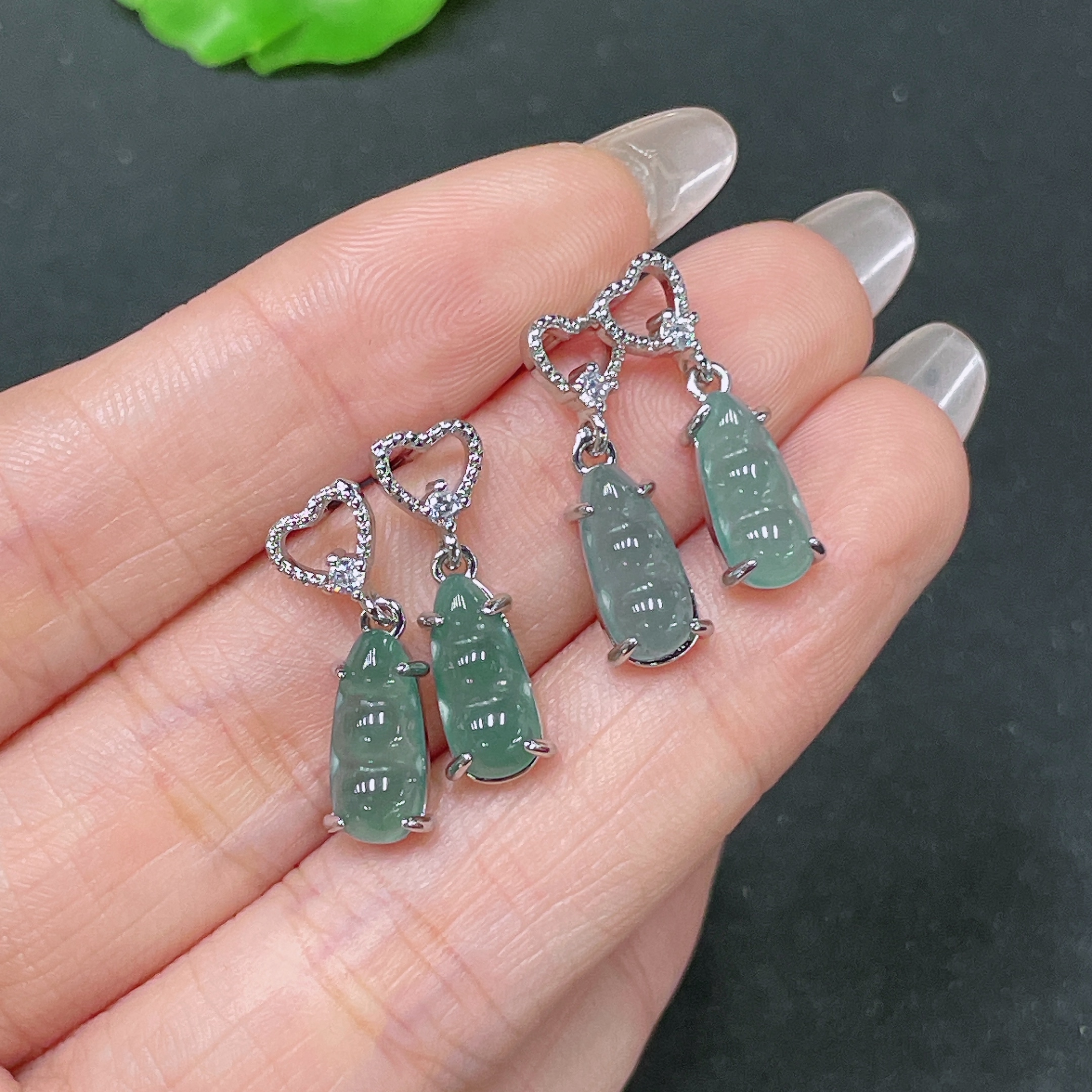 Jadeite Inlaid Non-Gold Earrings