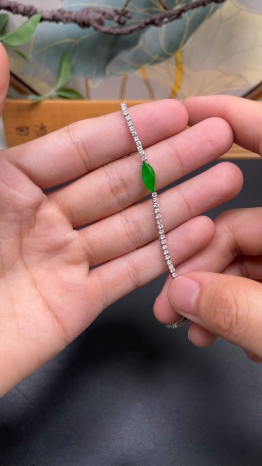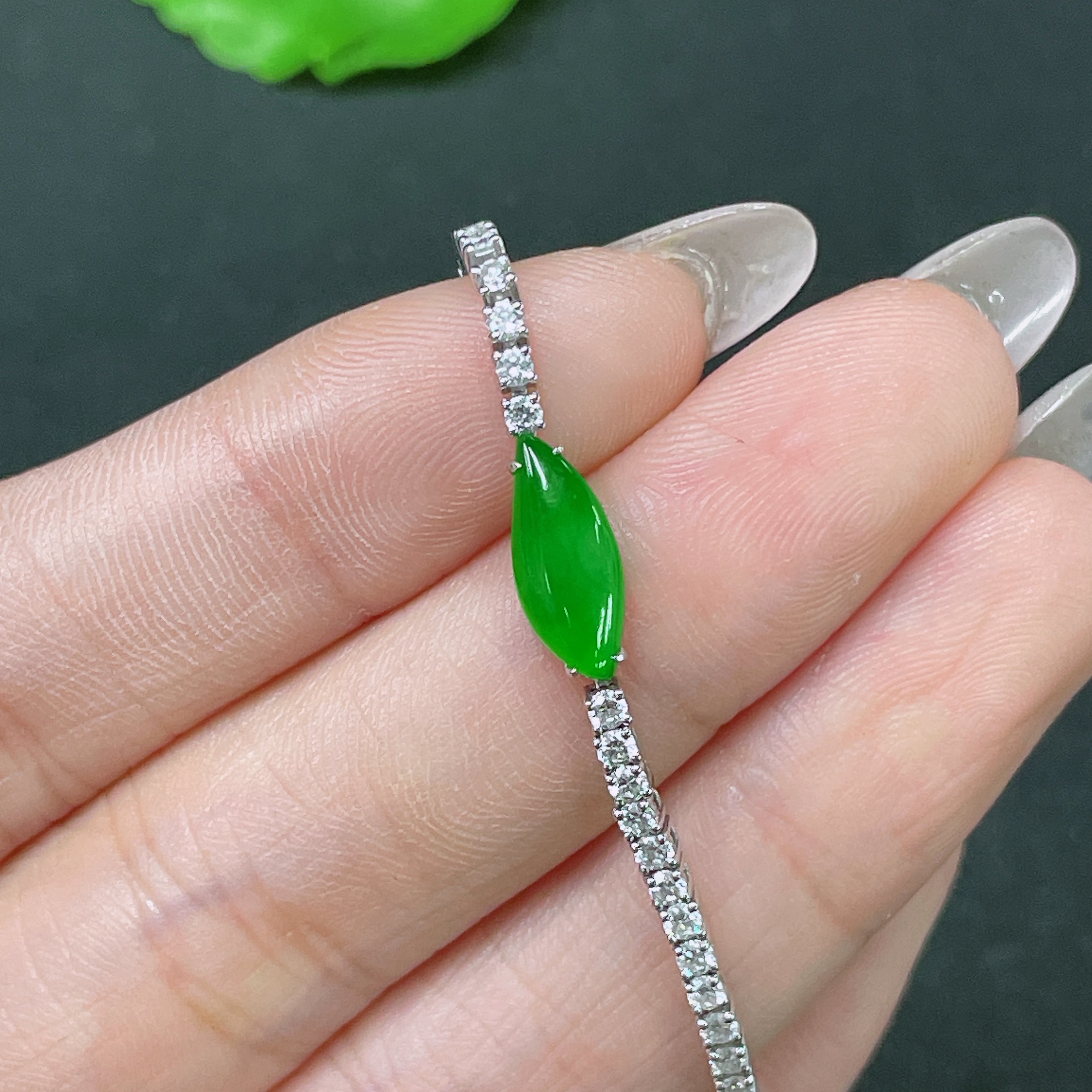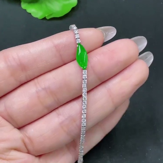 Jadeite Inlaid Bracelet Non-Diamond 18k Gold Inlaid Total Weight Approx. 5.73g