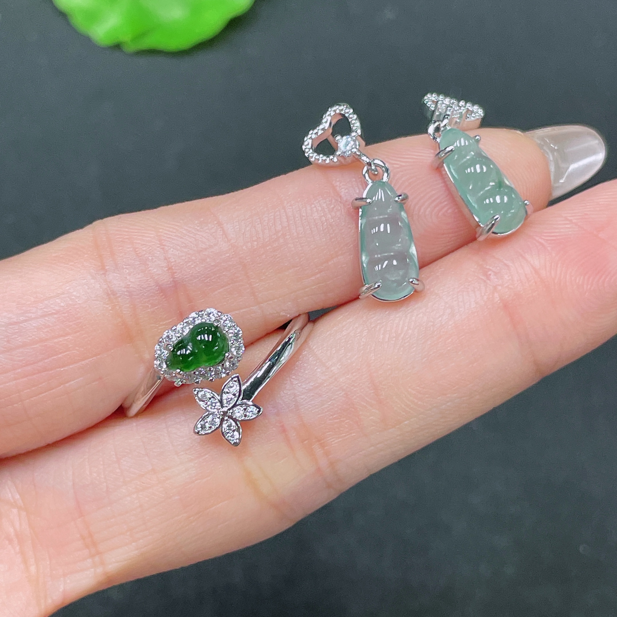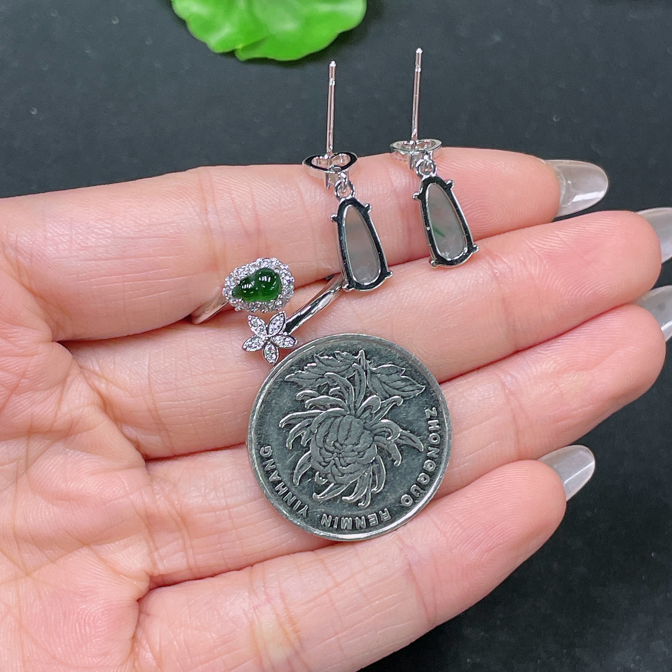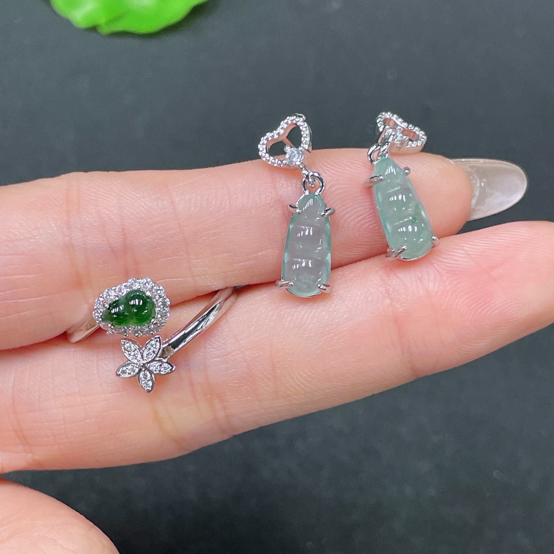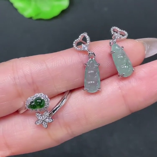 Jadeite Inlaid Earrings Non-Gold Sell as a Lot