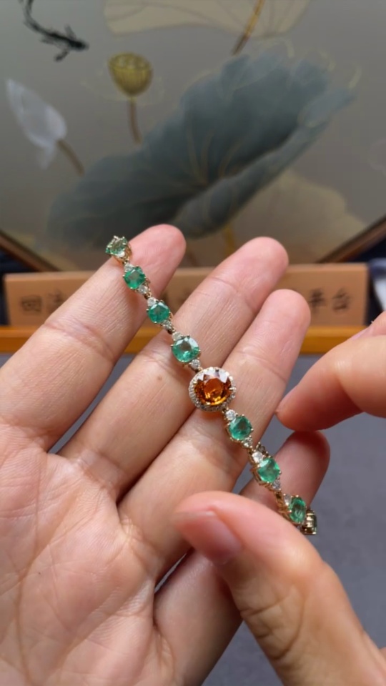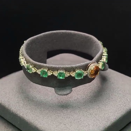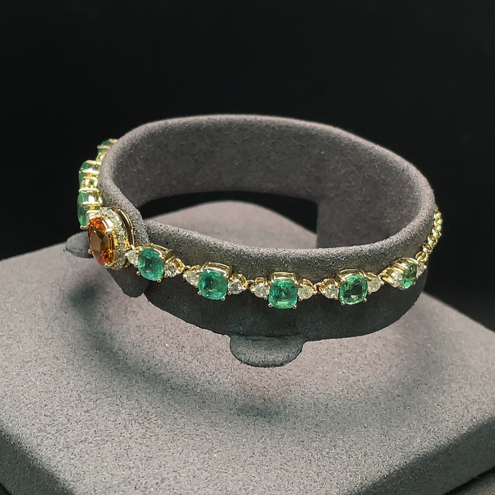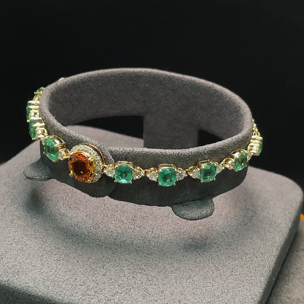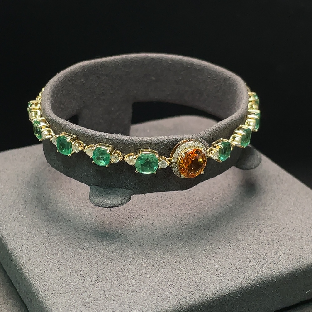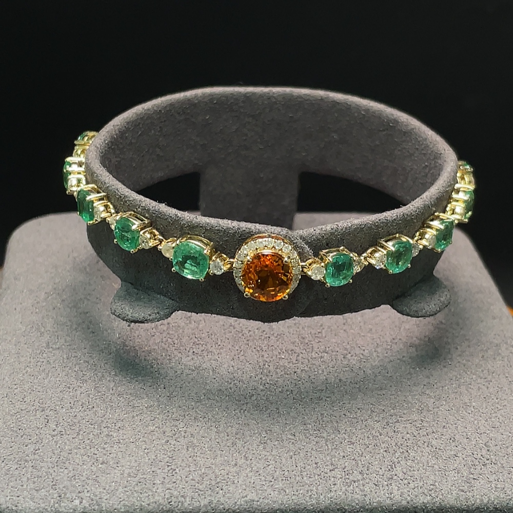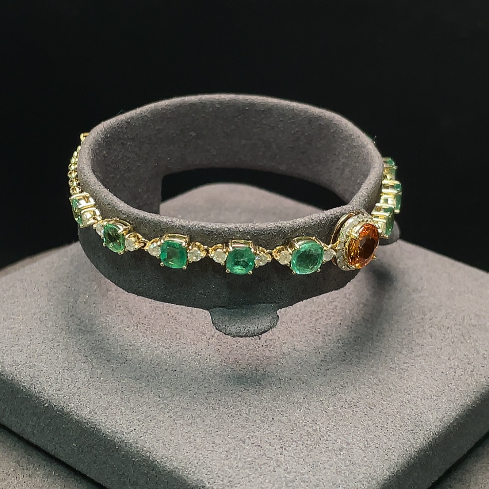 18K gold emerald bracelet clarity optimized with garnet and diamond accents total weight approximately 5.57 grams