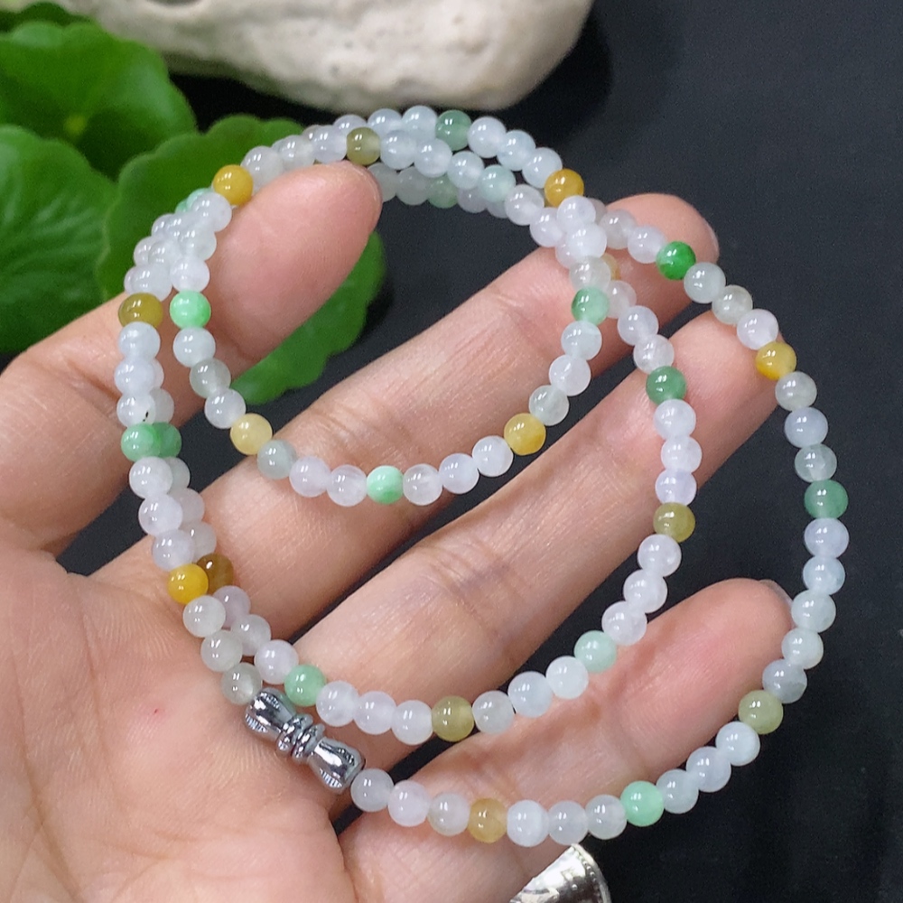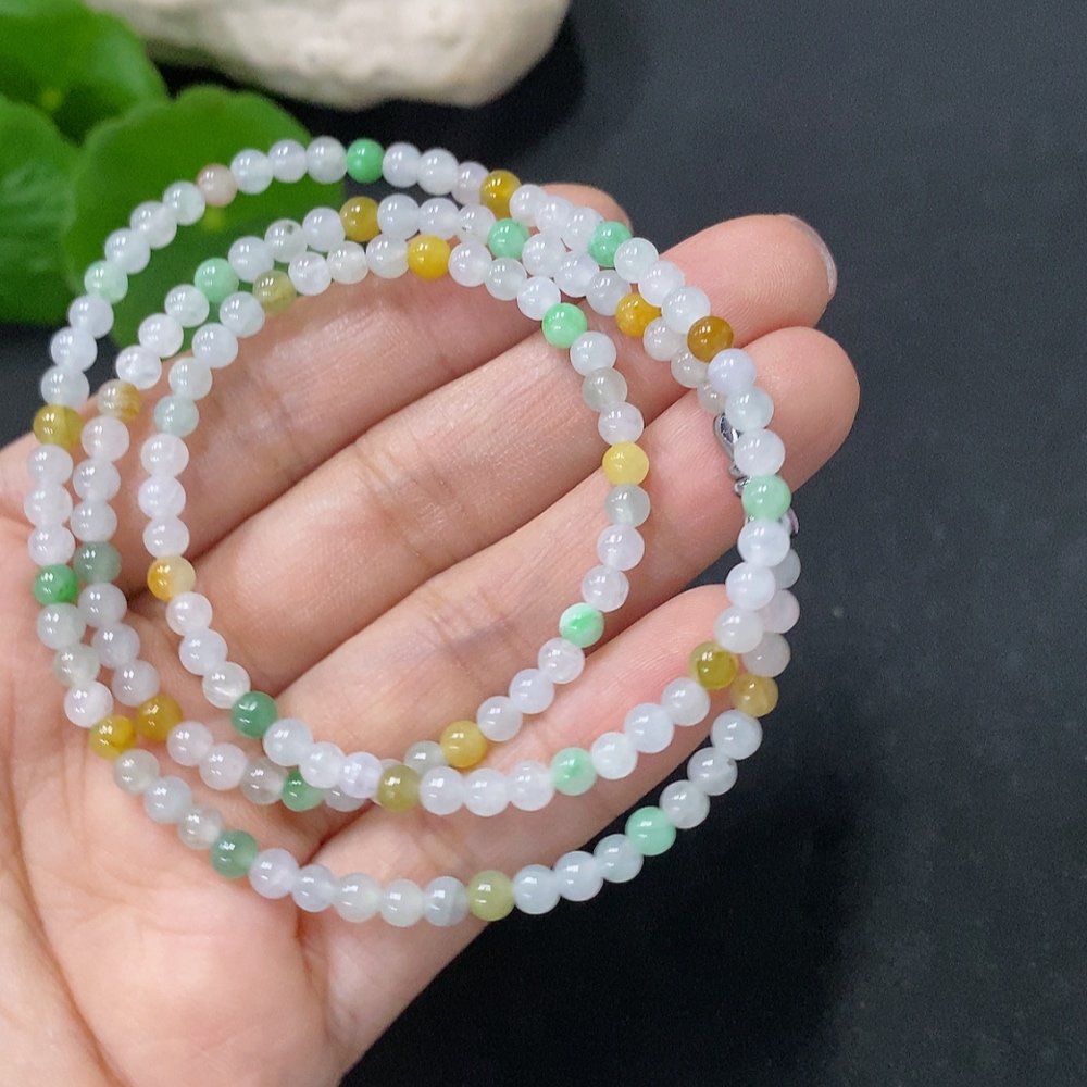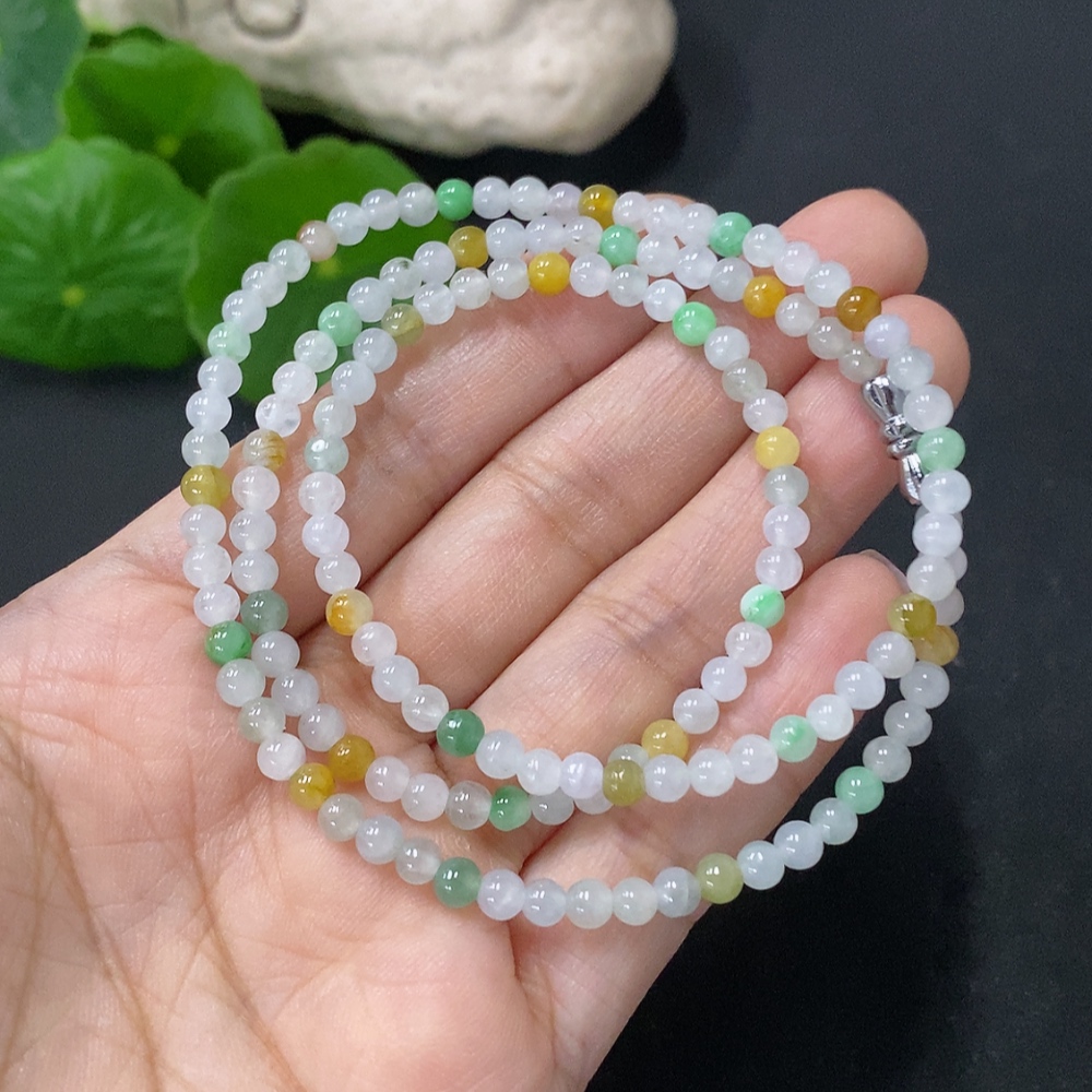 Jadeite Bead Necklace Approx. 4mm Non-Gold Total Weight Approx. 13.39g