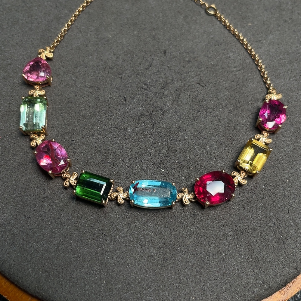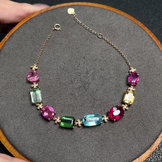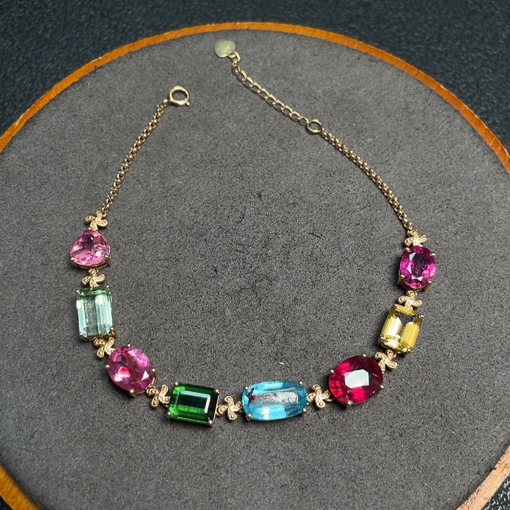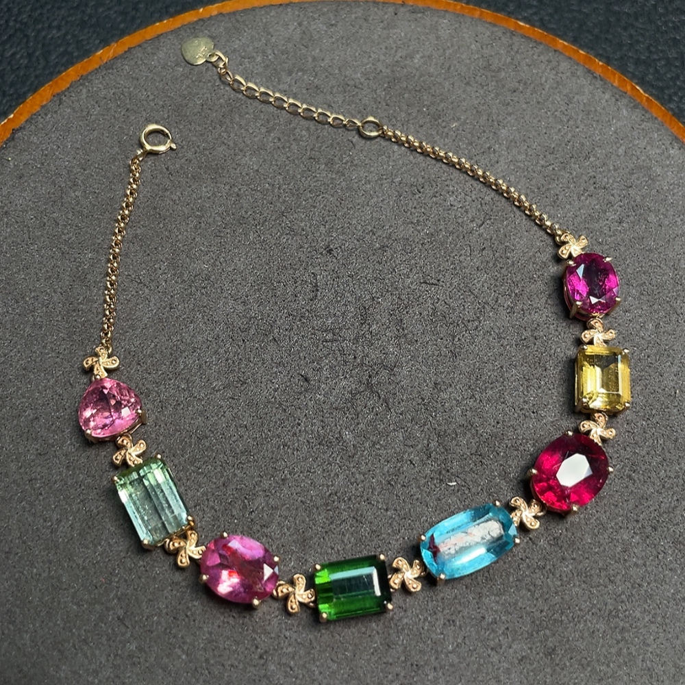 Tourmaline bracelet with visible organic matter, non-natural accent stones, wrapped stones in 71% gold, other parts in 18k gold, total weight approx. 7.35g, size approx. 9.1*7.2mm (with included stones)