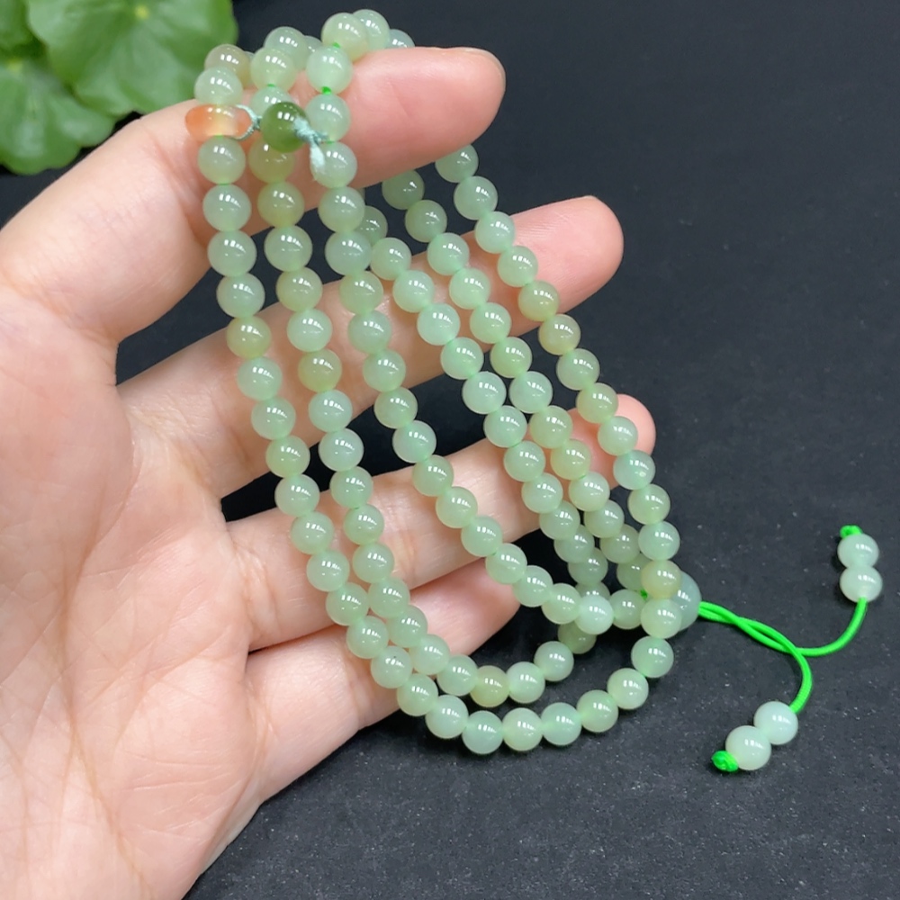 Hetian Jade Bead Necklace, Approx. 5mm, Total Weight Approx. 24.7g