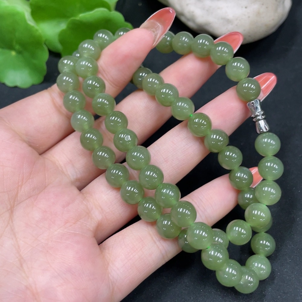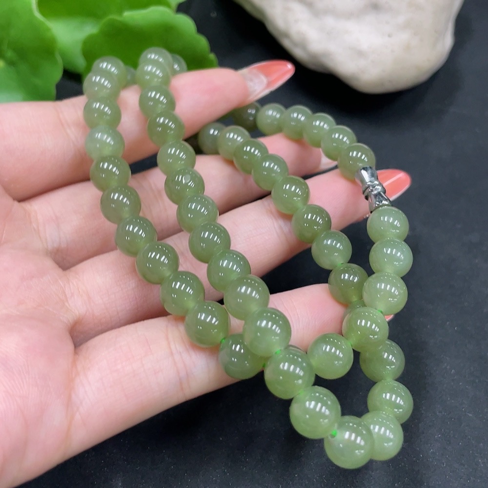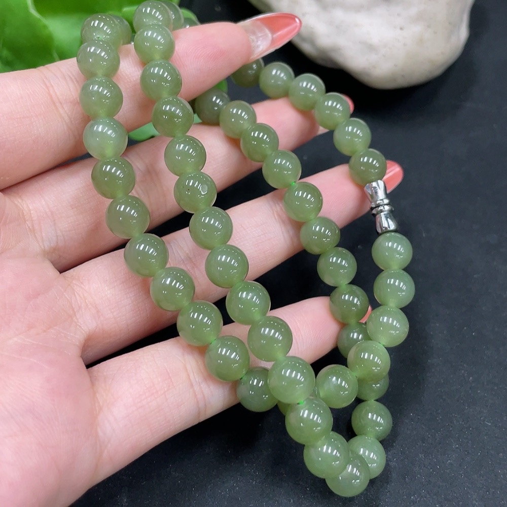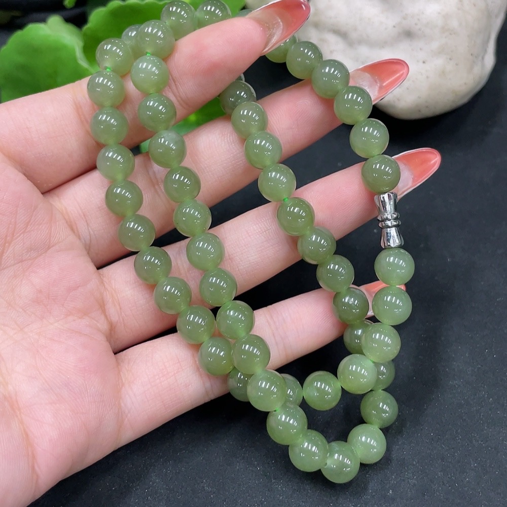 Hetian Jade Bead Necklace Approx. 8mm Non-Gold Total Weight Approx. 44.9g