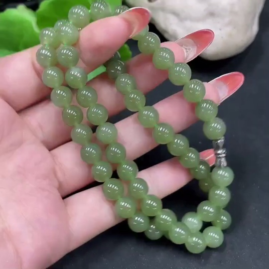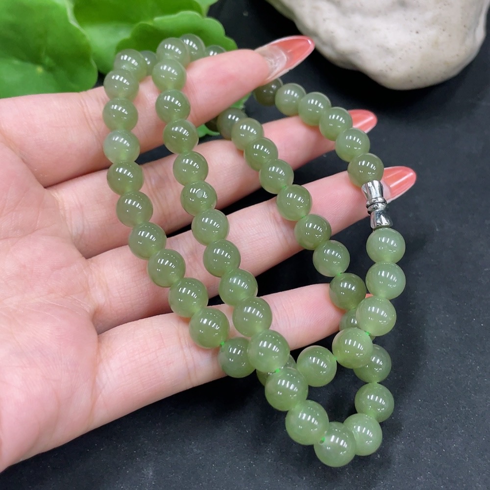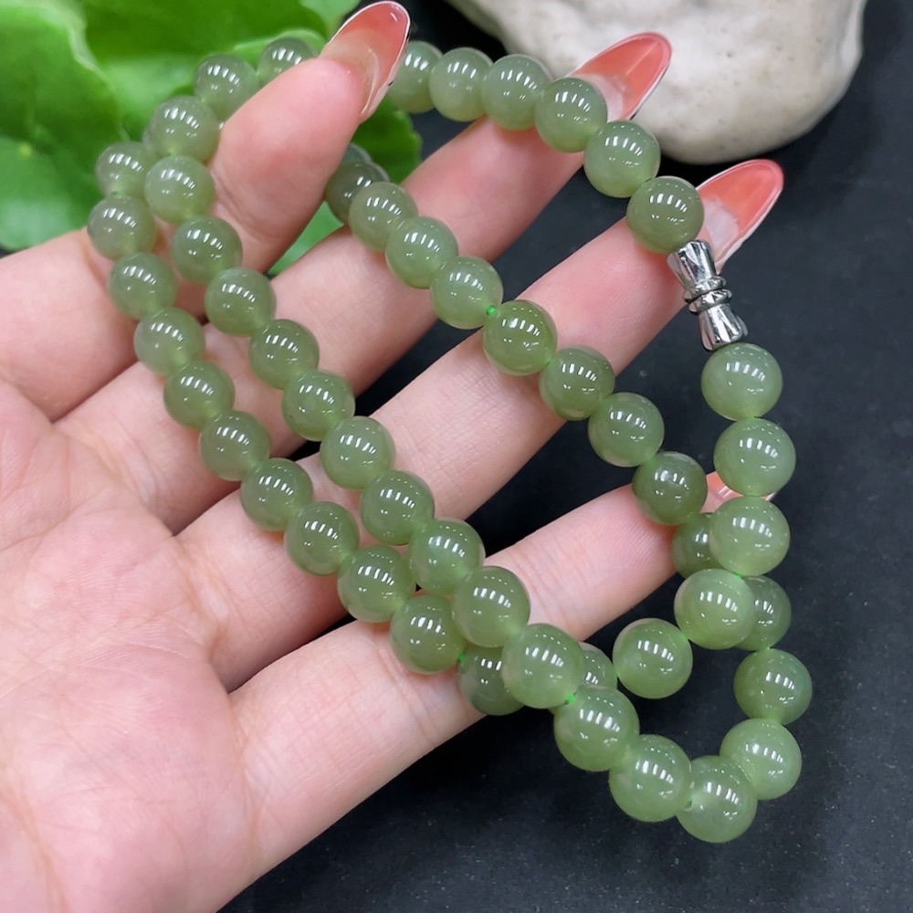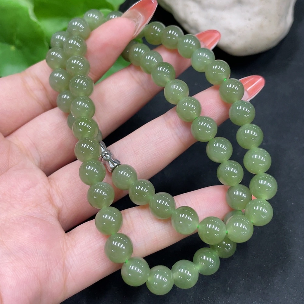 Hetian Jade Bead Necklace Approx. 8mm Non-Gold Total Weight Approx. 44.9g