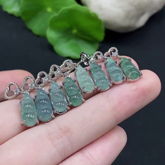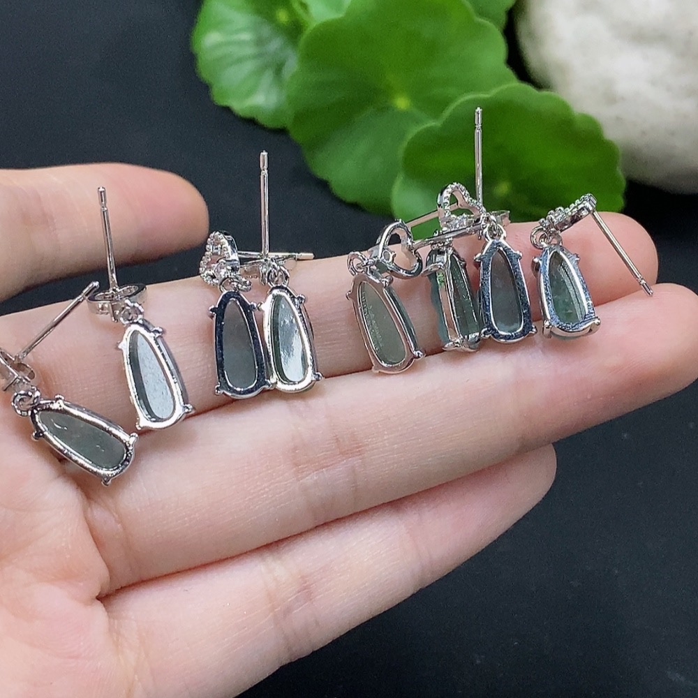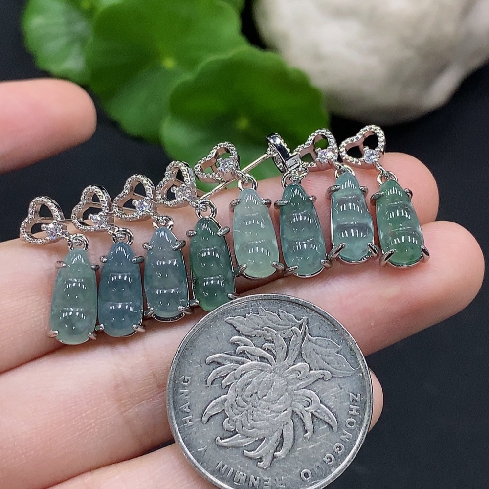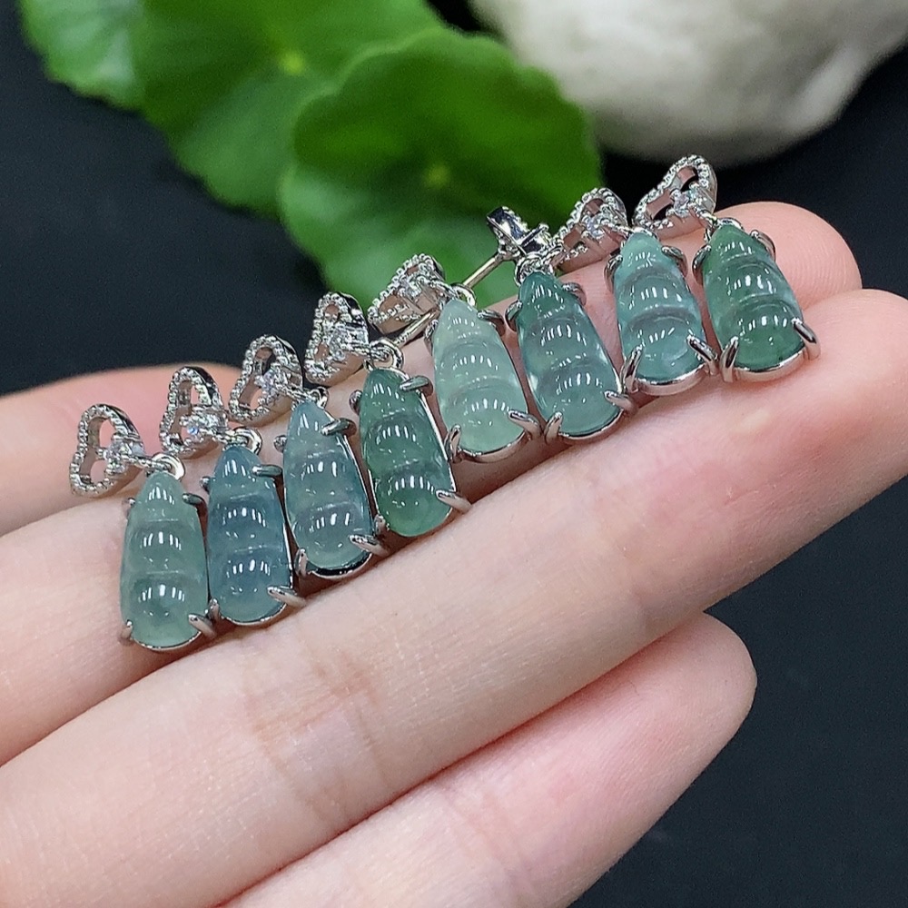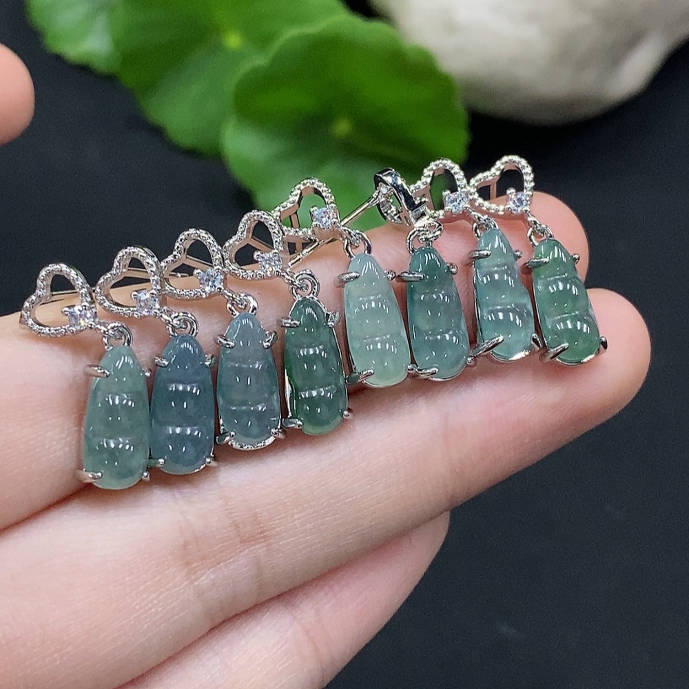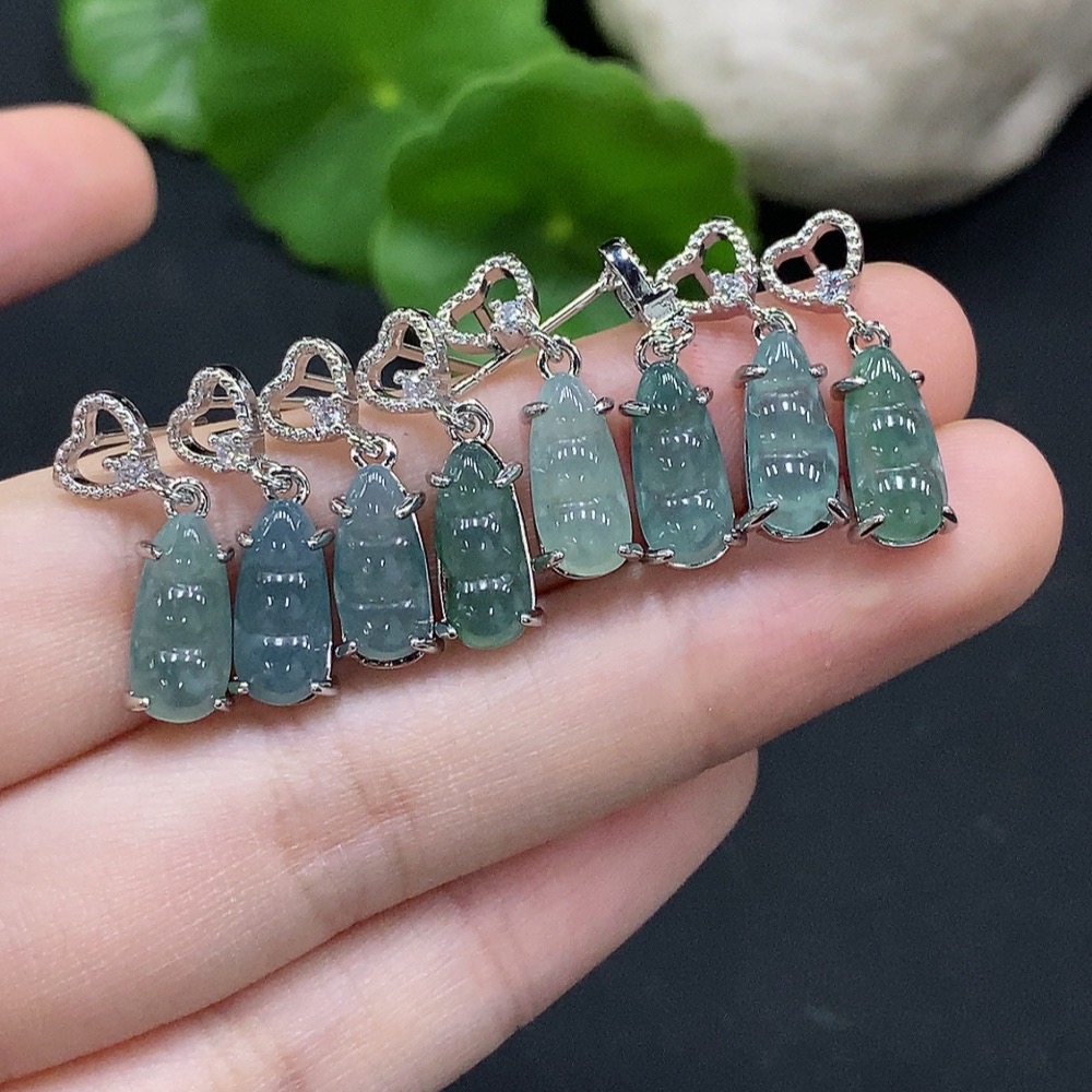 Jadeite Lucky Bean Inlaid Earrings Non-Gold Inlaid