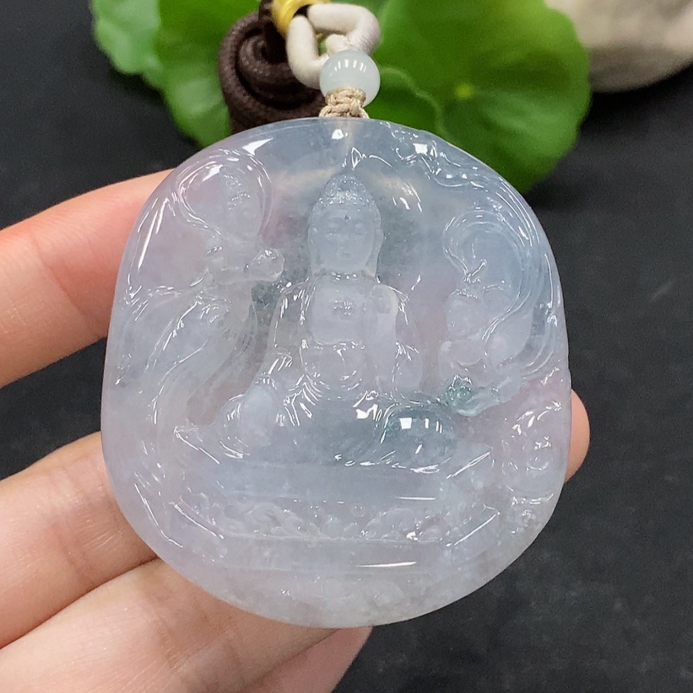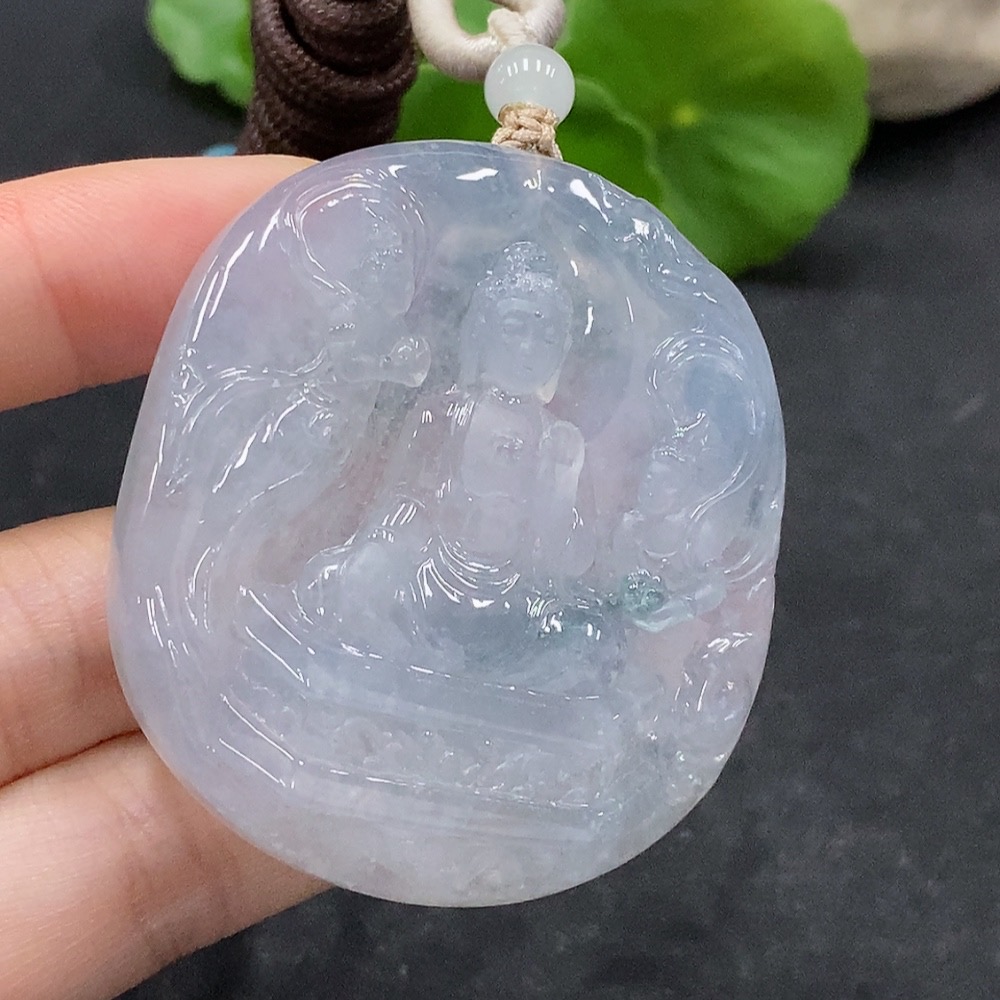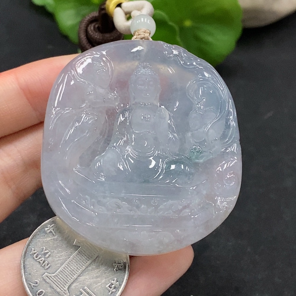 Jadeite Amitabha Buddha Pendant with a total weight of approximately 62.2 grams (including rope weight)