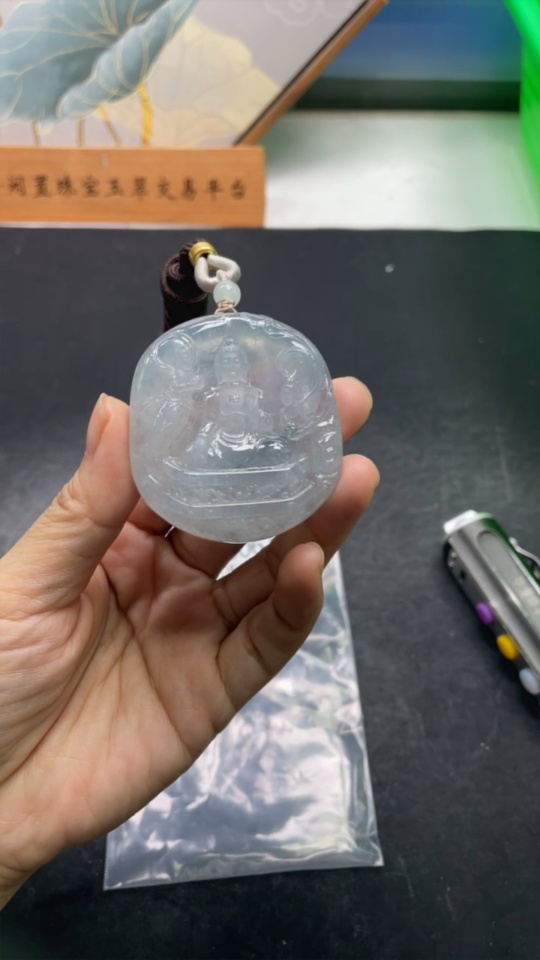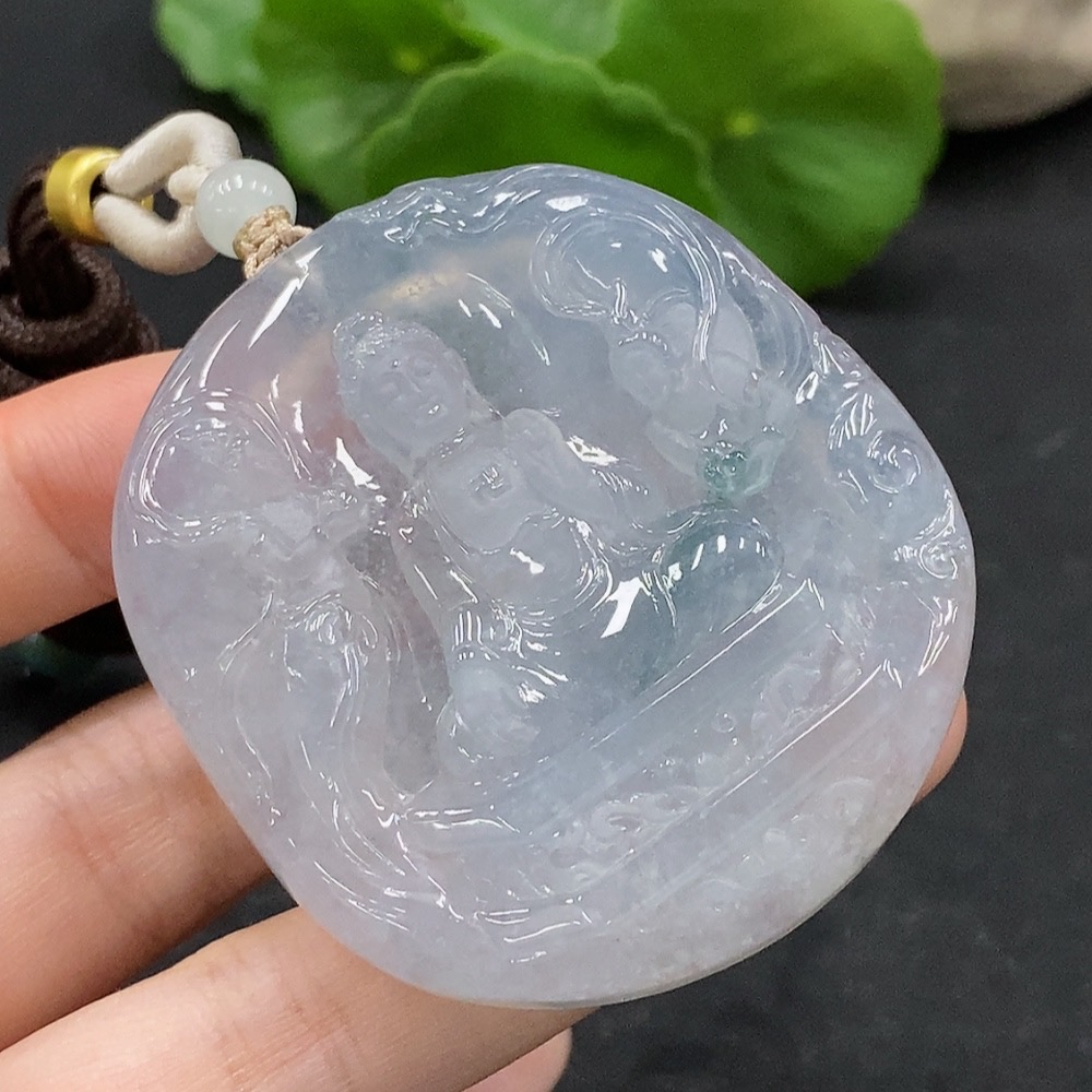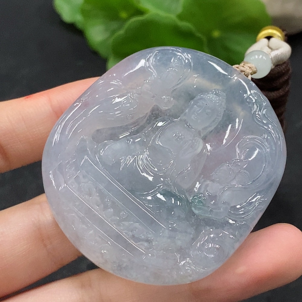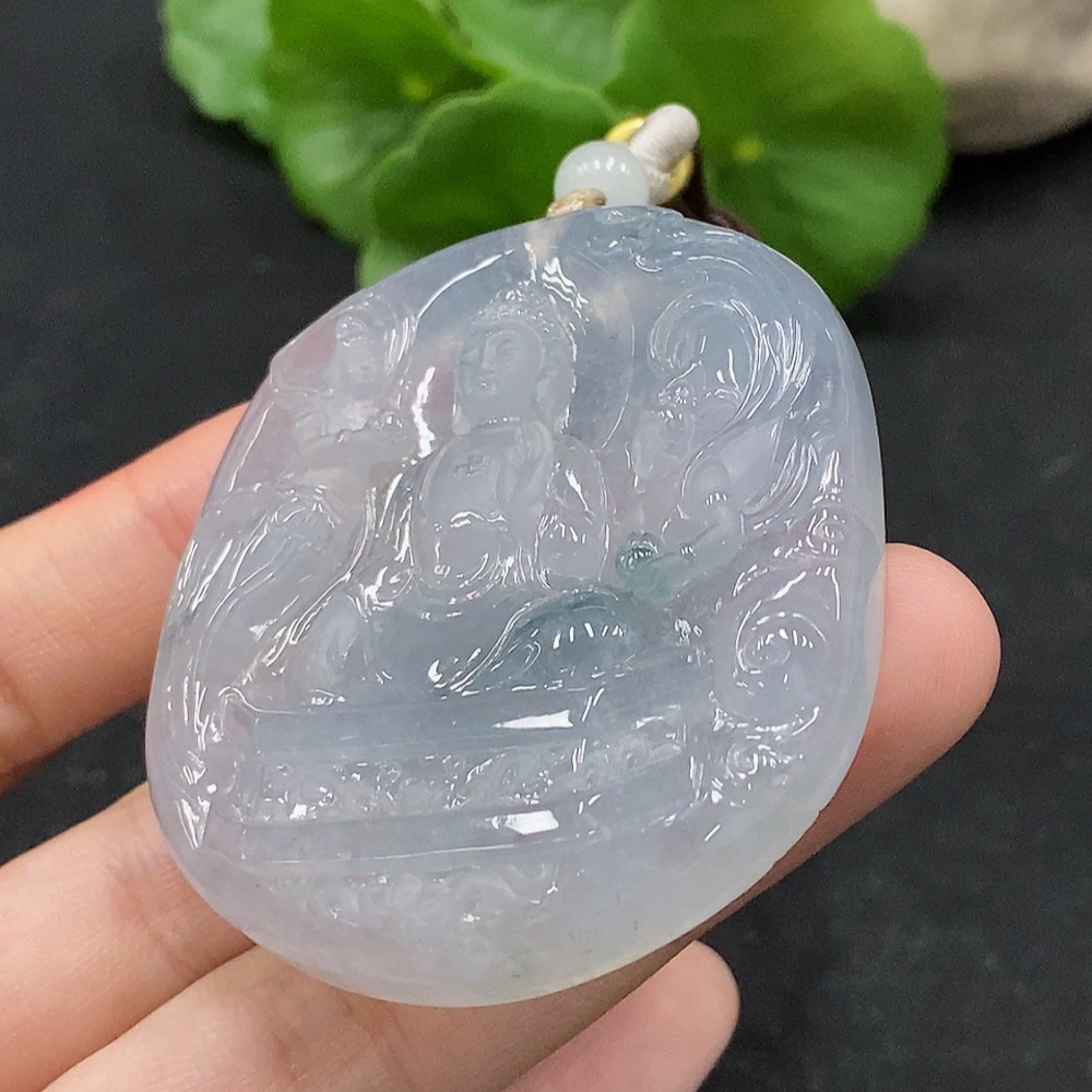 Jadeite Amitabha Buddha Pendant with a total weight of approximately 62.2 grams (including rope weight)