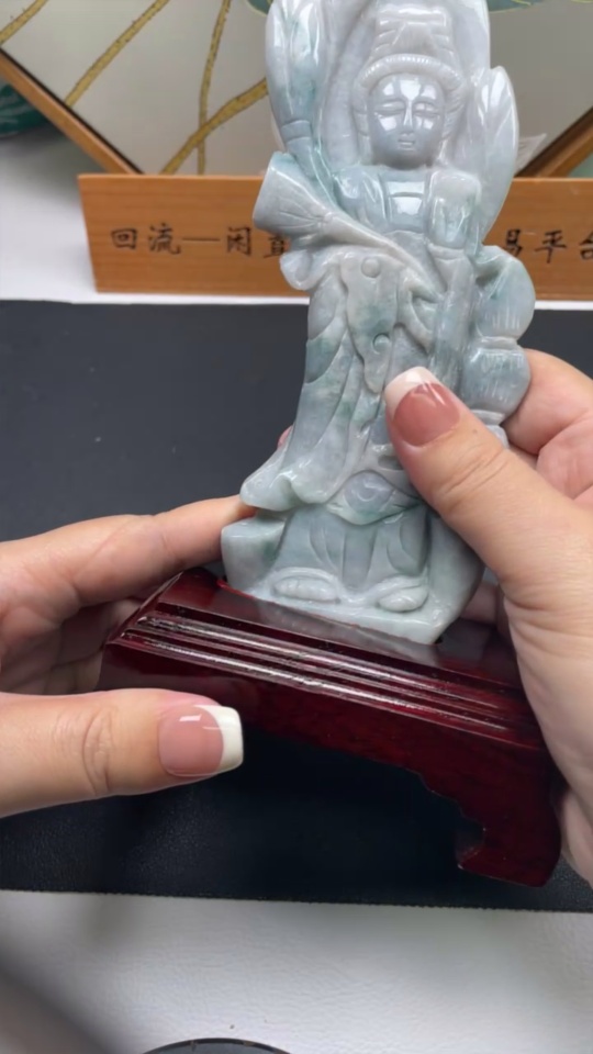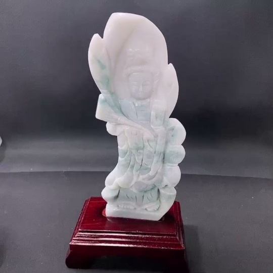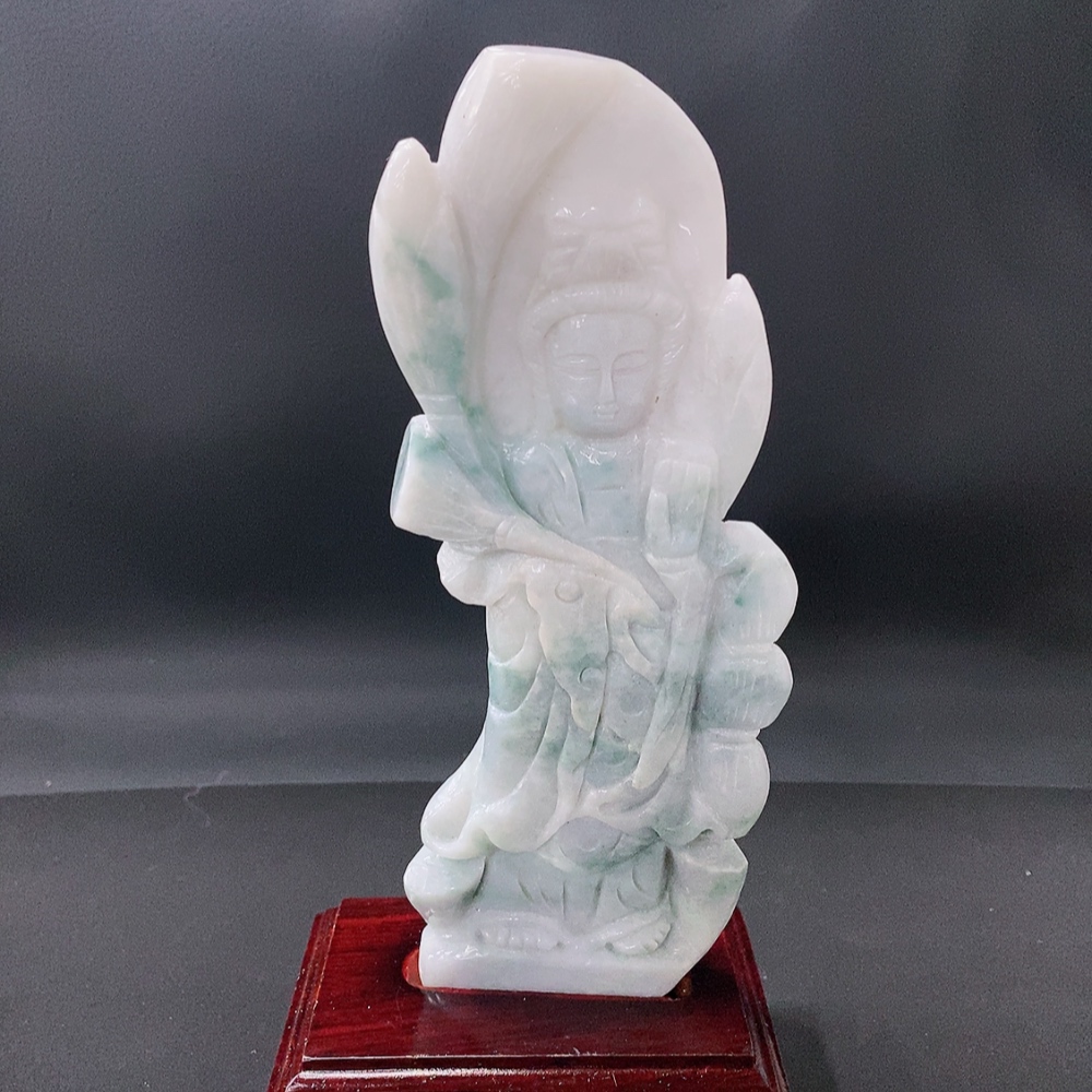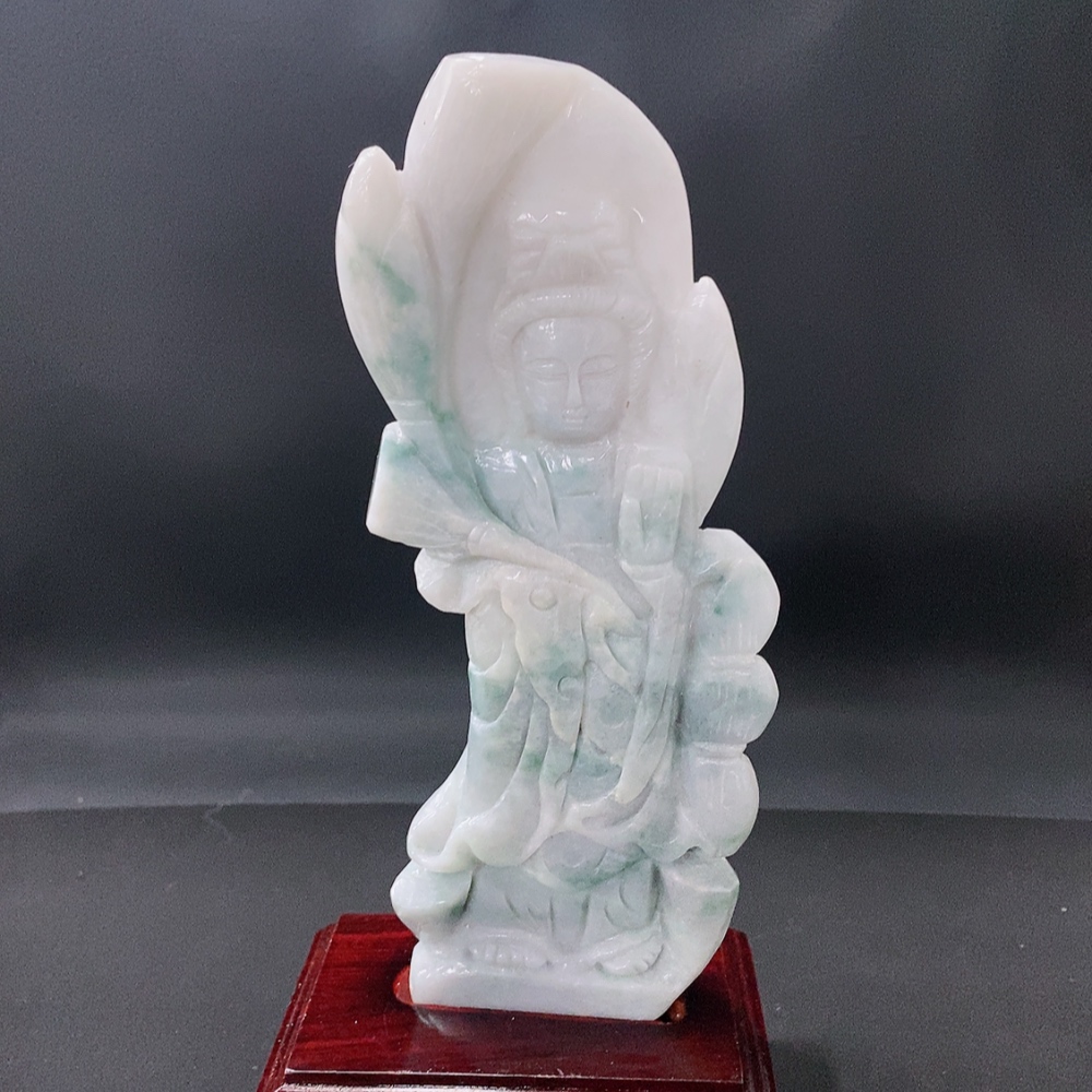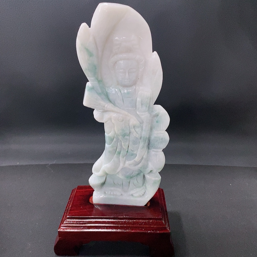 Jadeite Guanyin ornament with base, total weight approx. 301.5g