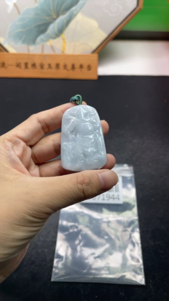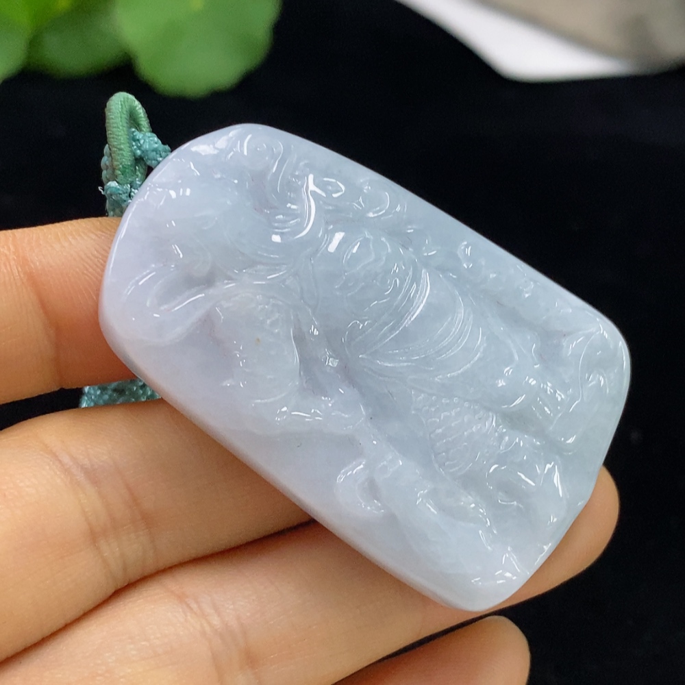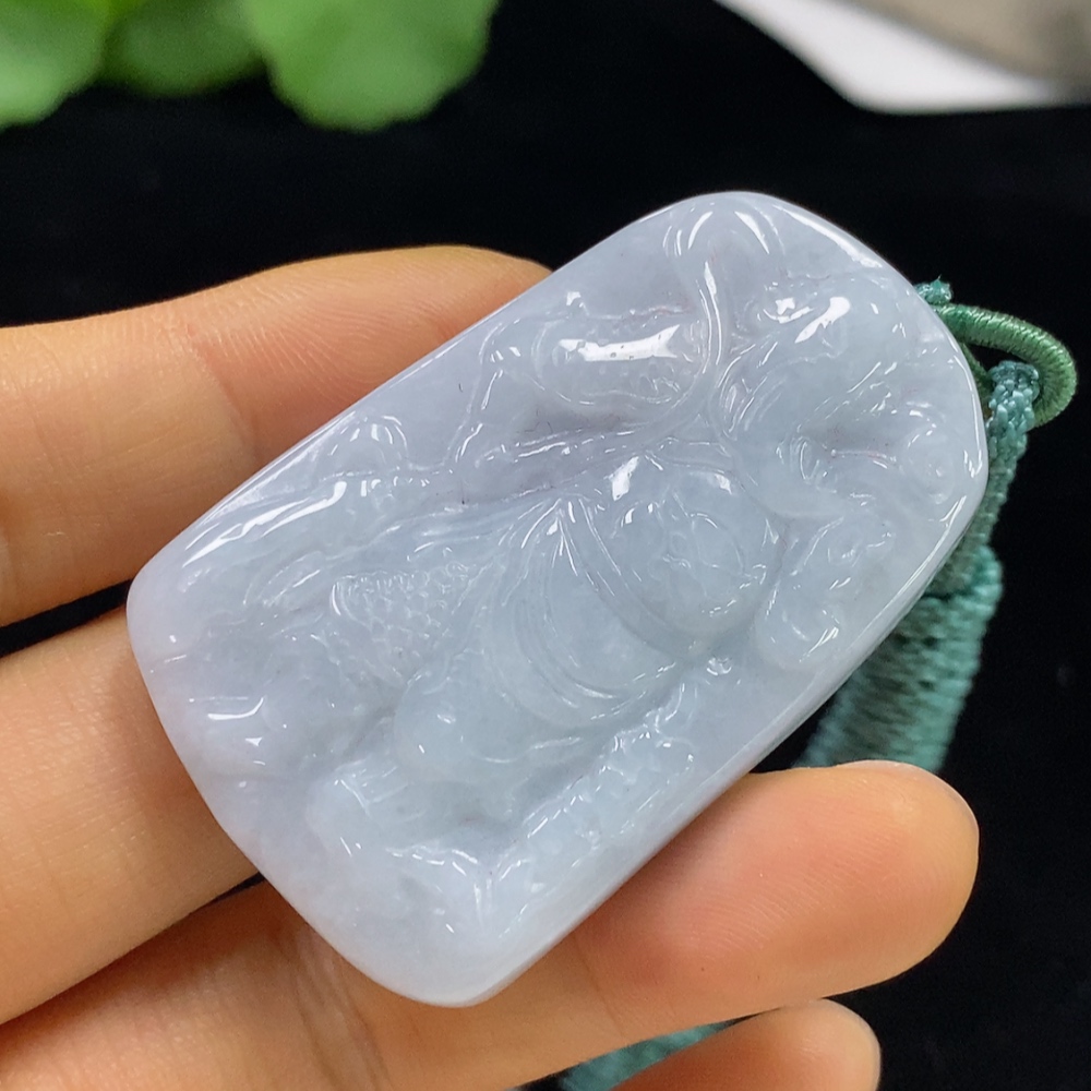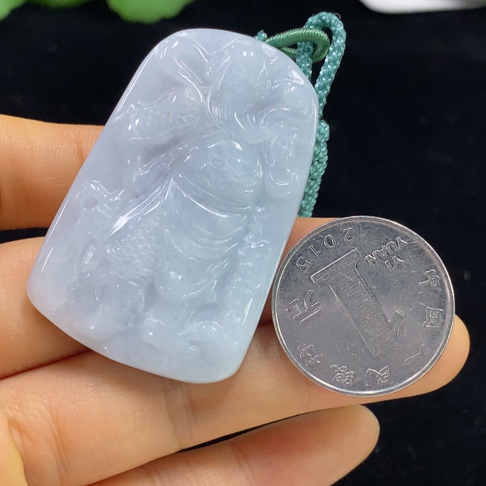 Jadeite Pendant Guan Yu with Cord Total Weight Approx. 37.16g