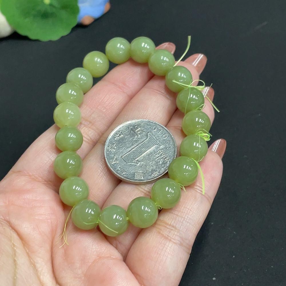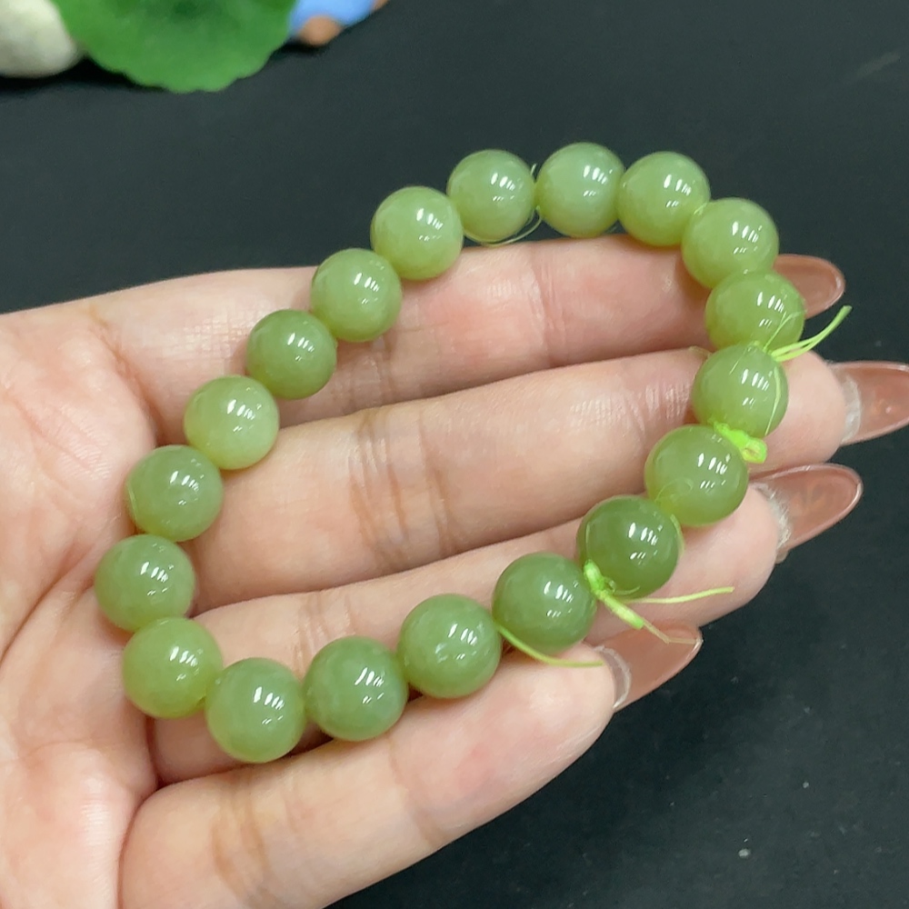 Hetian Jade Bracelet, approx. 9.8 mm beads, total weight approx. 28.5g
