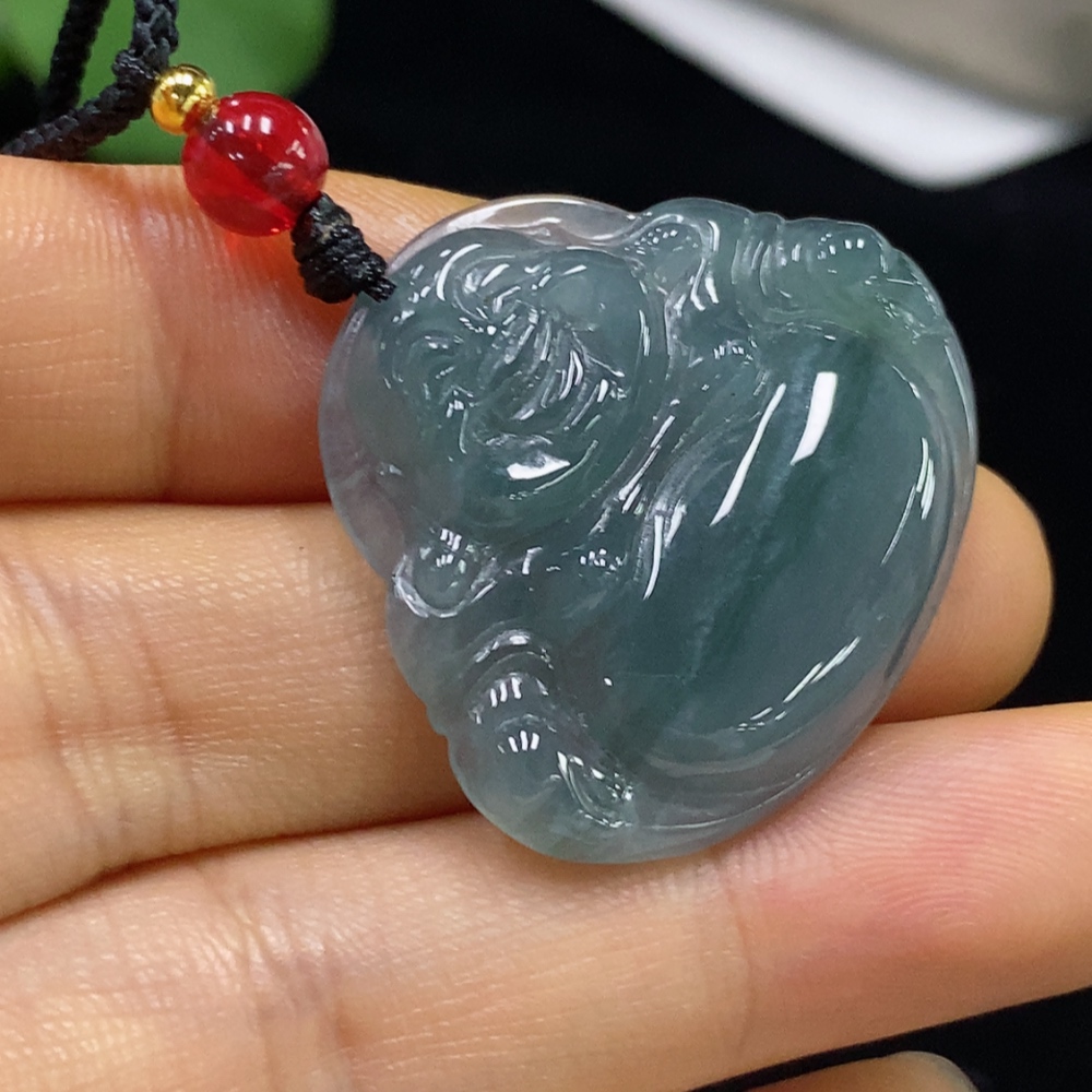 Jadeite Pendant Buddha with Cord, Total Weight Approx. 8.5g