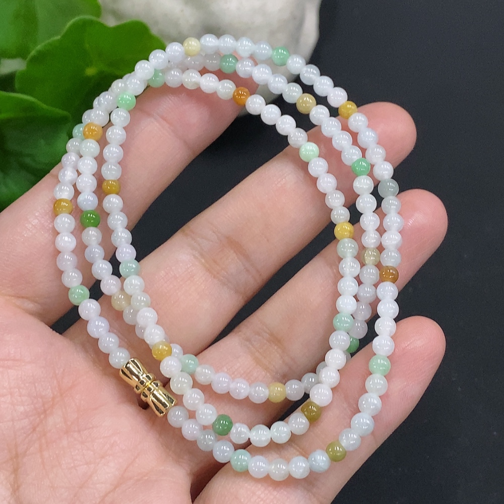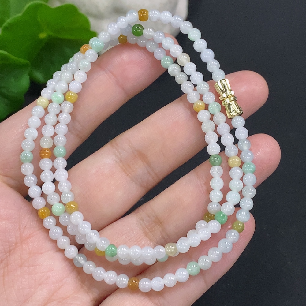 Jadeite Bead Necklace Approx. 3.5mm Non-Gold Product Total Weight Approx. 13.6g