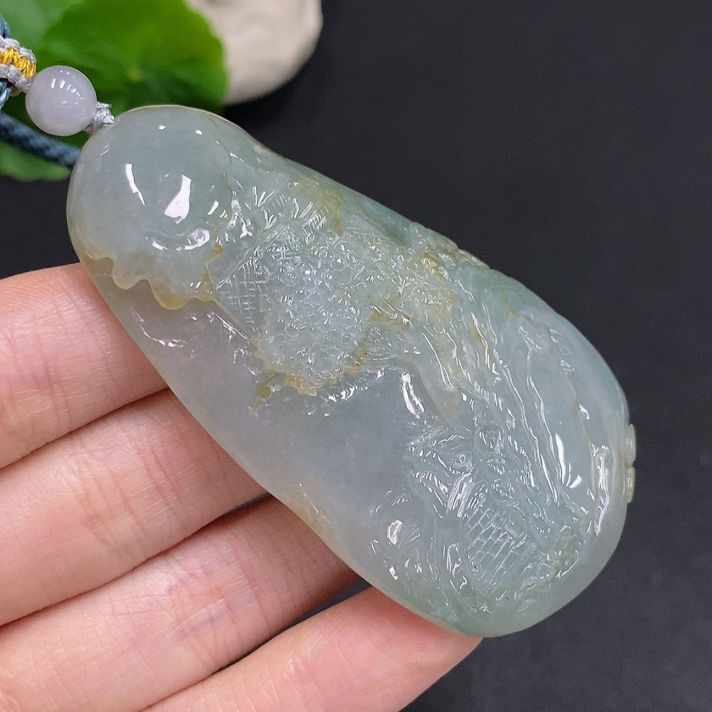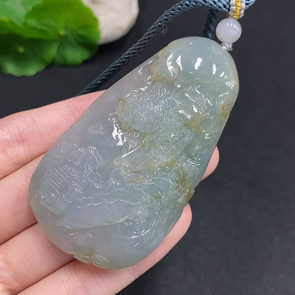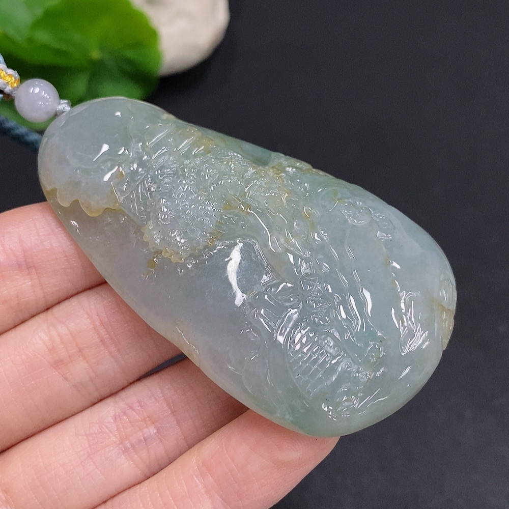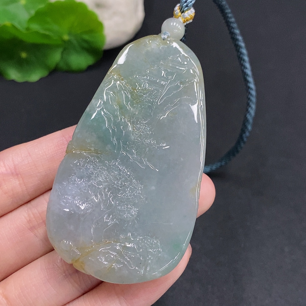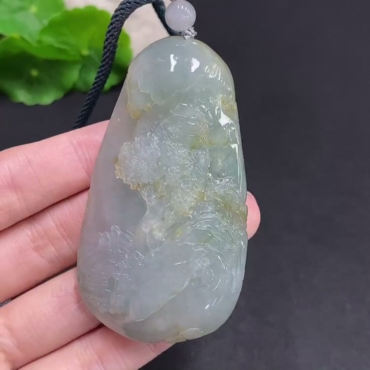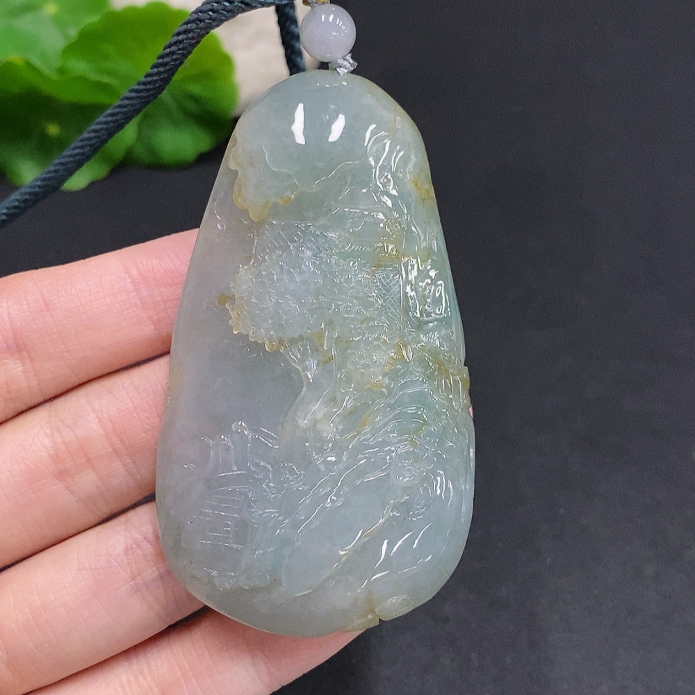 Jadeite Landscape Pendant with Cord, Total Weight Approximately 70.9 Grams