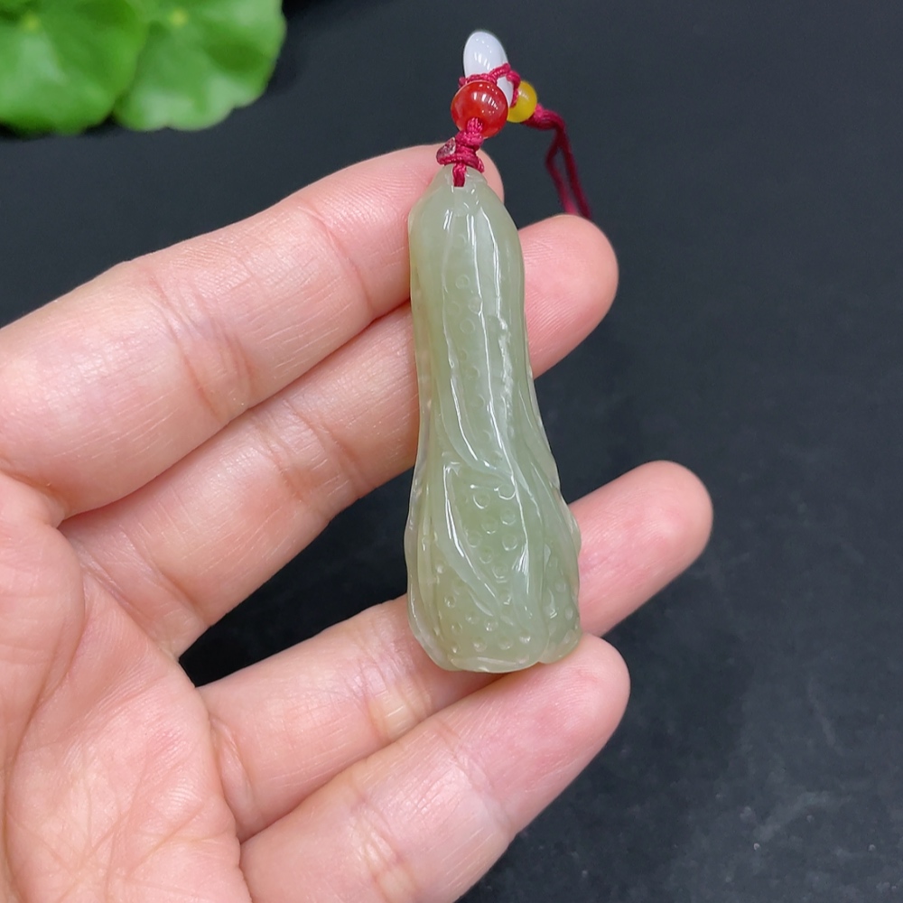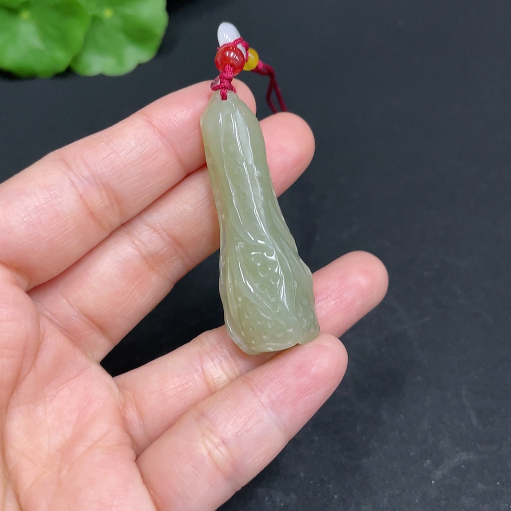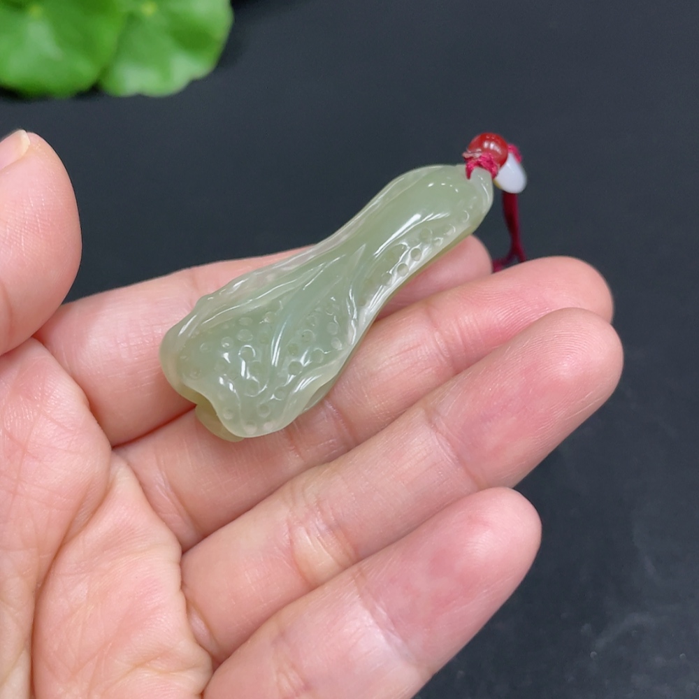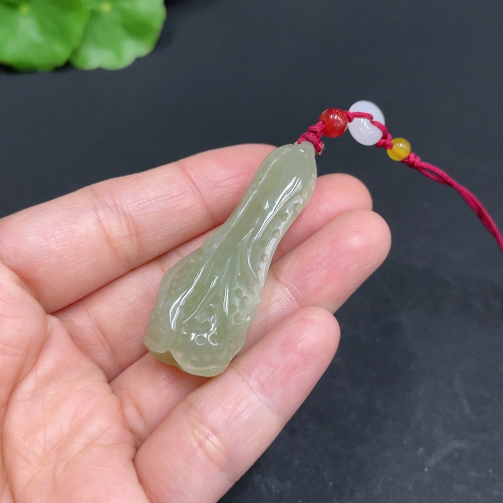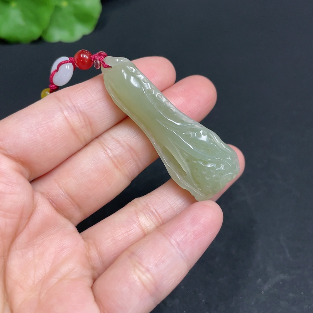 Hetian Jade Pendant, Cabbage, Total Weight (with rope) Approx. 11.9g, Accessories Not Hetian Jade