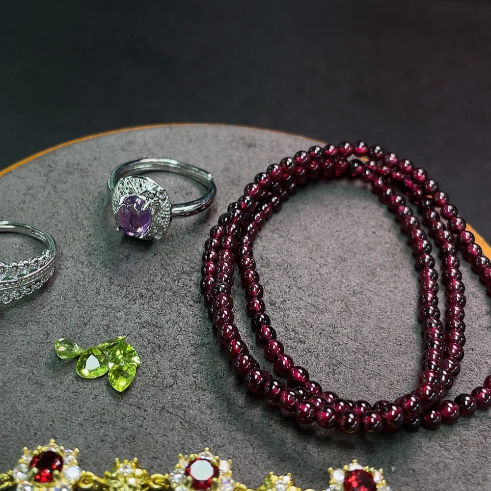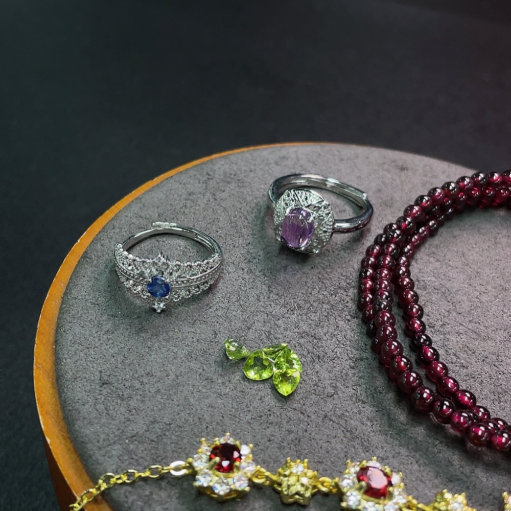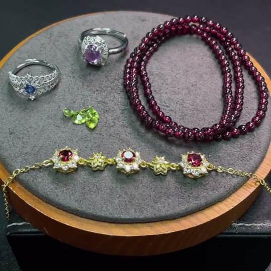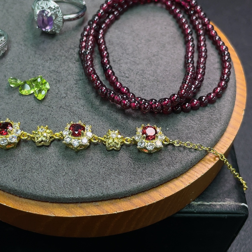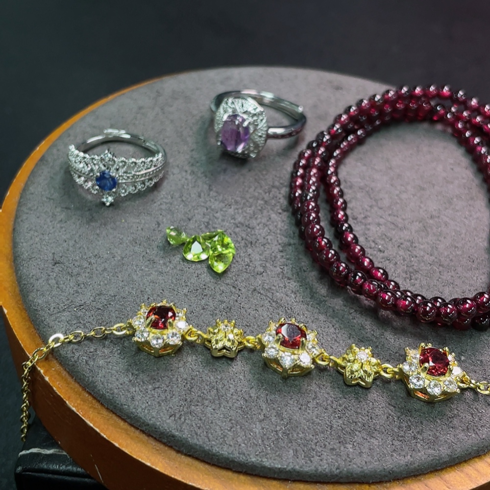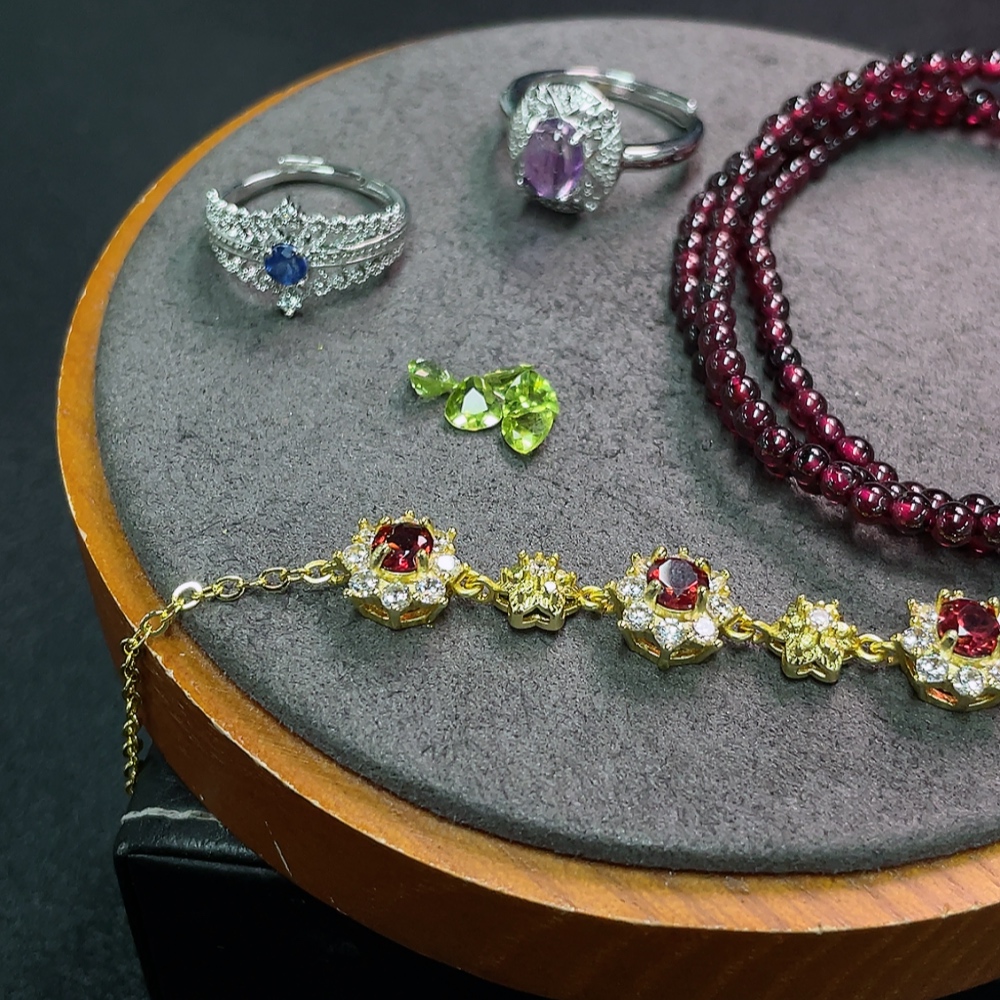 Garnet + Sapphire + Crystal + Peridot Jewelry Non-Gold Total Weight Approx. 25.53g Sell as a Lot