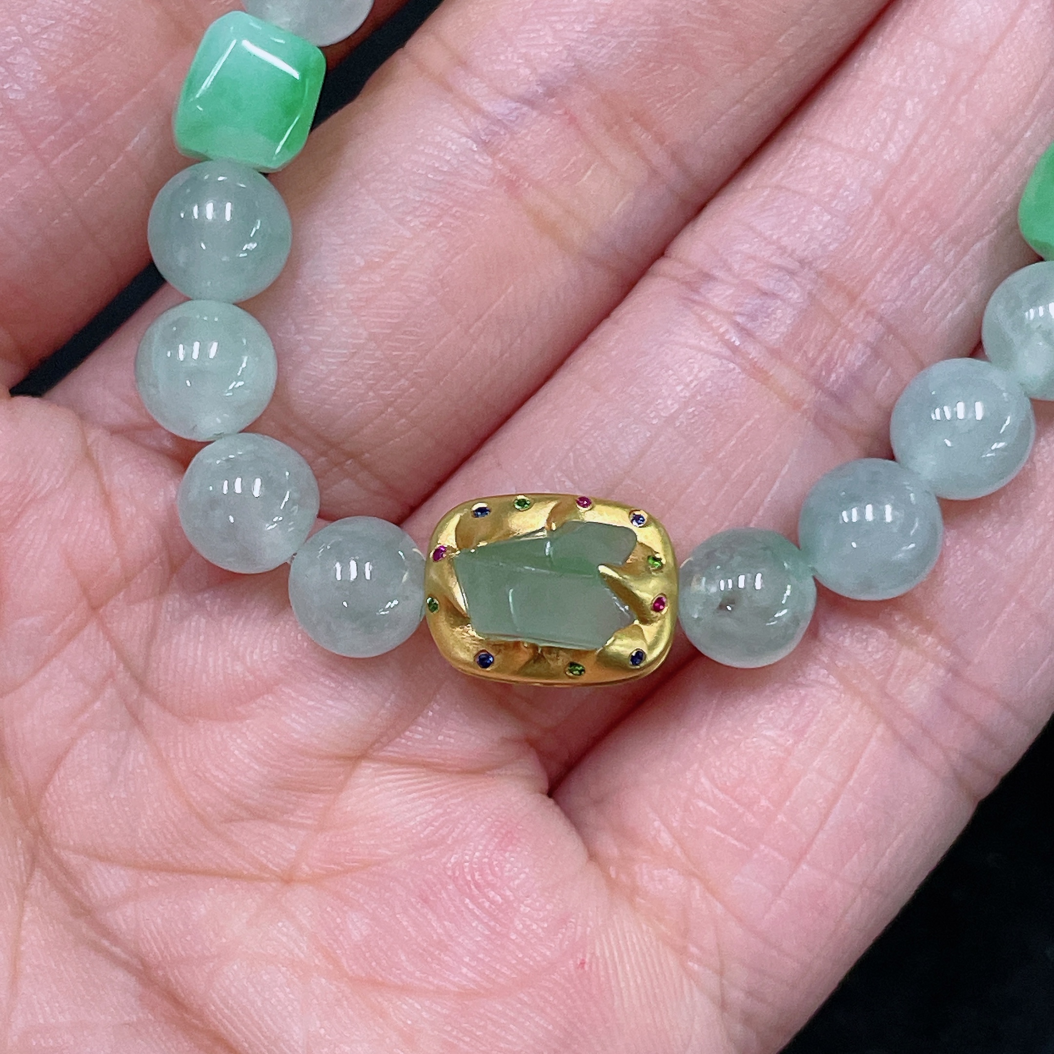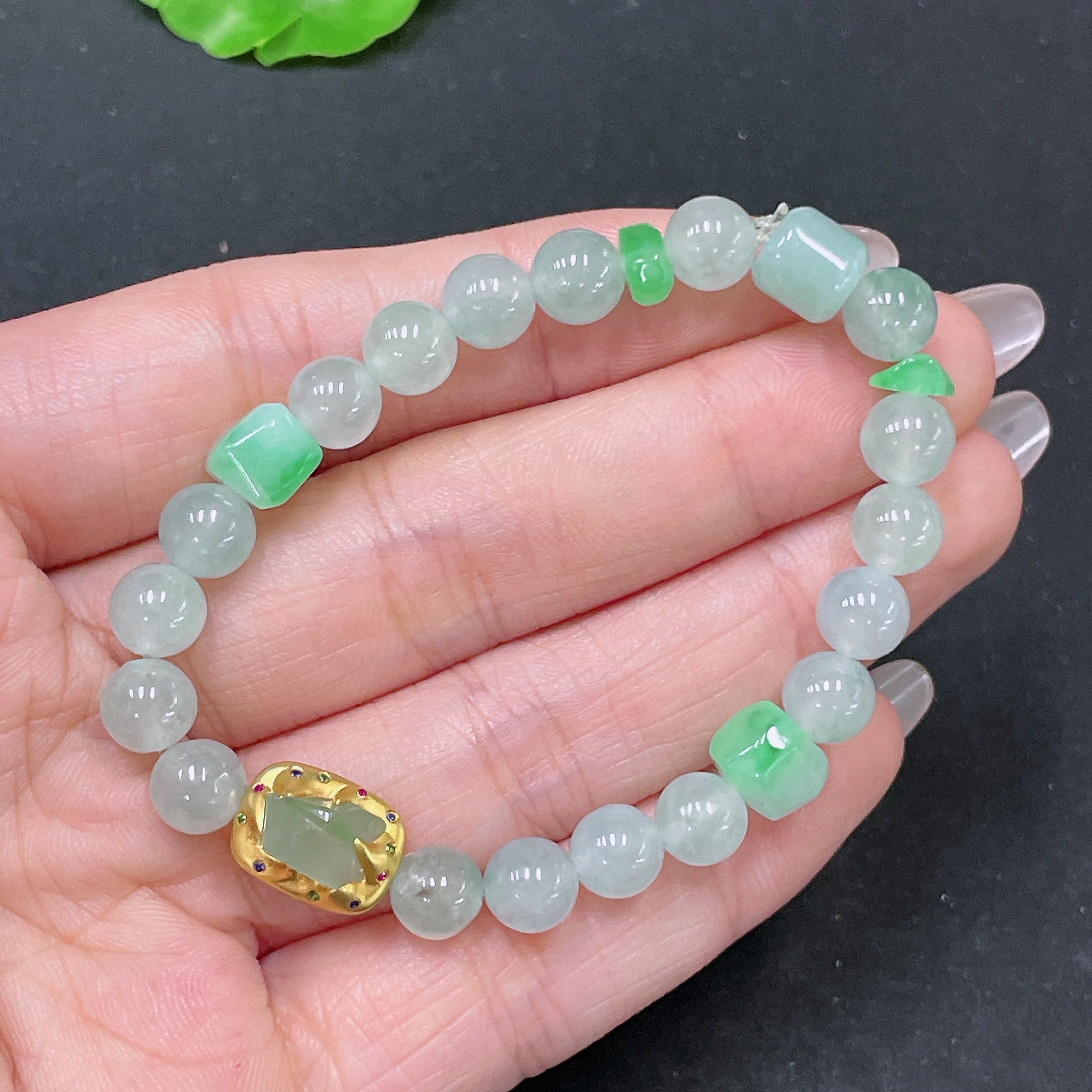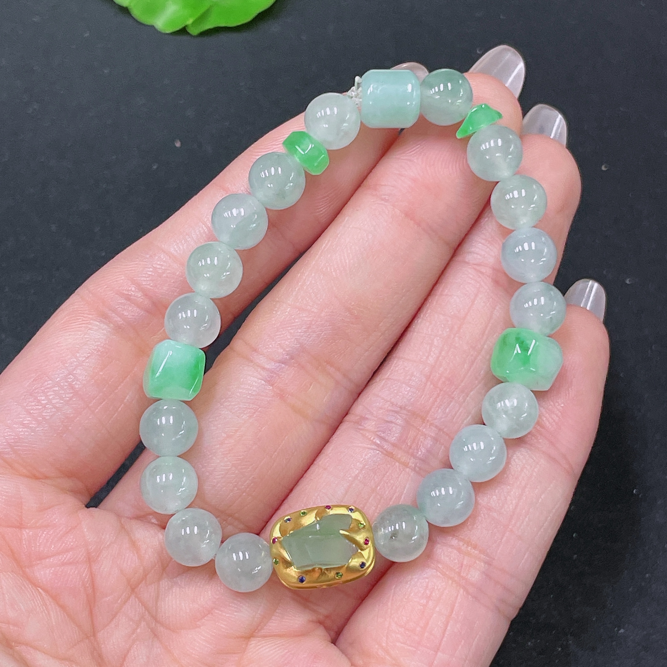 Jadeite Bracelet 18k Gold Inlaid Total Weight Approx. 14.96g Size Approx. 7.2mm