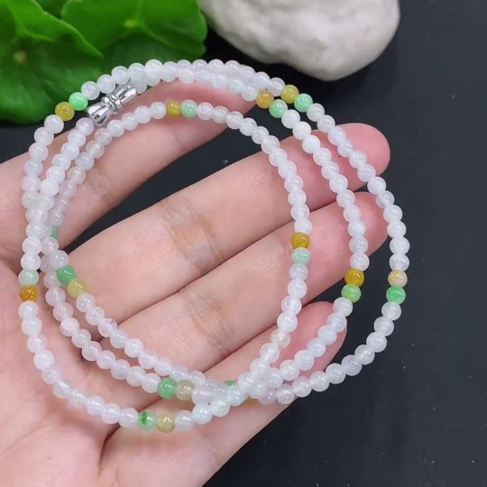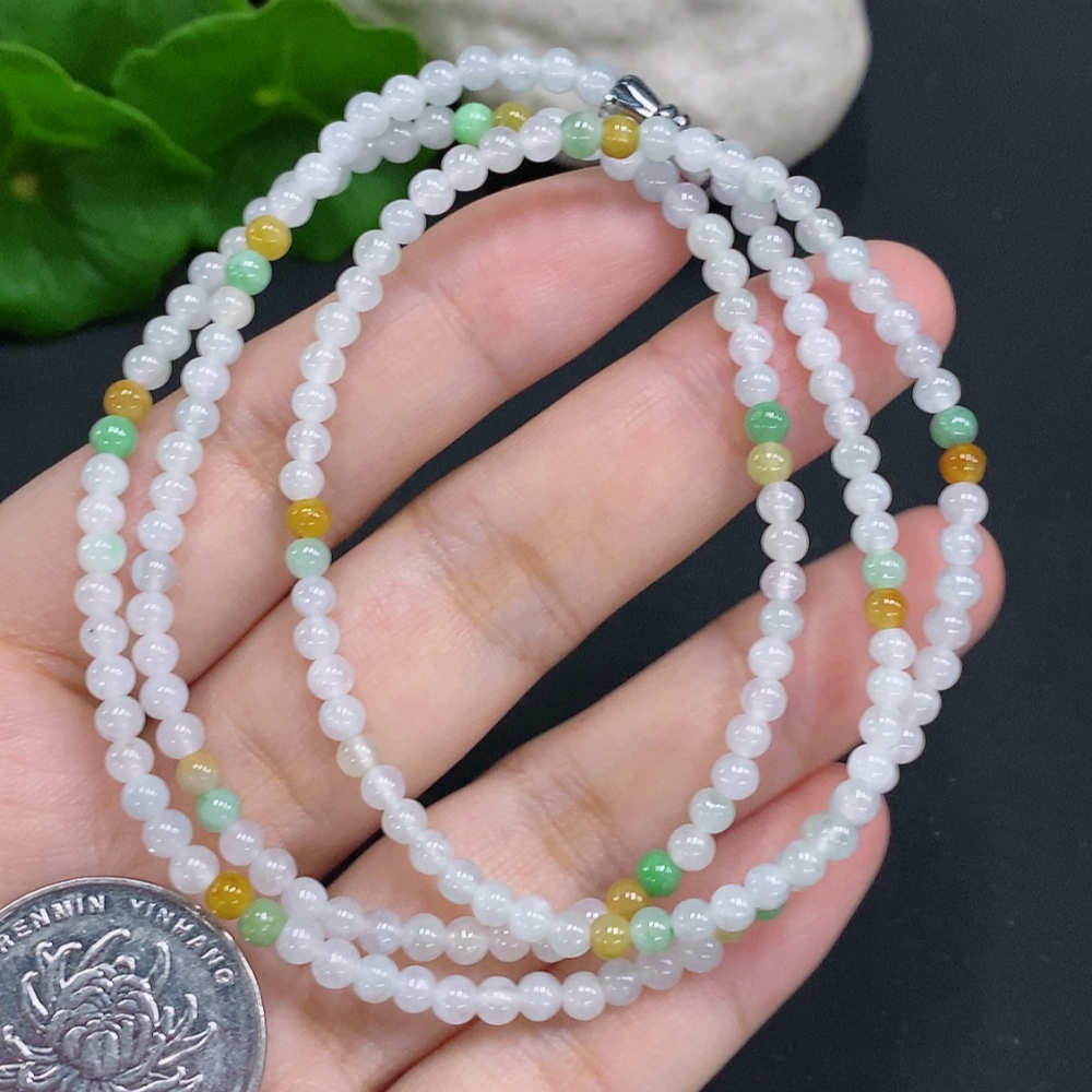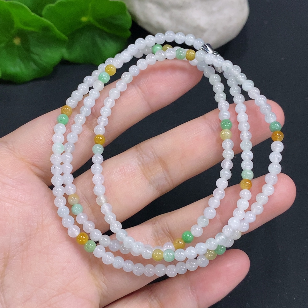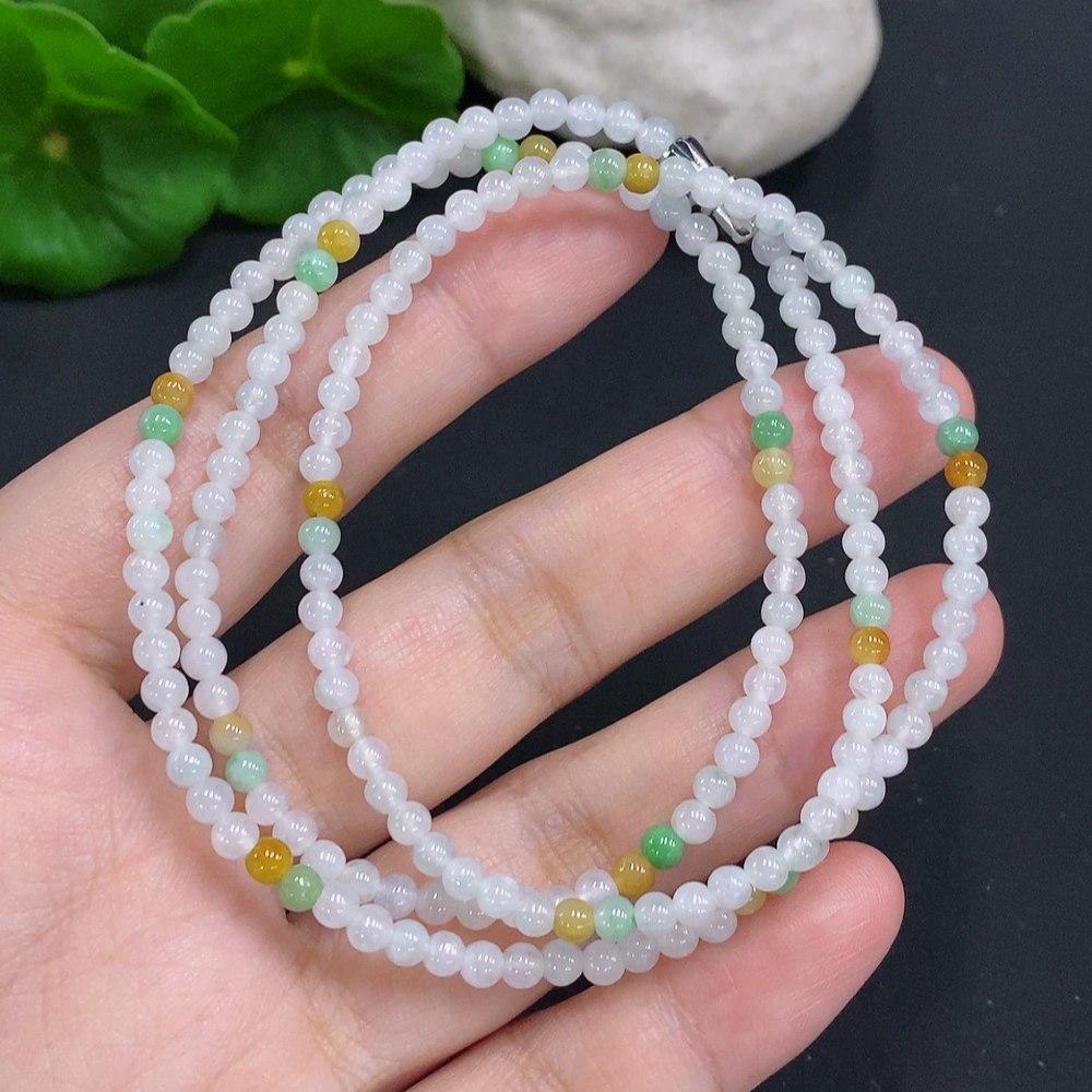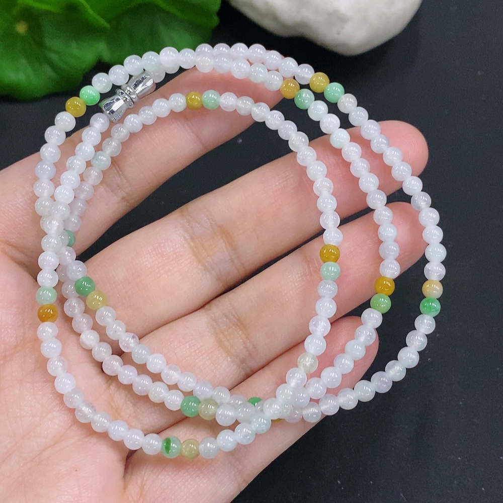 Jadeite Beaded Necklace Approx. 3.4mm Non-Gold Total Weight Approx. 13.8g