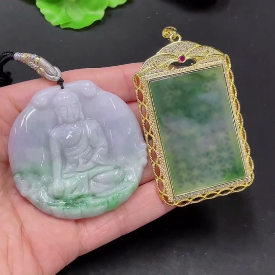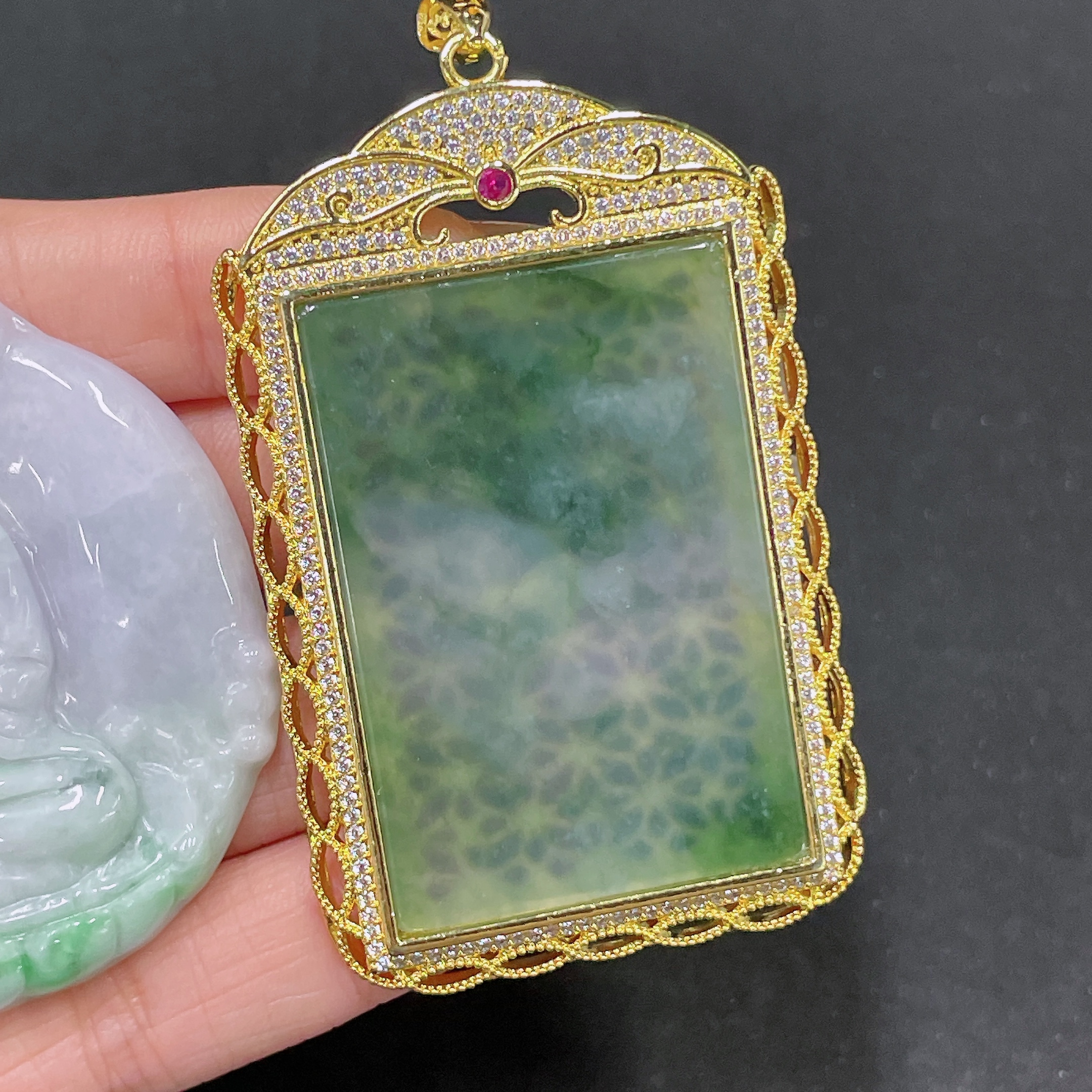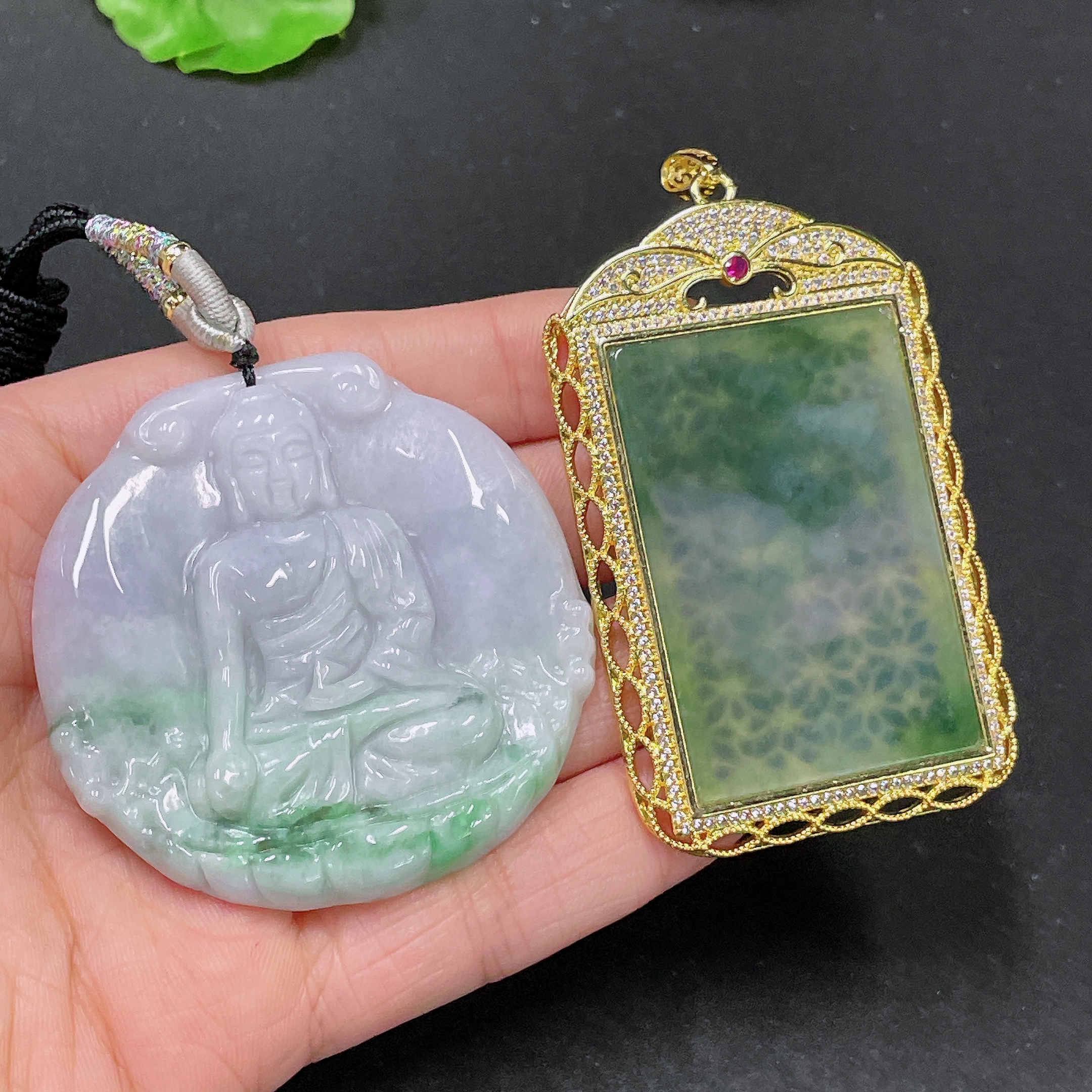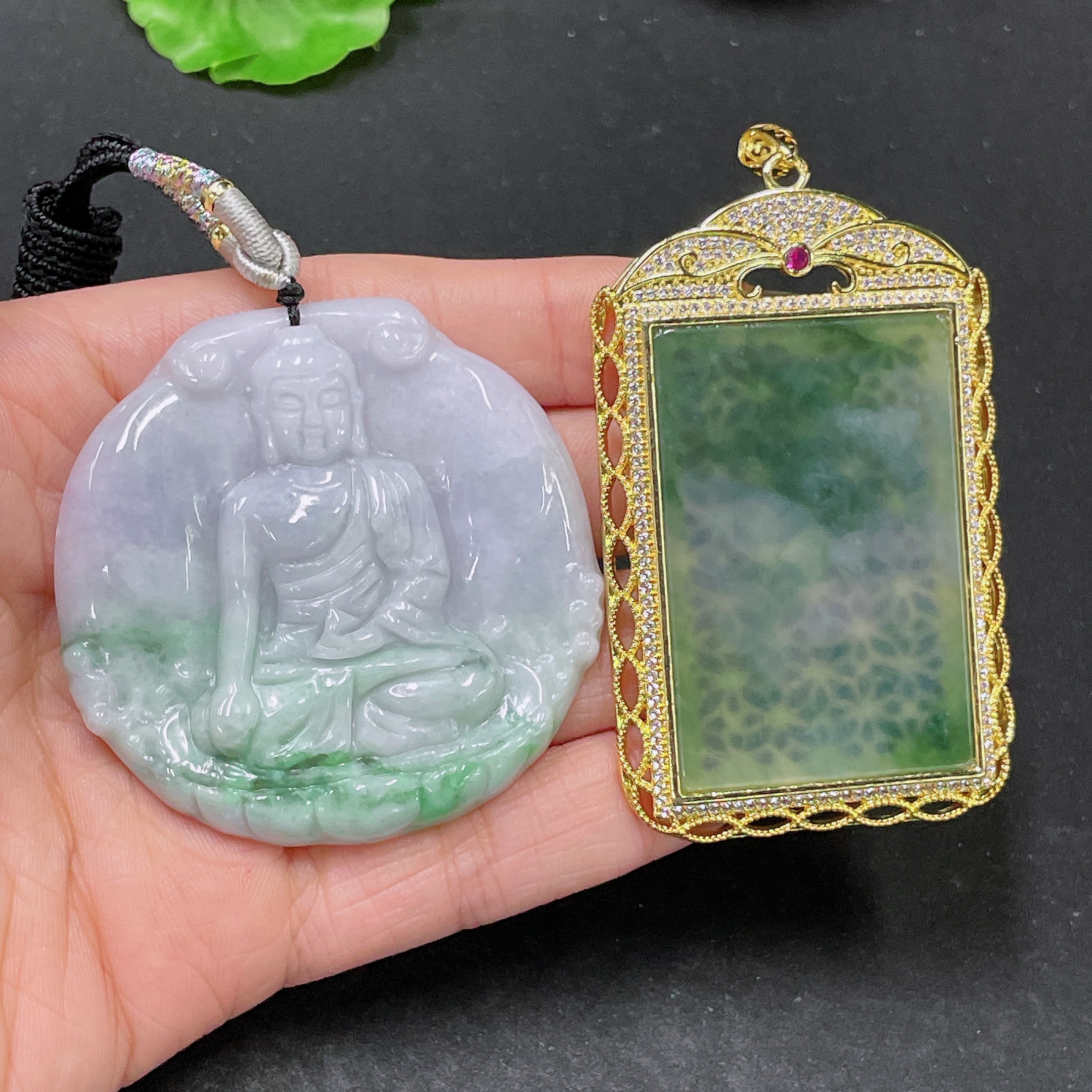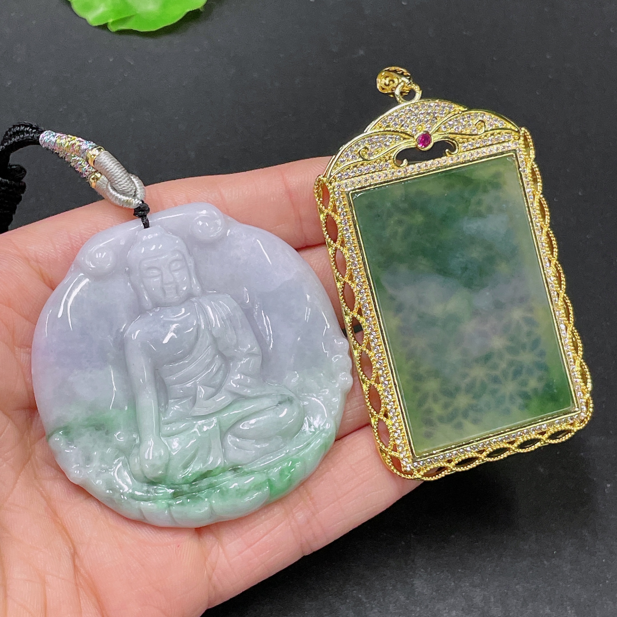 Jadeite Pendant Guanyin + Plain Pendant Non-Gold Sell as a Lot