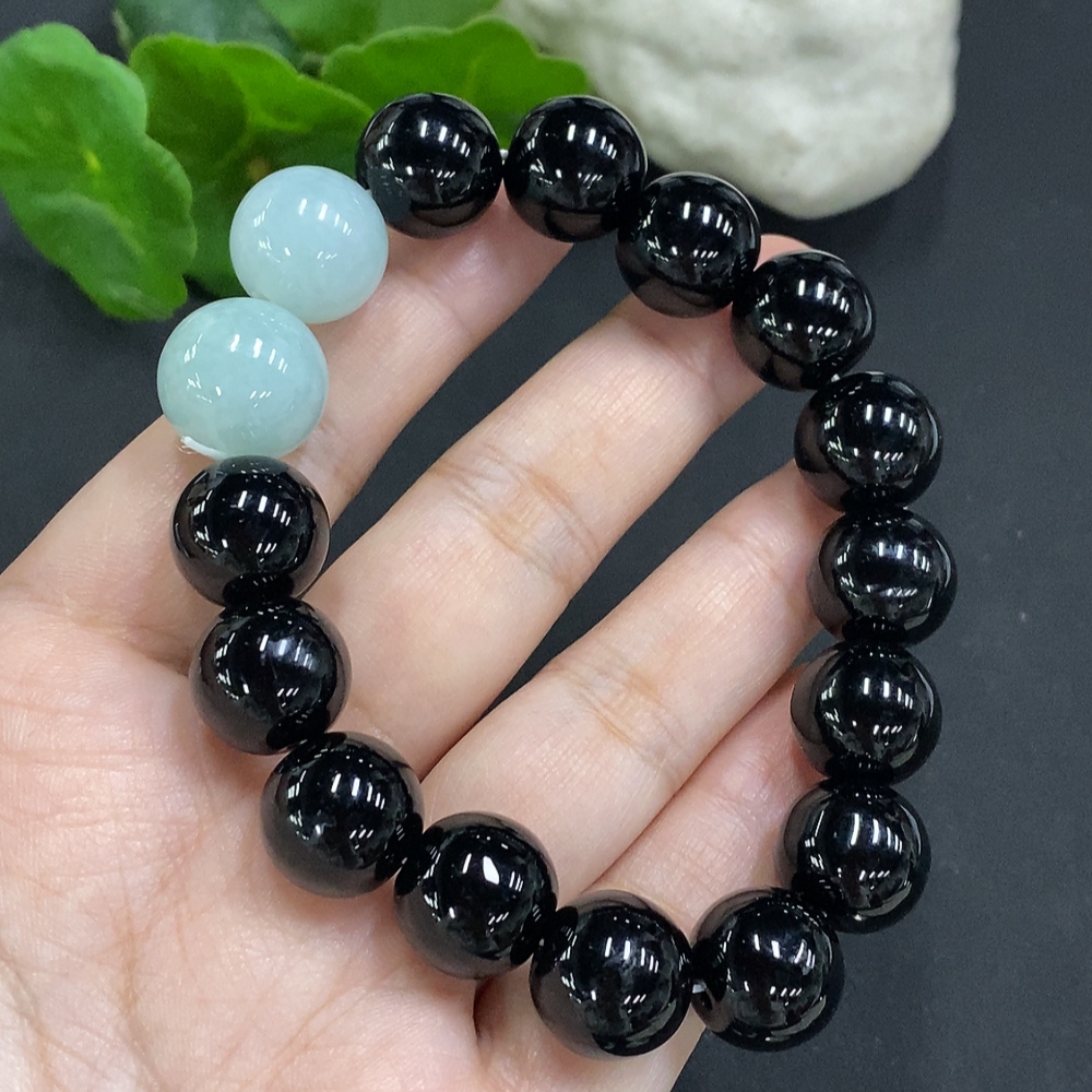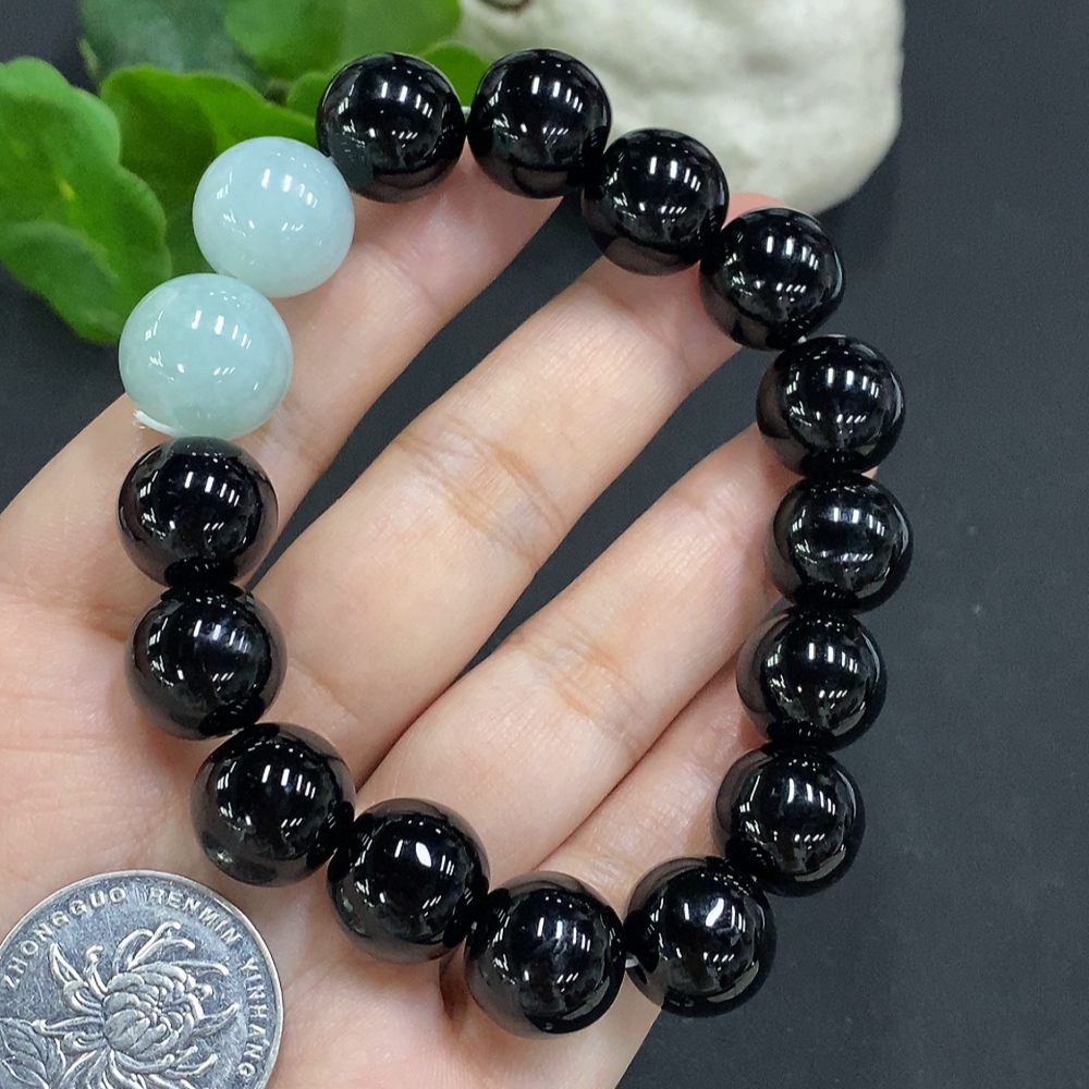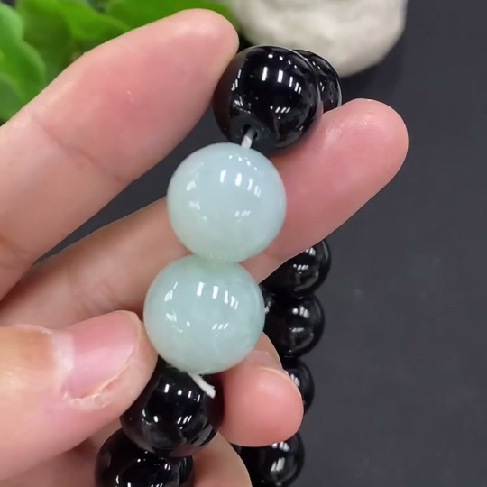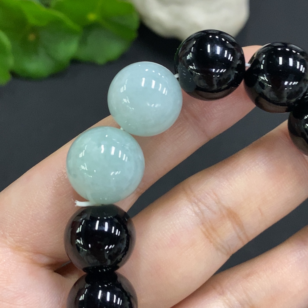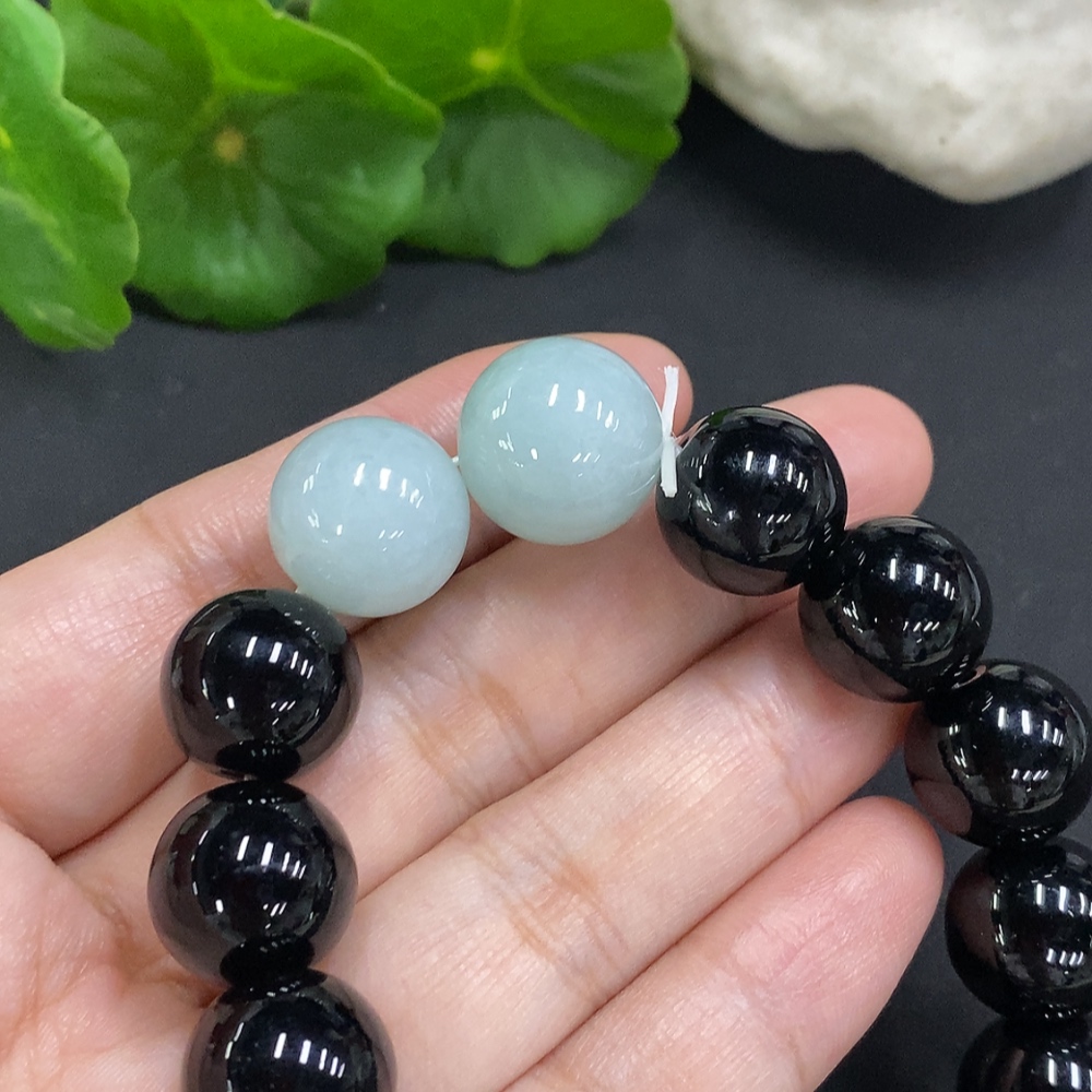 Jadeite bead necklace approx. 14.2/14.9mm total weight approx. 58.4g (black matching beads non-A)