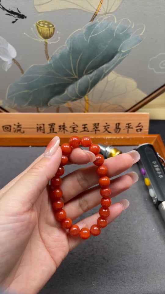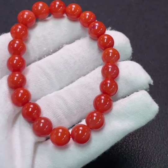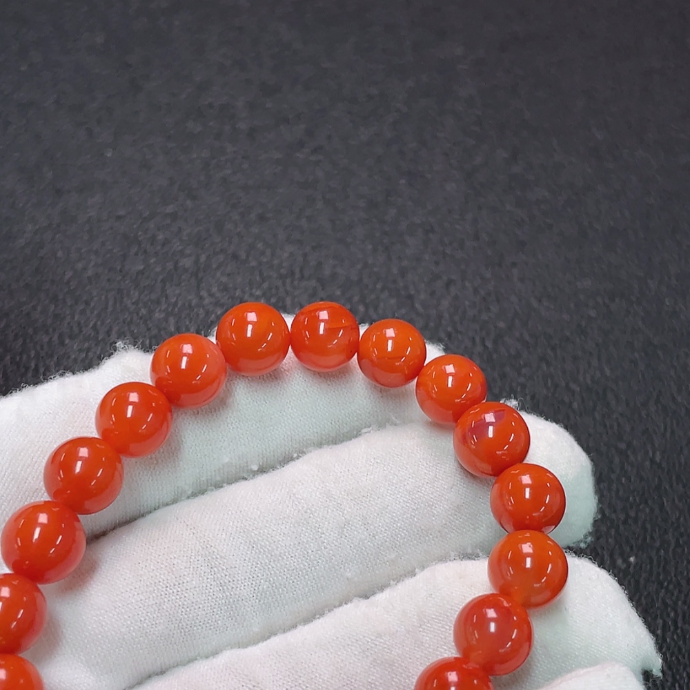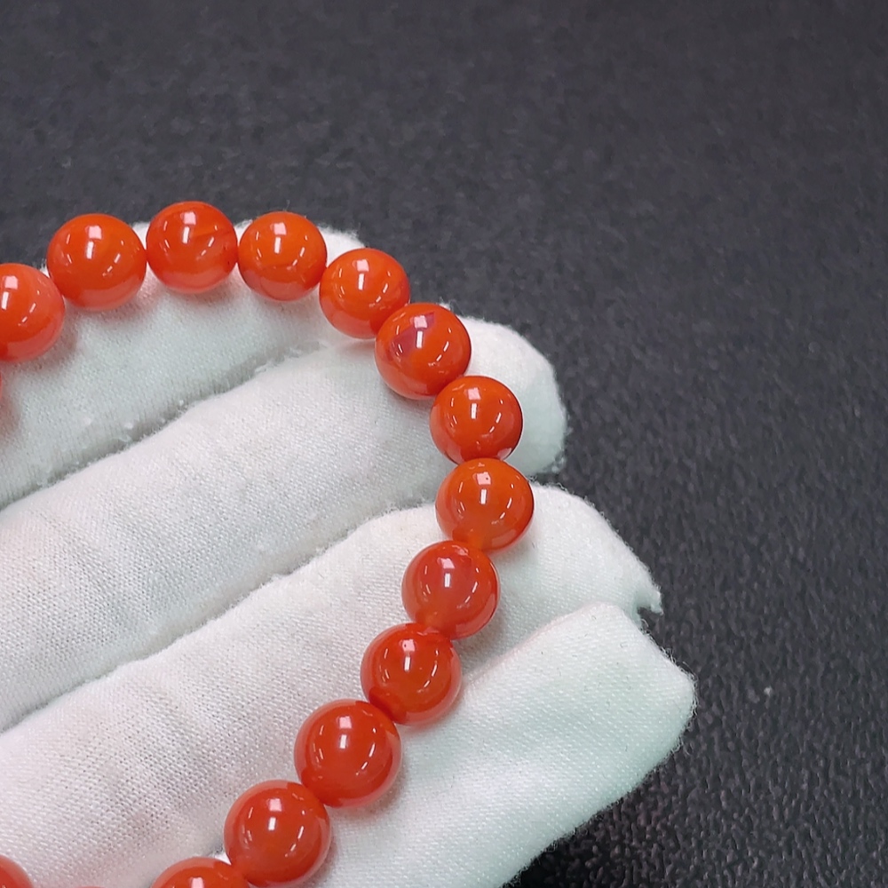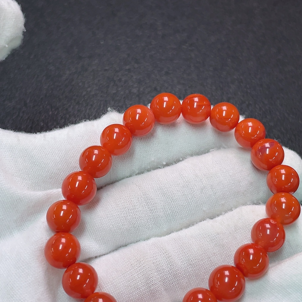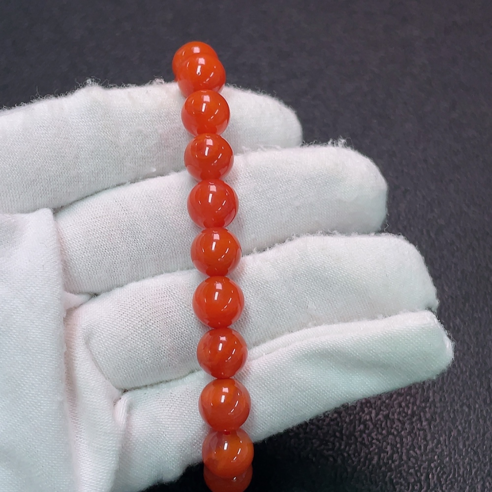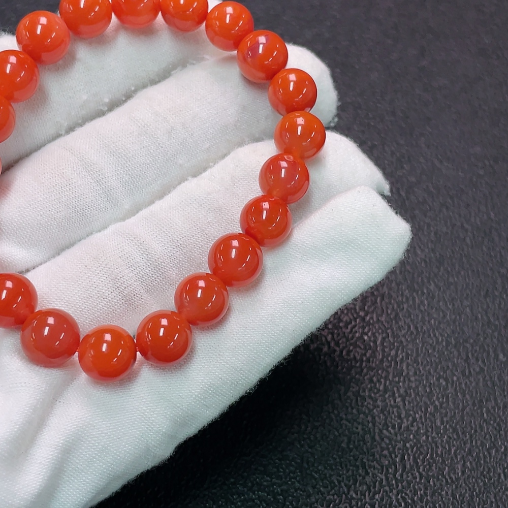 South Red Agate Bracelet with Visible Organic Matter, Total Weight Approximately 18.42g, Size About 8.6mm