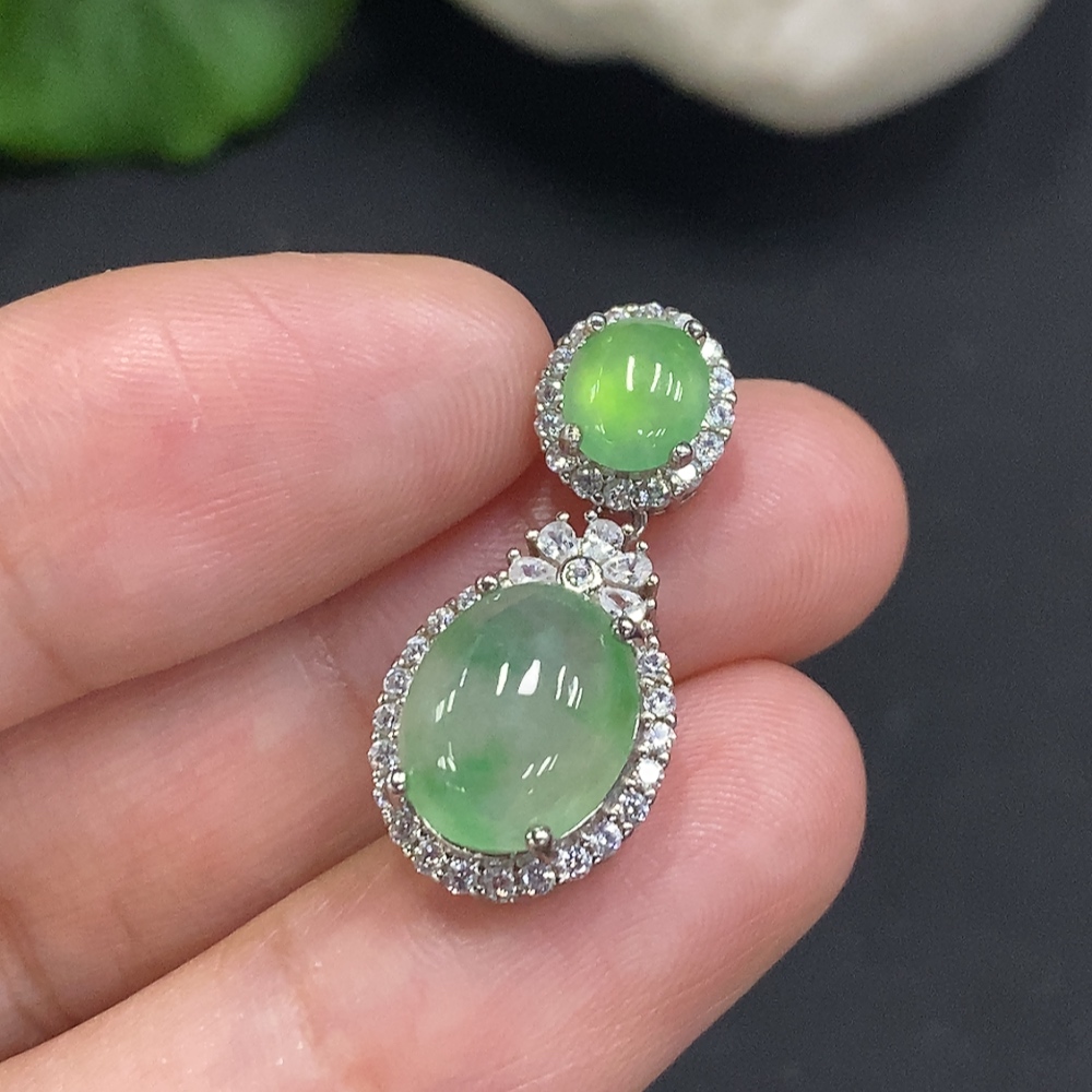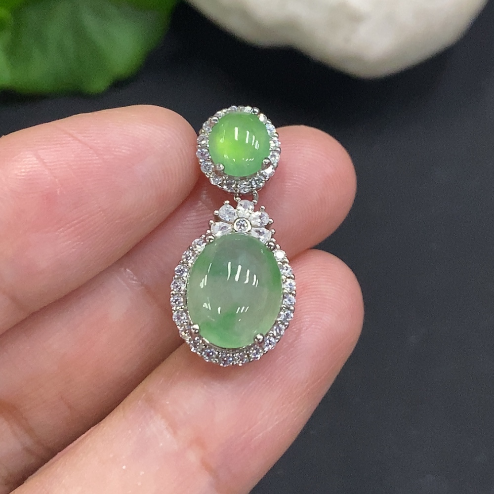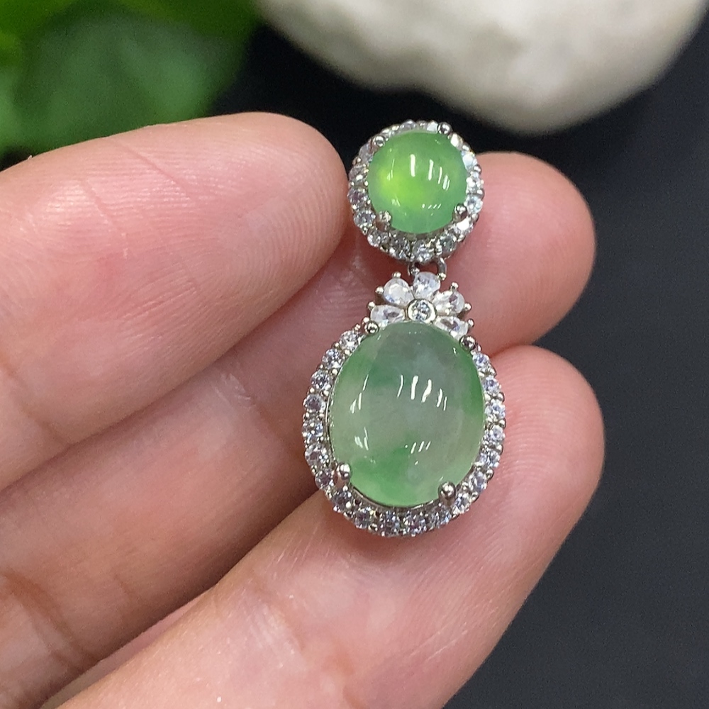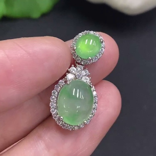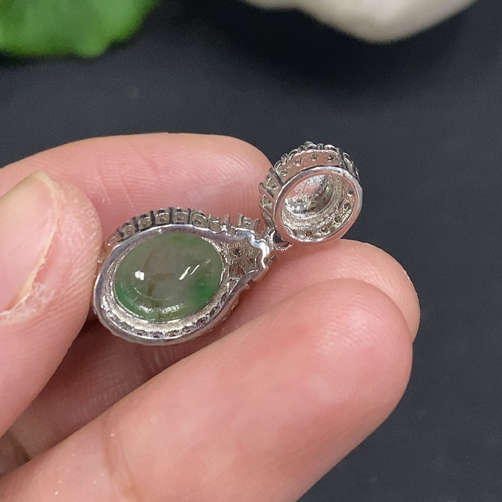 Jadeite Cabochon Inlay Pendant Non-Gold Inlay Total Weight Approx. 2.8g