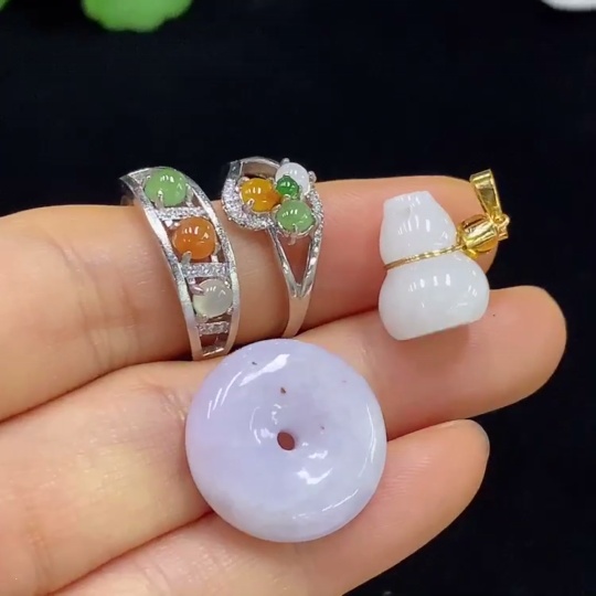 Jadeite Cabochon Ring / Gourd Pendant / Pi An Kou Pendant Non-Gold Adjustable