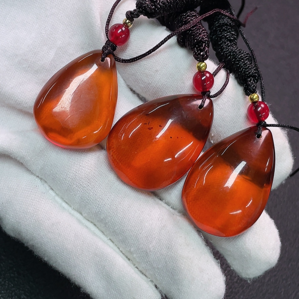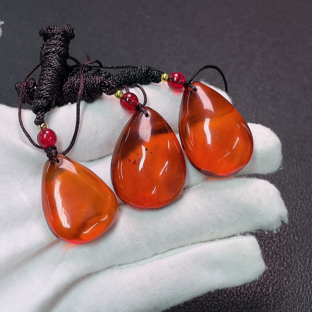 Amber Beeswax Pendant Non-Gold, Stones May Be Non-Natural, Total Weight Approx. 16.26g, with Cord, Sell as a Lot