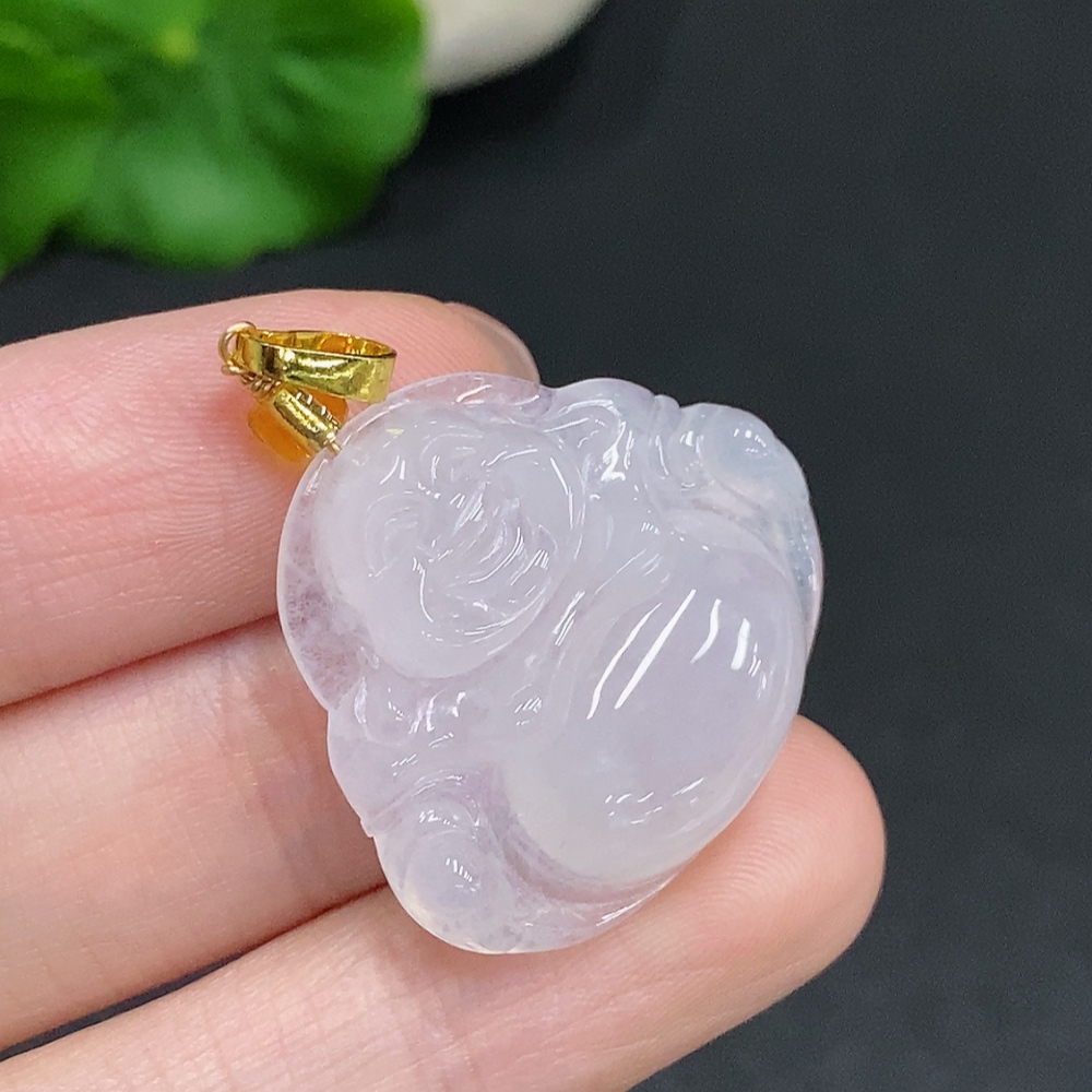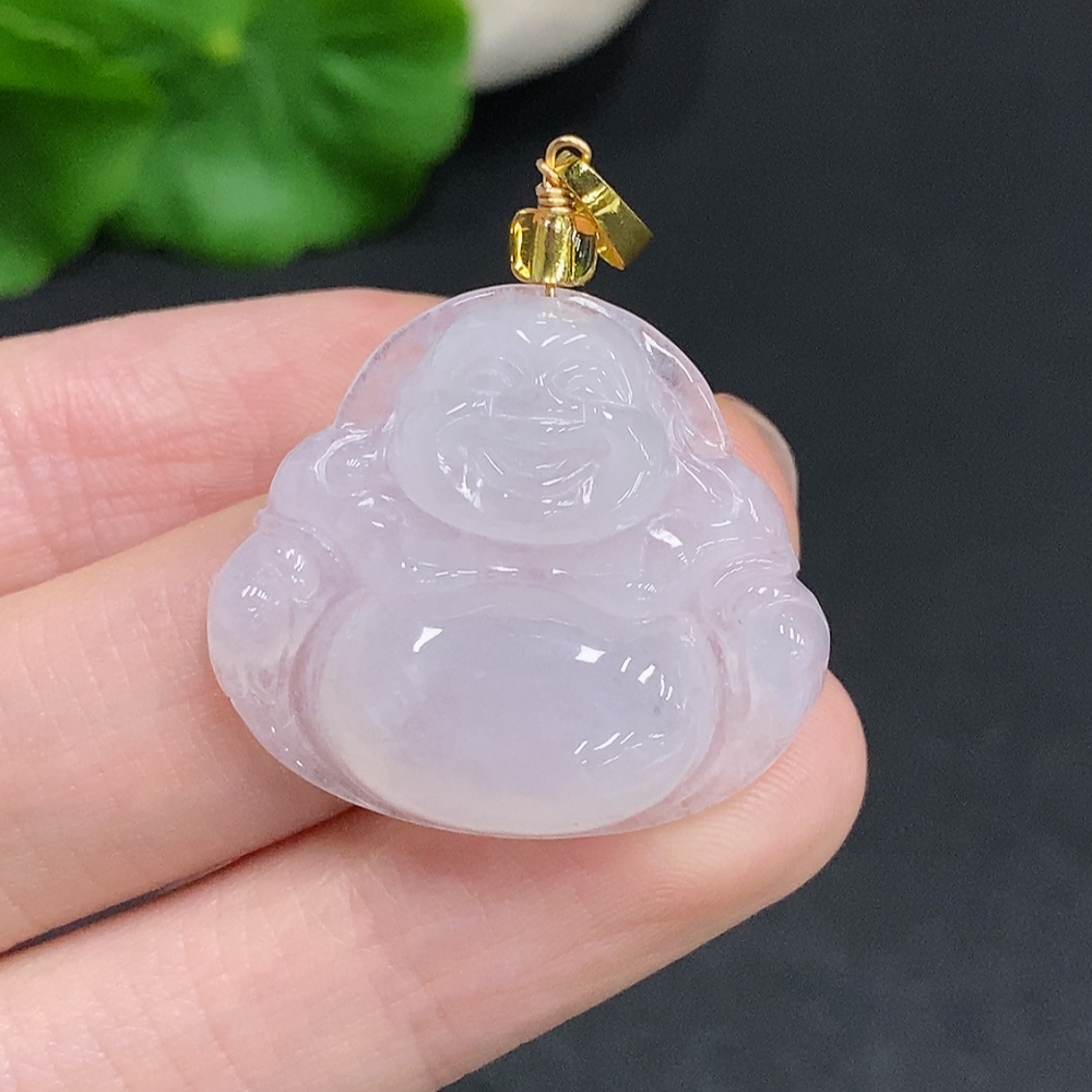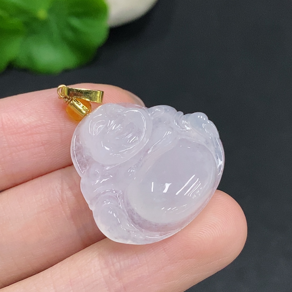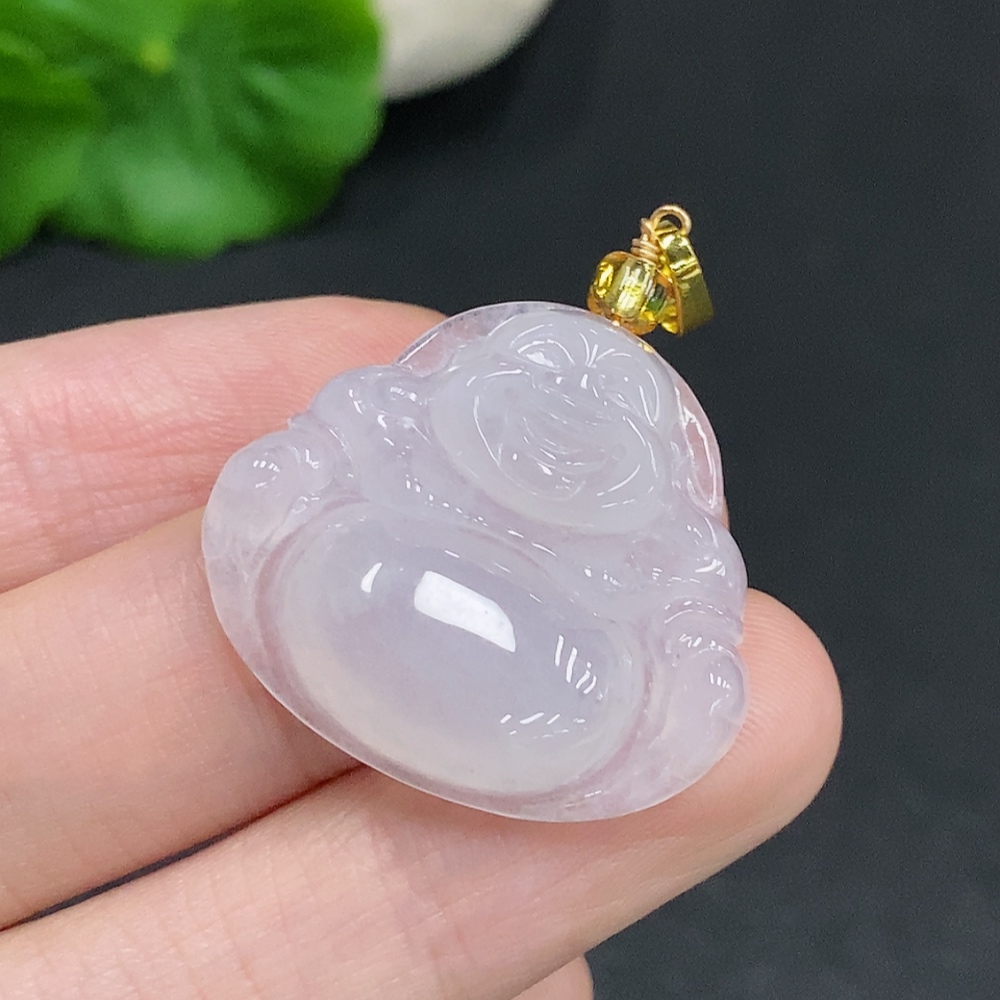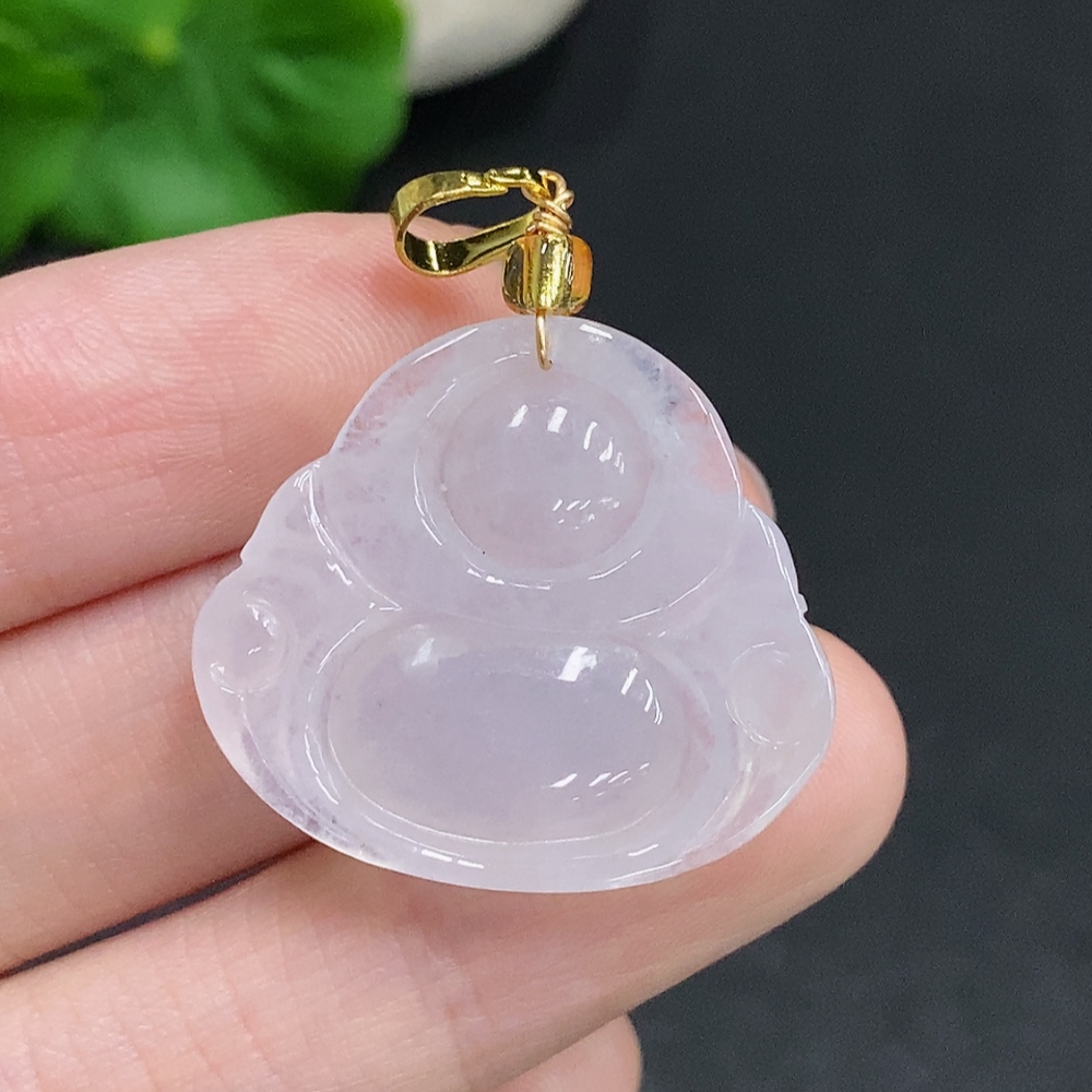 Jadeite Buddha pendant without gold inlay, total weight about 6g (with non-A beads)