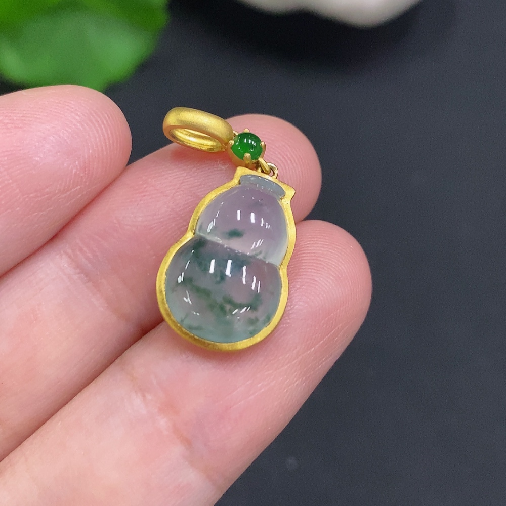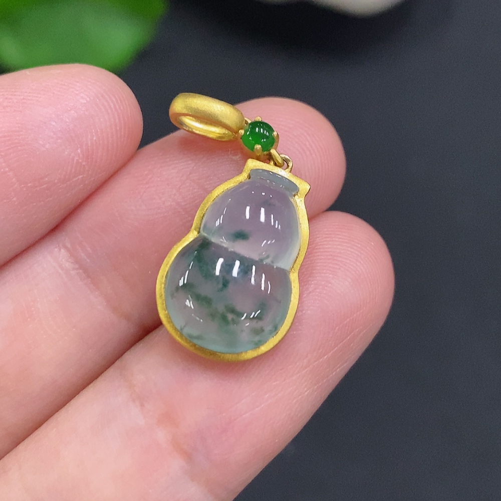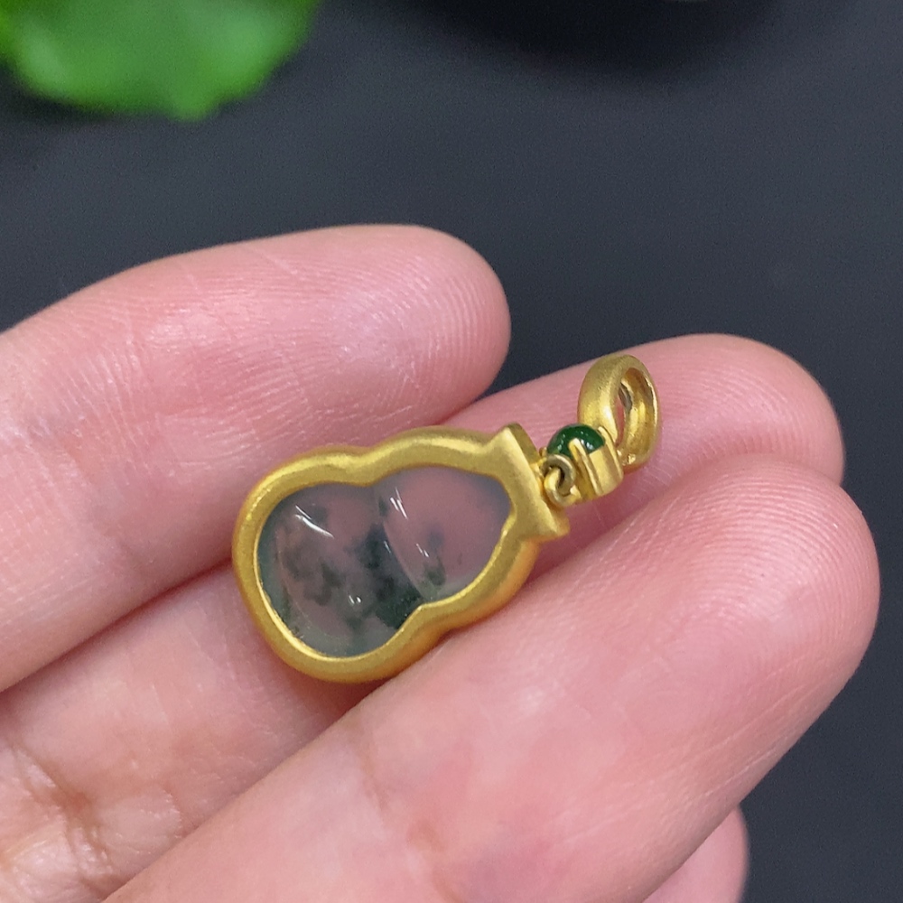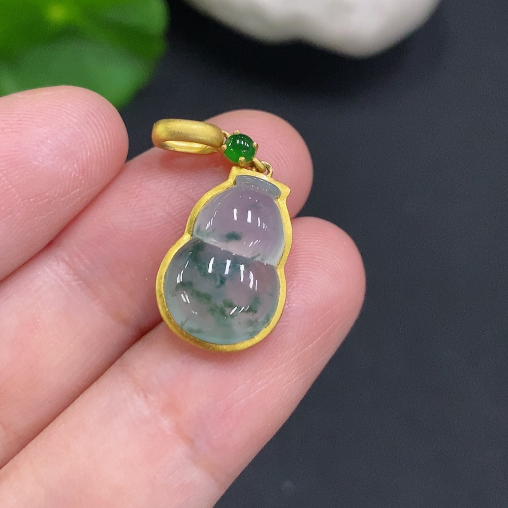 Jadeite Gourd Inlaid Pendant 18K Gold Total Weight Approx. 2.4g