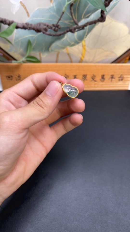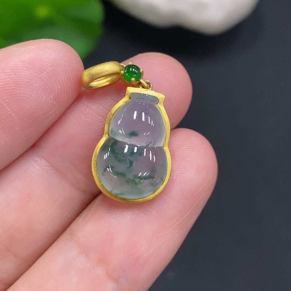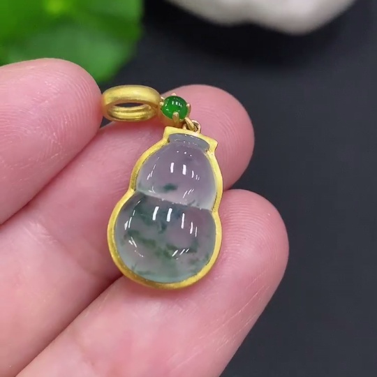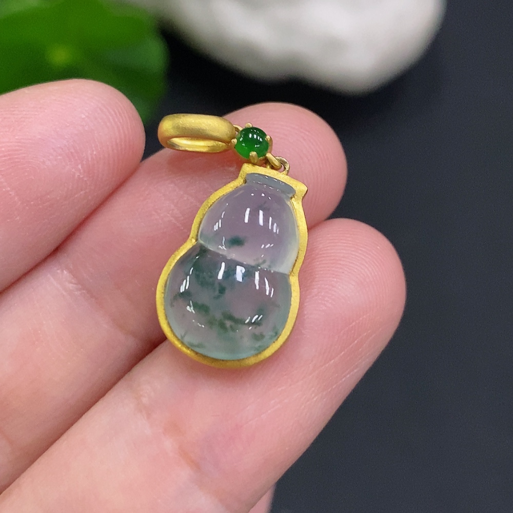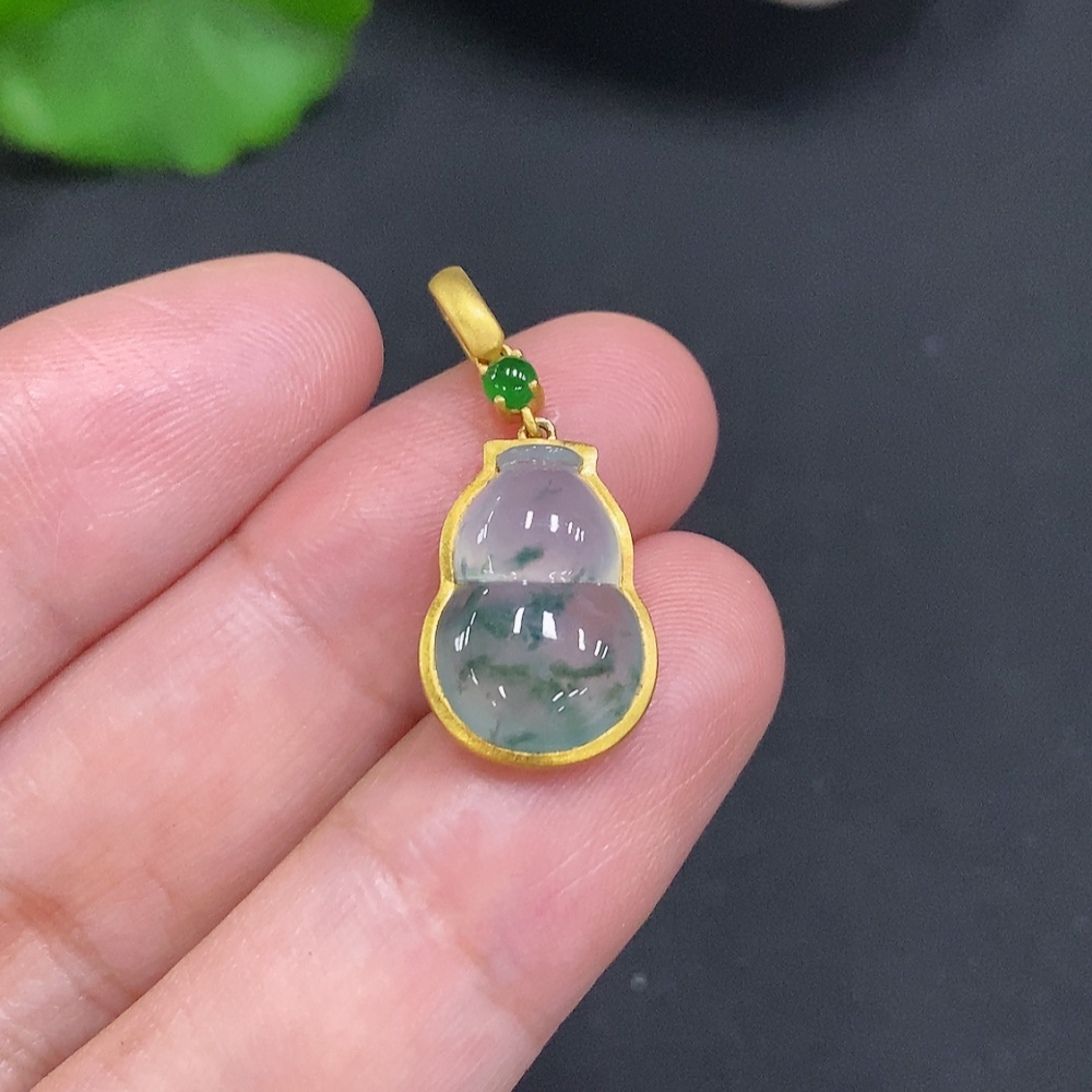 Jadeite Gourd Inlaid Pendant 18K Gold Total Weight Approx. 2.4g