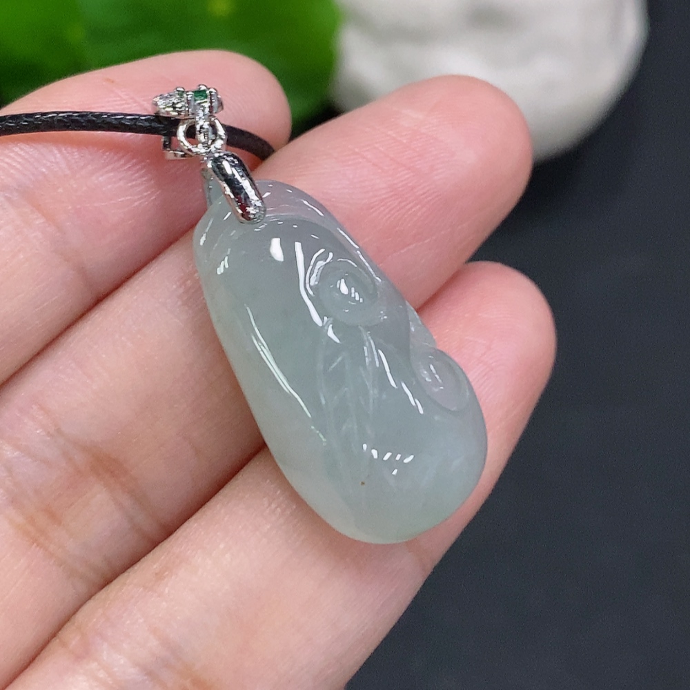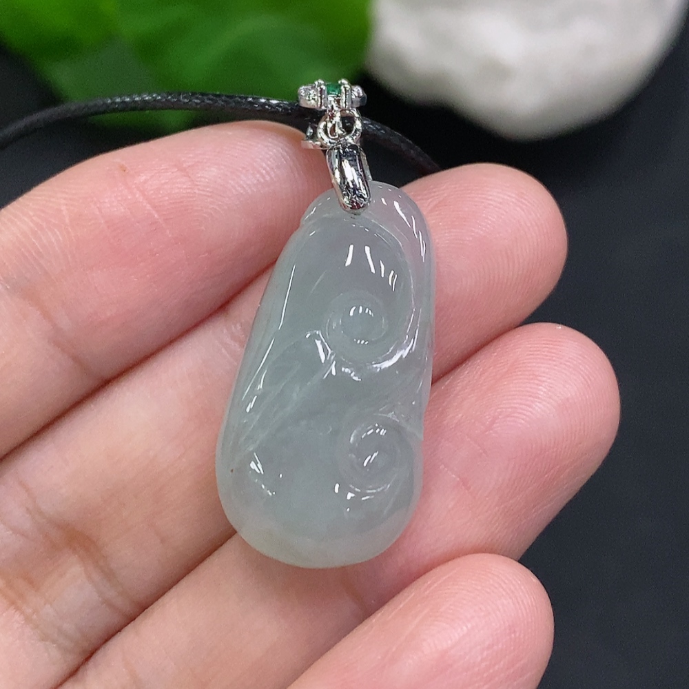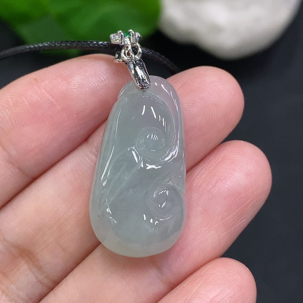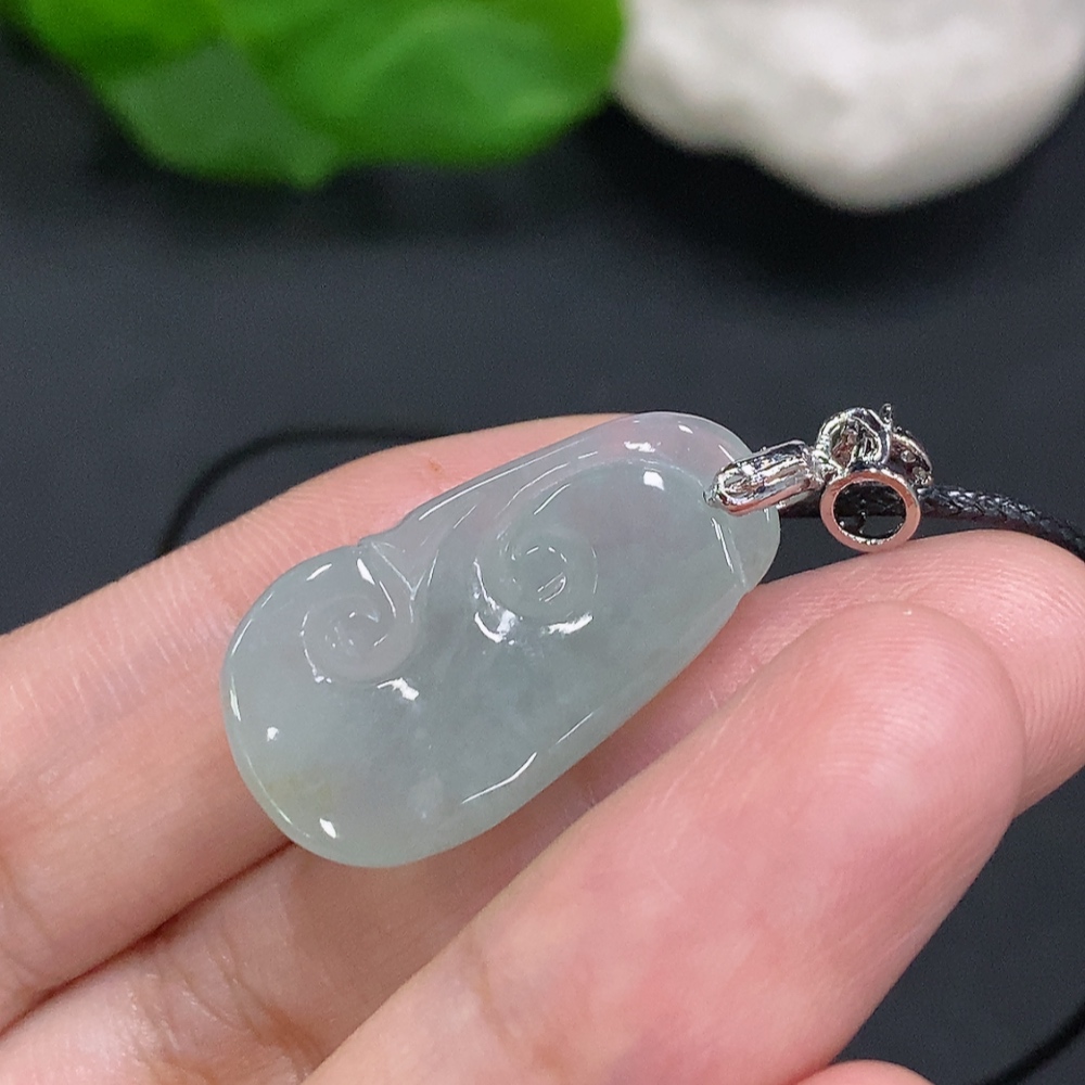 Jadeite Ruyi Pendant Non-Gold-Inlaid Total Weight Including Cord Approximately 6.9g