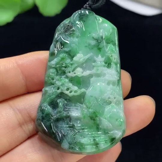 Jadeite Landscape Pendant Total Weight Approximately 29.28g Containing Other Mineral Components