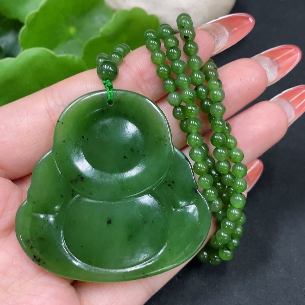 Hetian Jasper Pendant Buddha with Non-Hetian Jade Beads