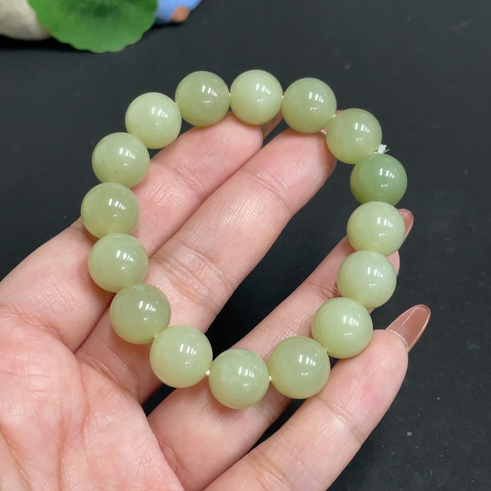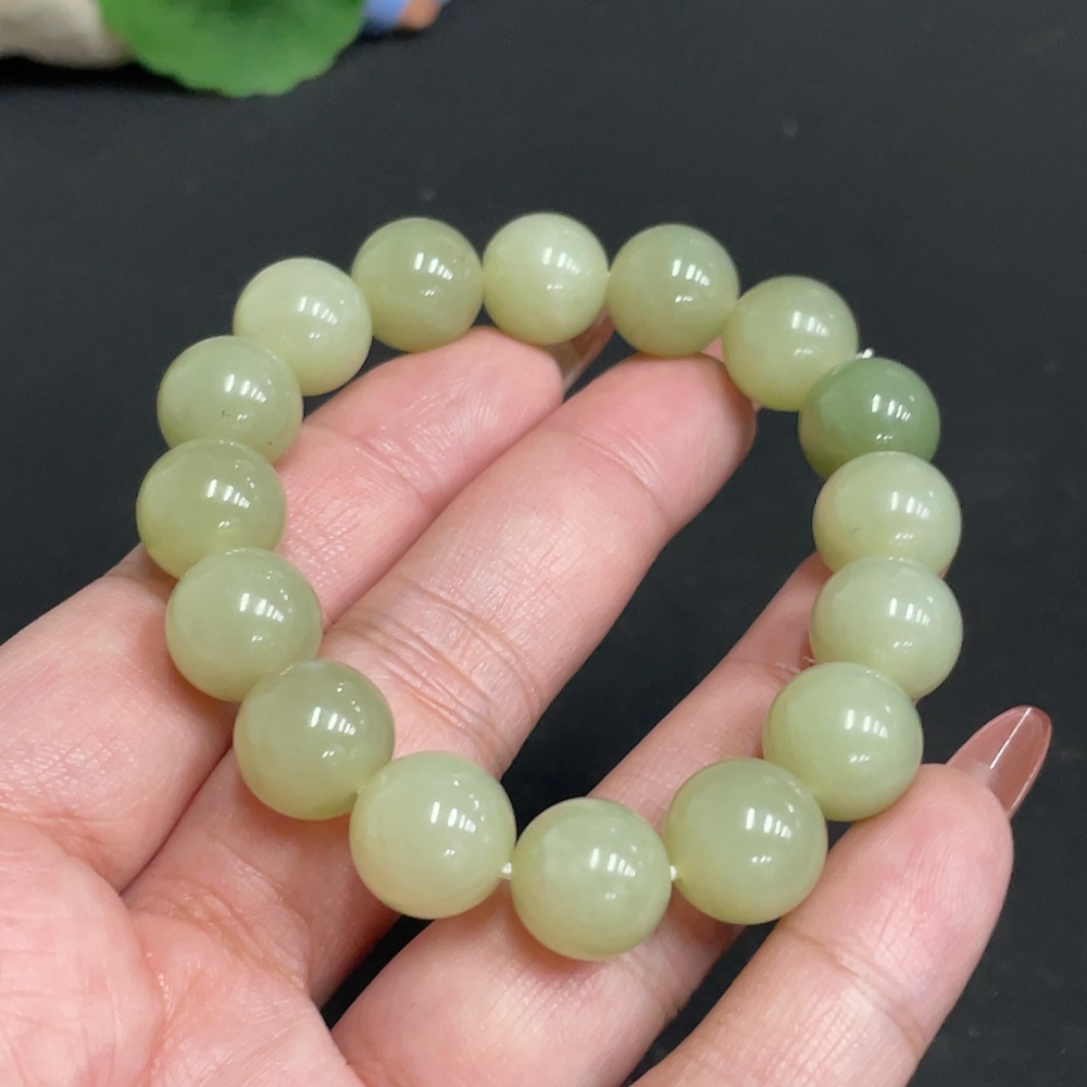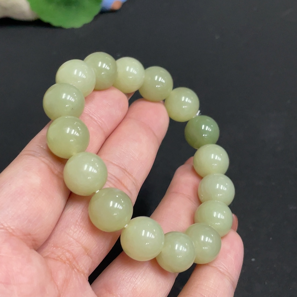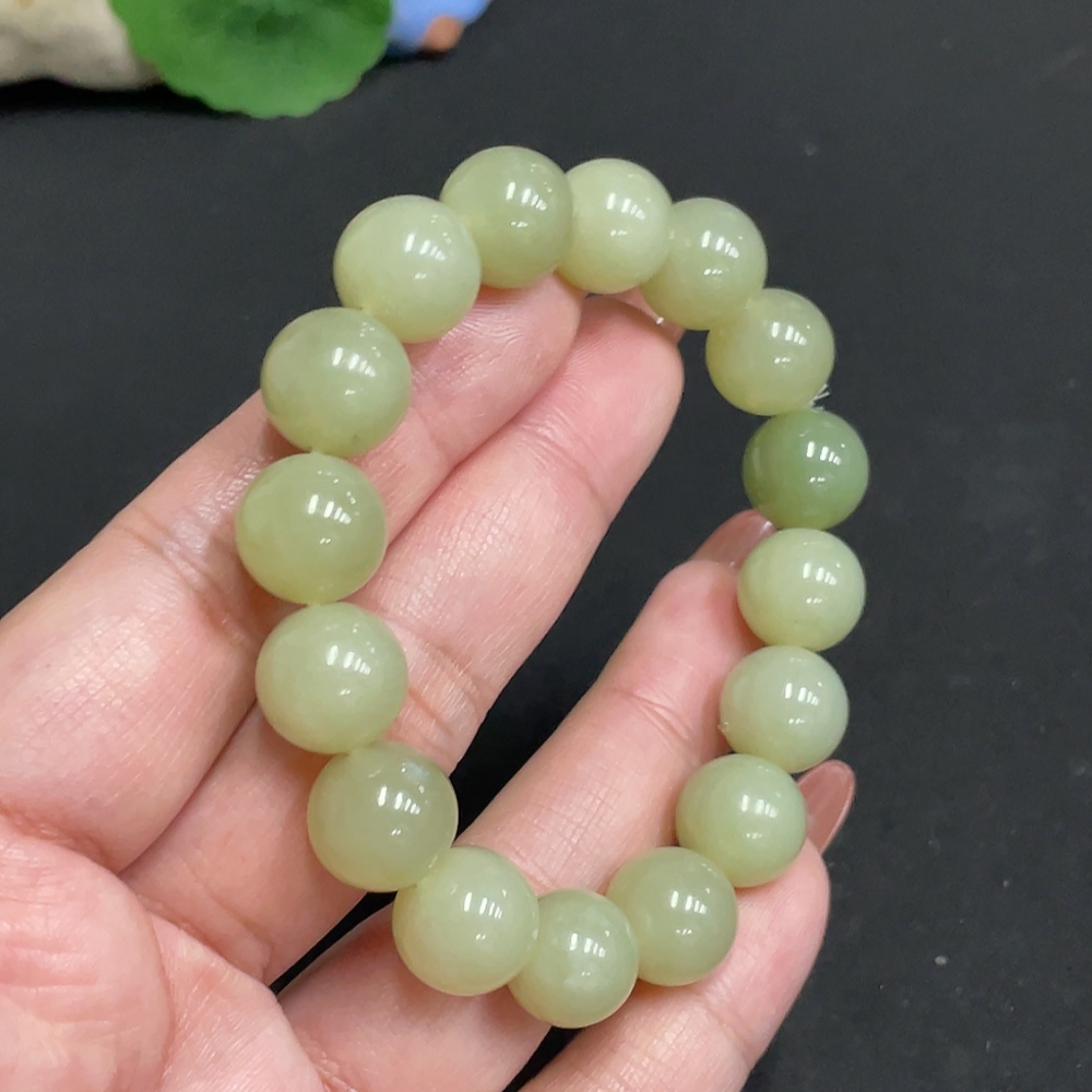 Hetian Jade Bracelet Approx. 11.8mm Beads Total Weight Approx. 42.4g
