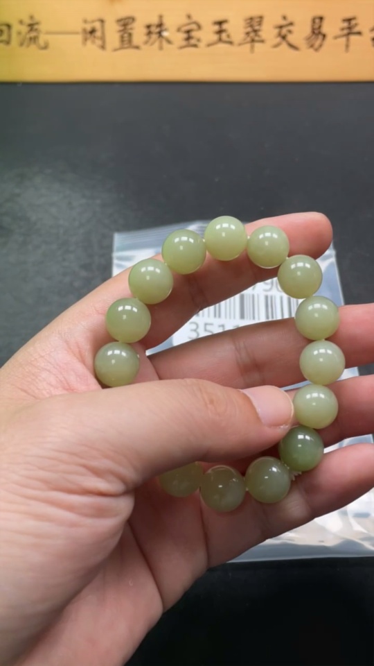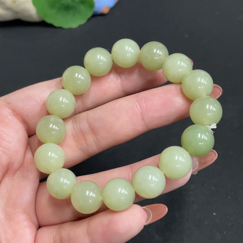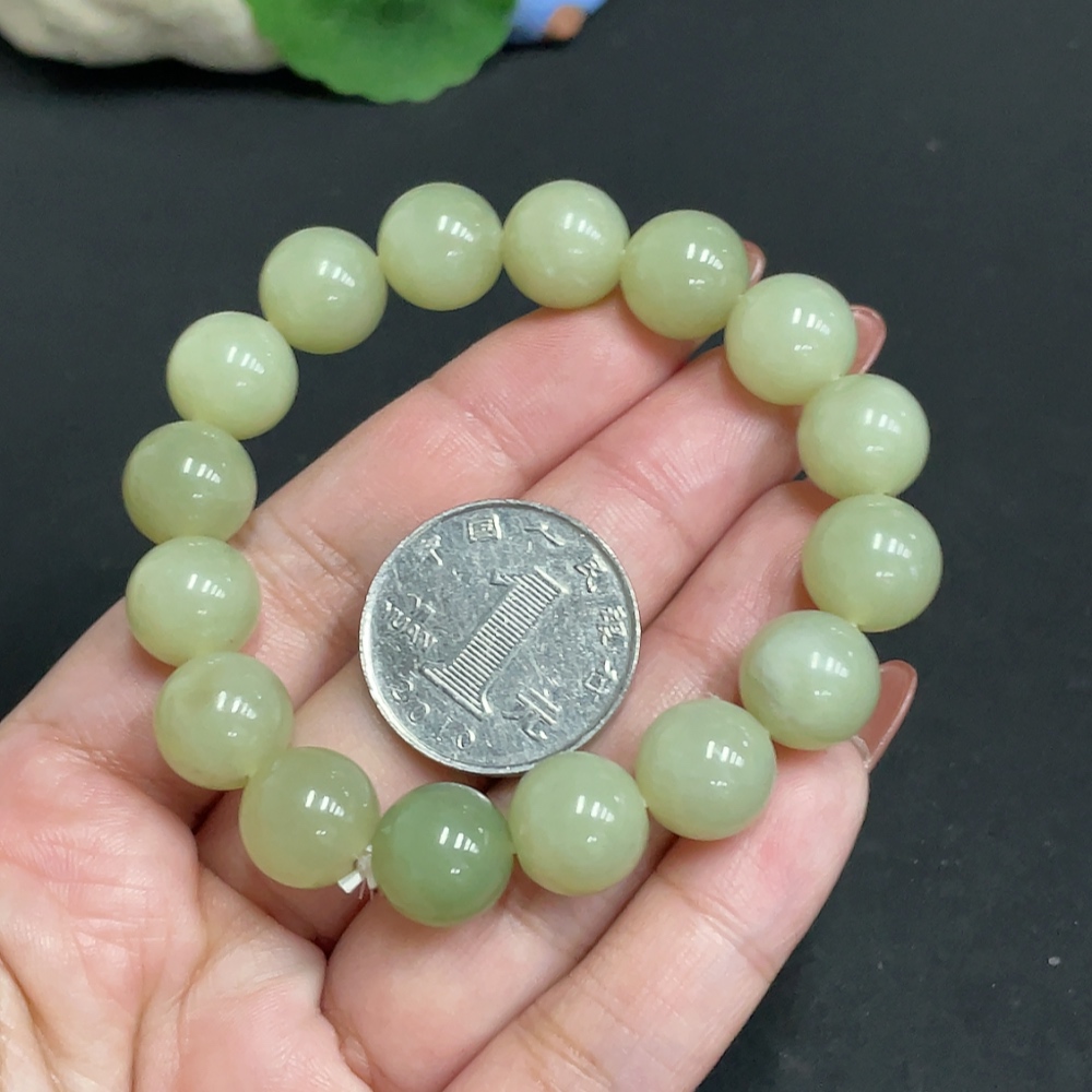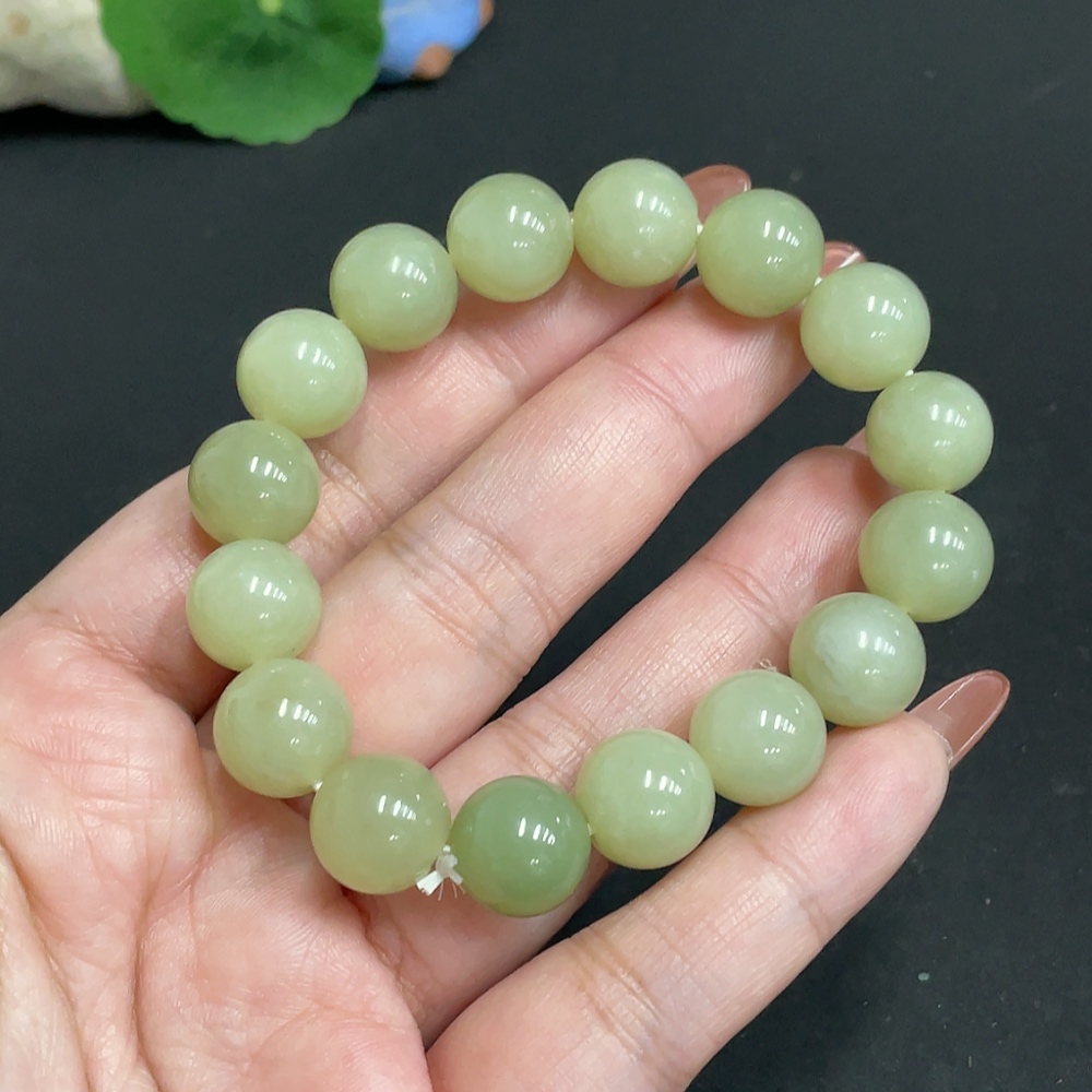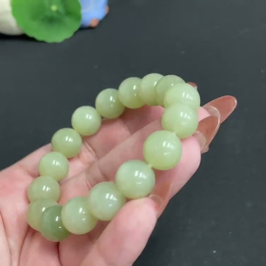 Hetian Jade Bracelet Approx. 11.8mm Beads Total Weight Approx. 42.4g