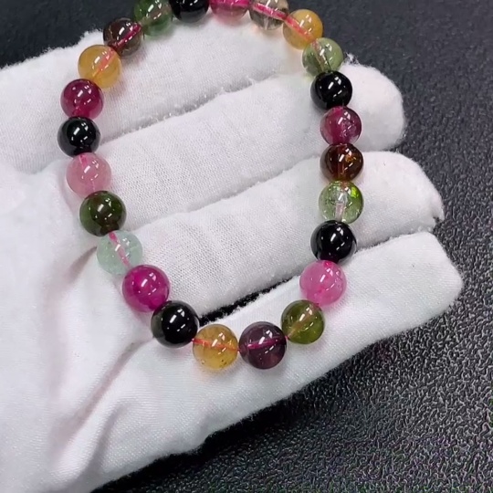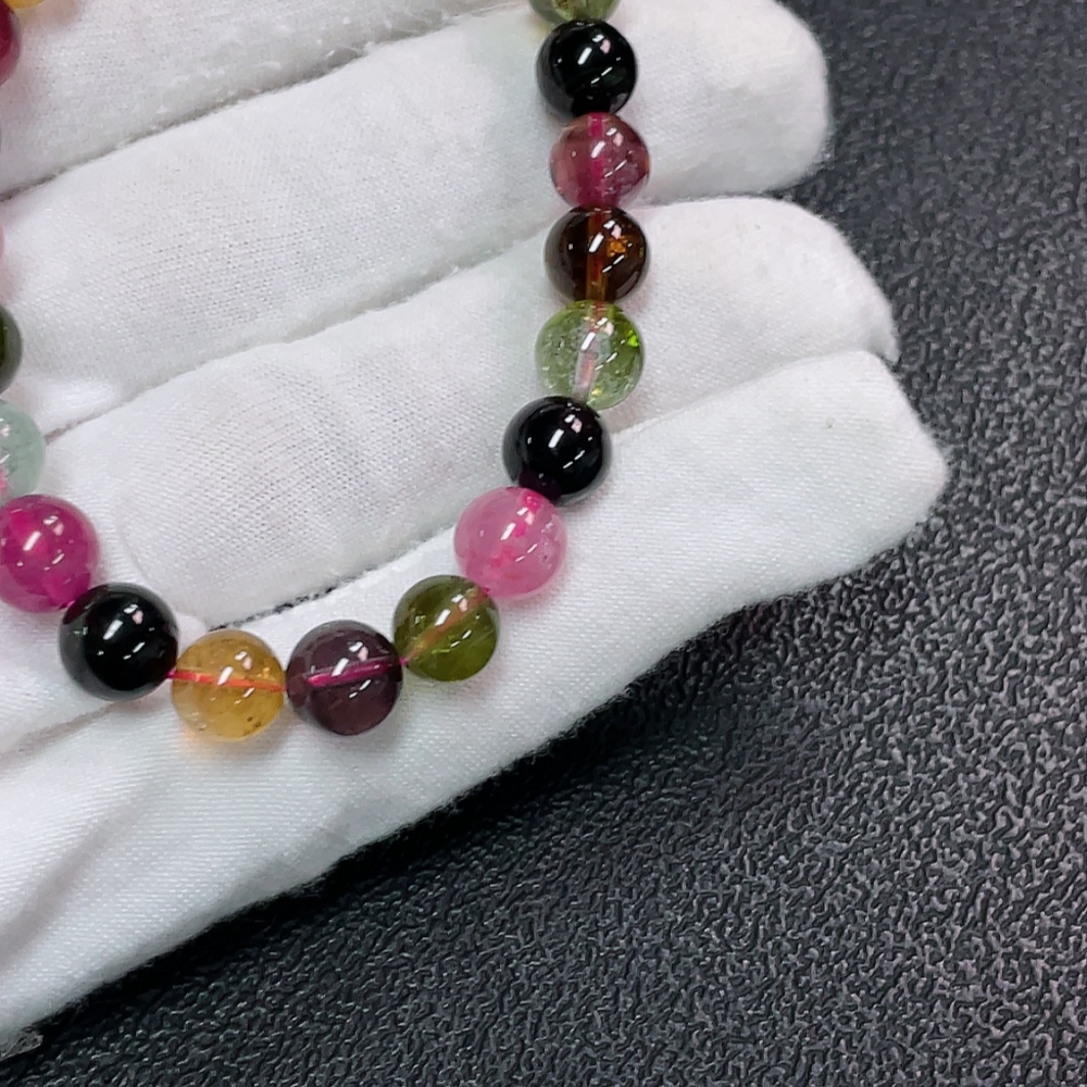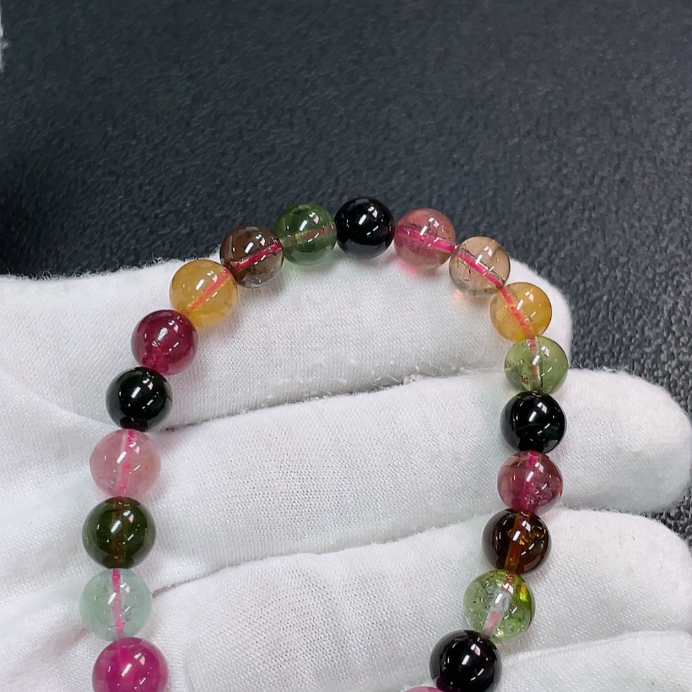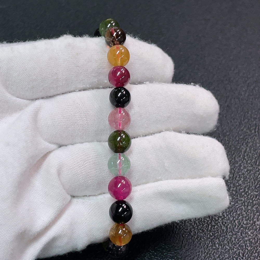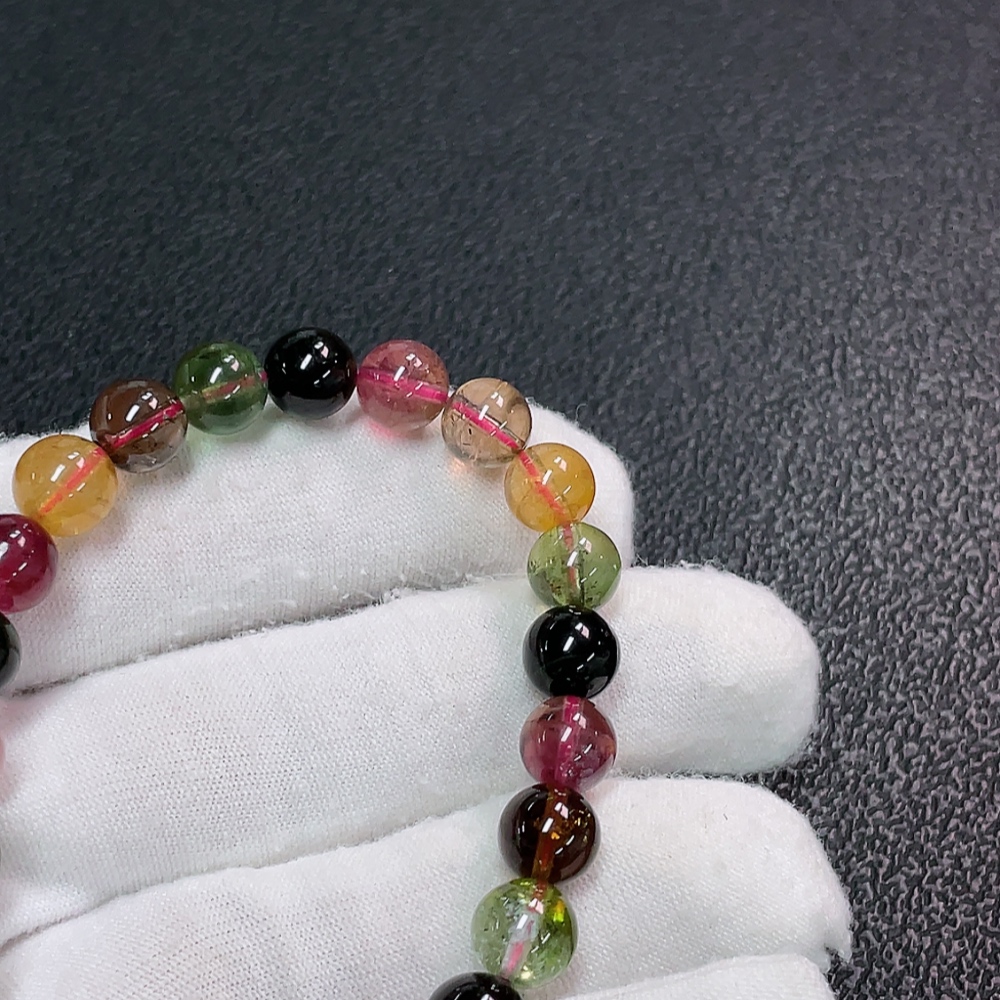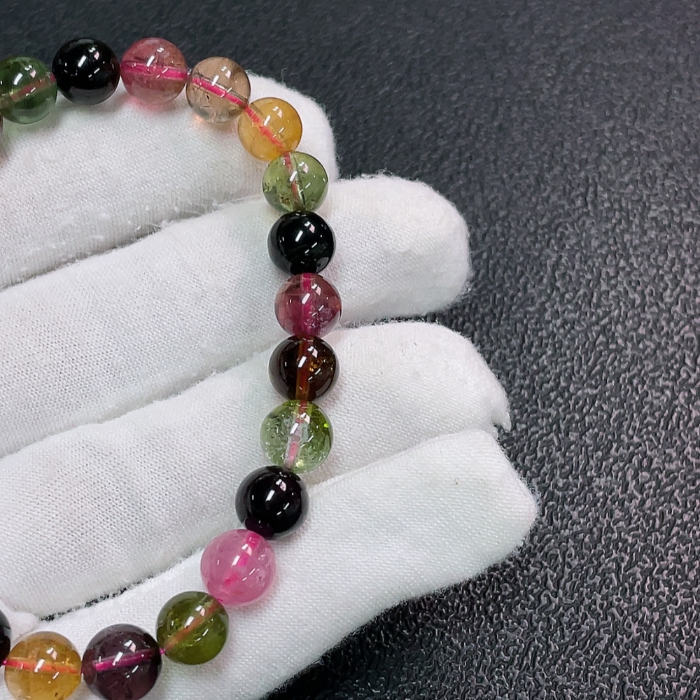 Tourmaline Bracelet with Visible Organic Matter, Total Weight Approx. 17.32g, Size About 7.4mm