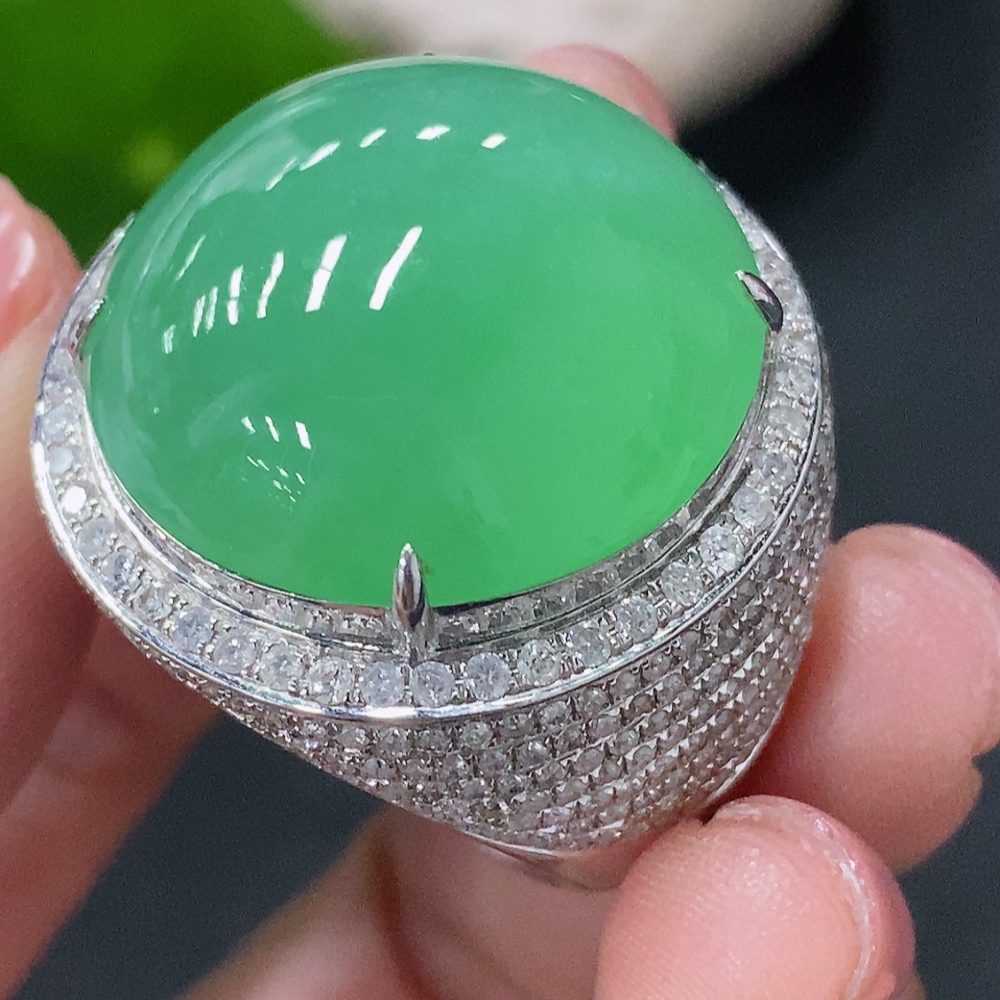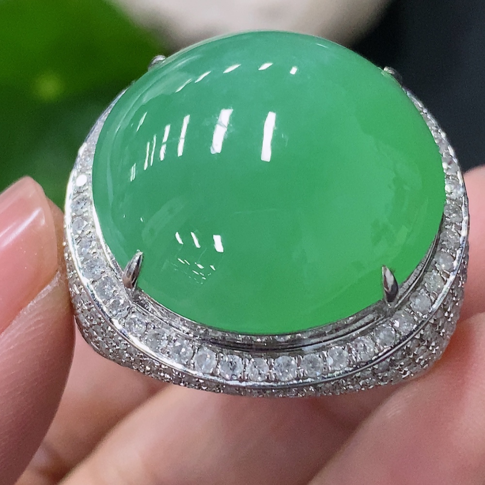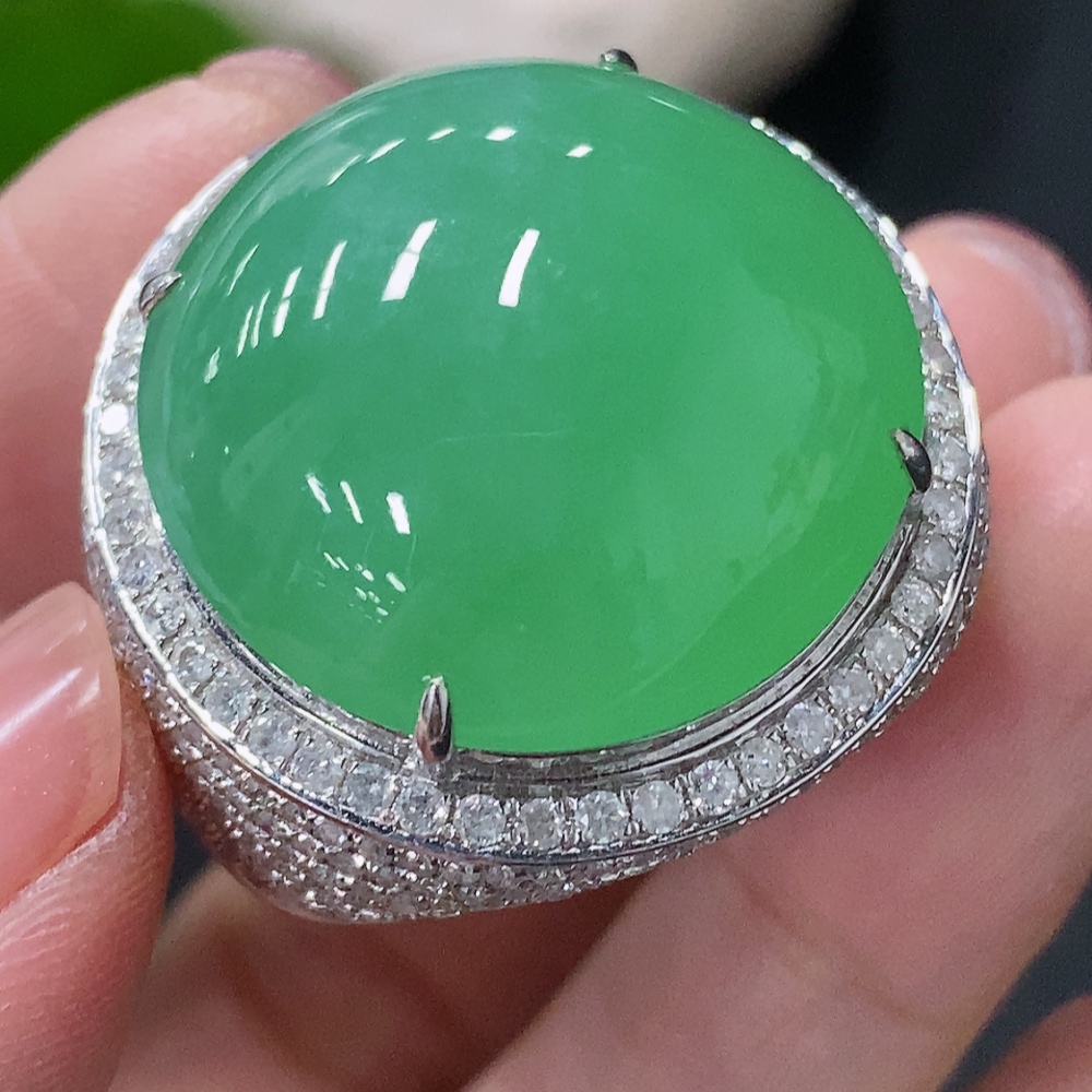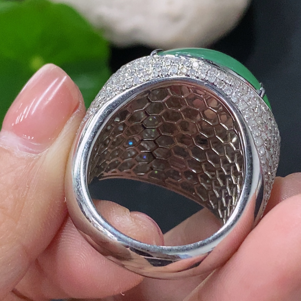 Jadeite and Diamond Ring 18k Size 22 Total Weight Approx. 19.98g