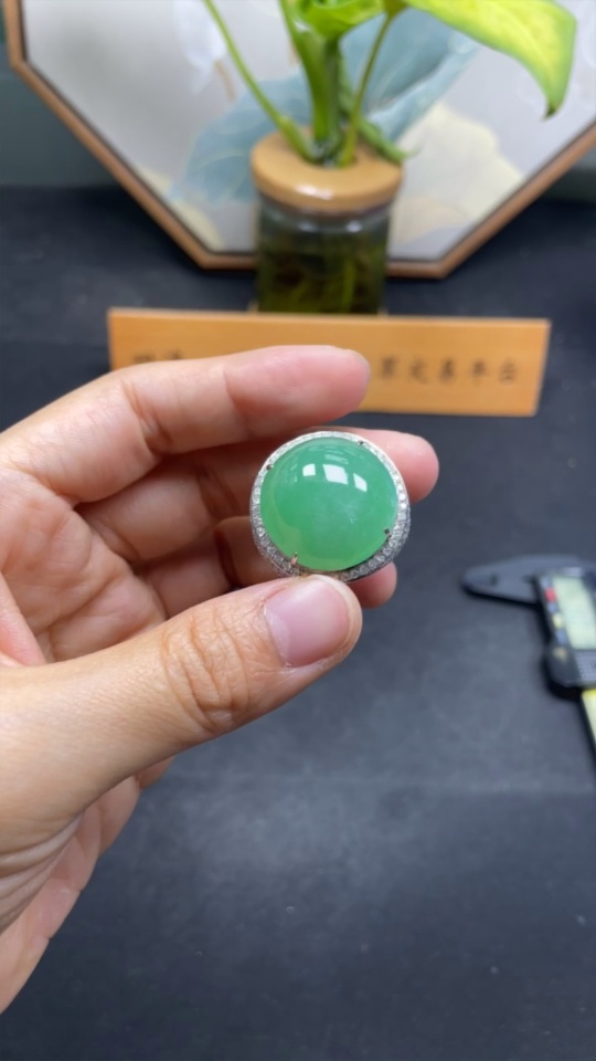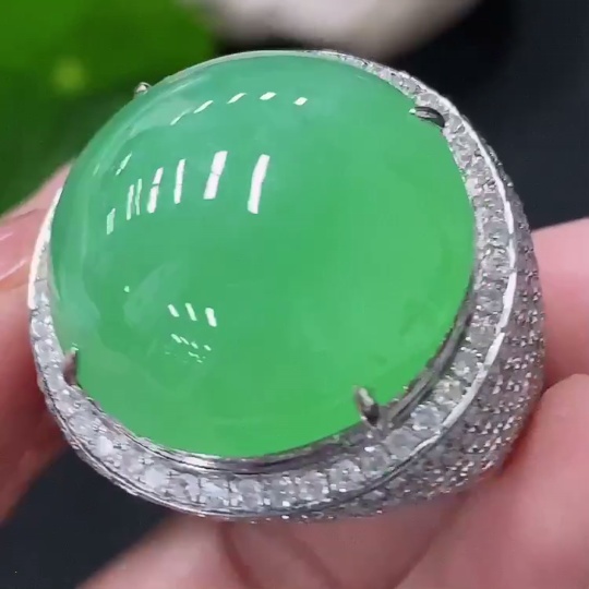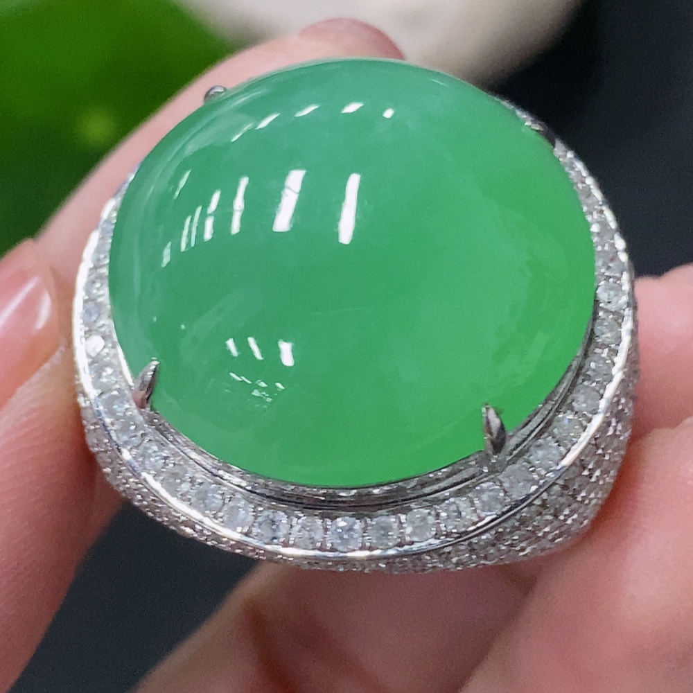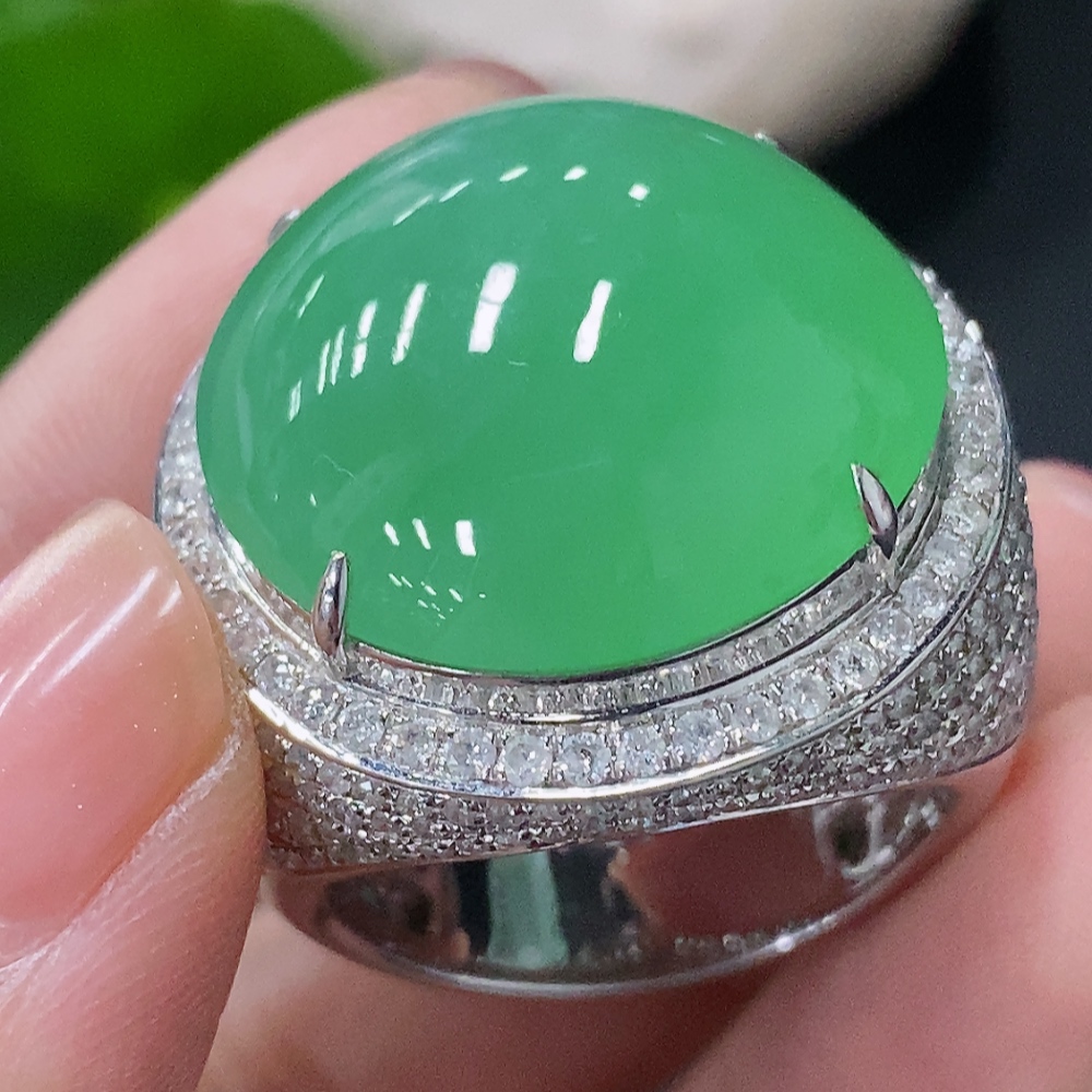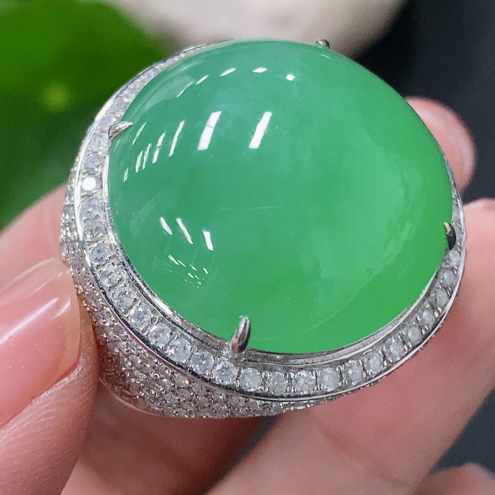 Jadeite and Diamond Ring 18k Size 22 Total Weight Approx. 19.98g