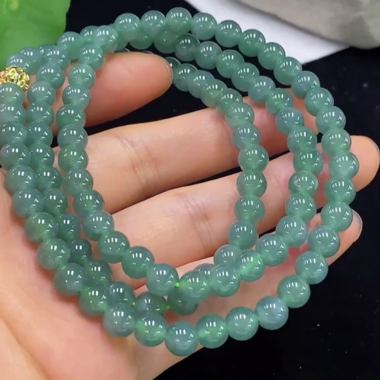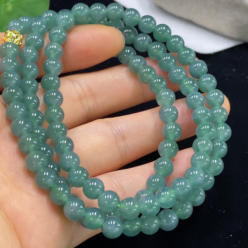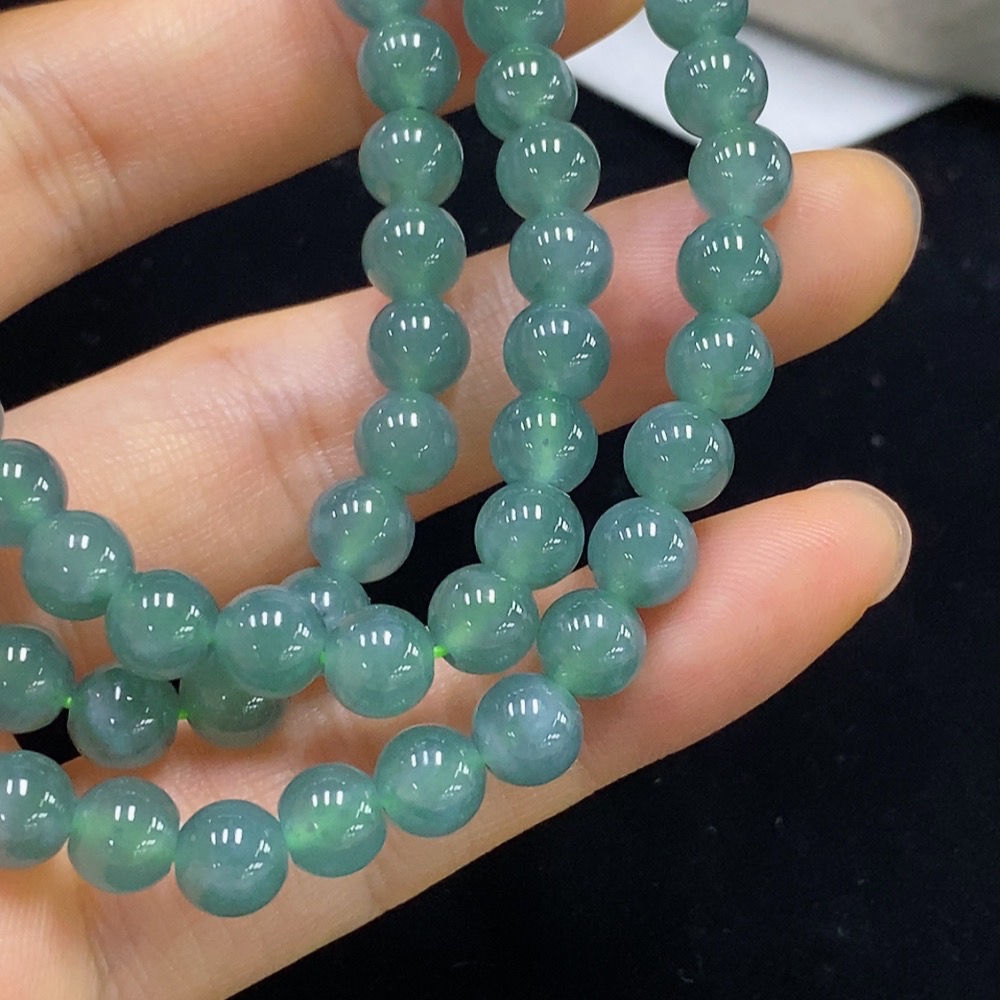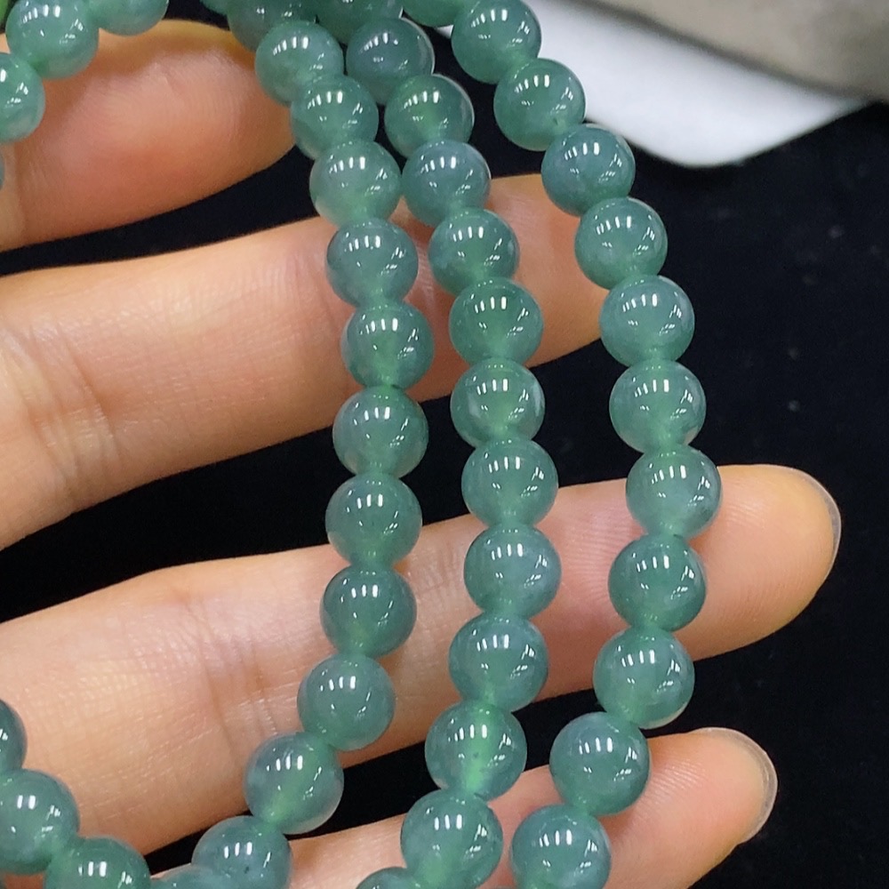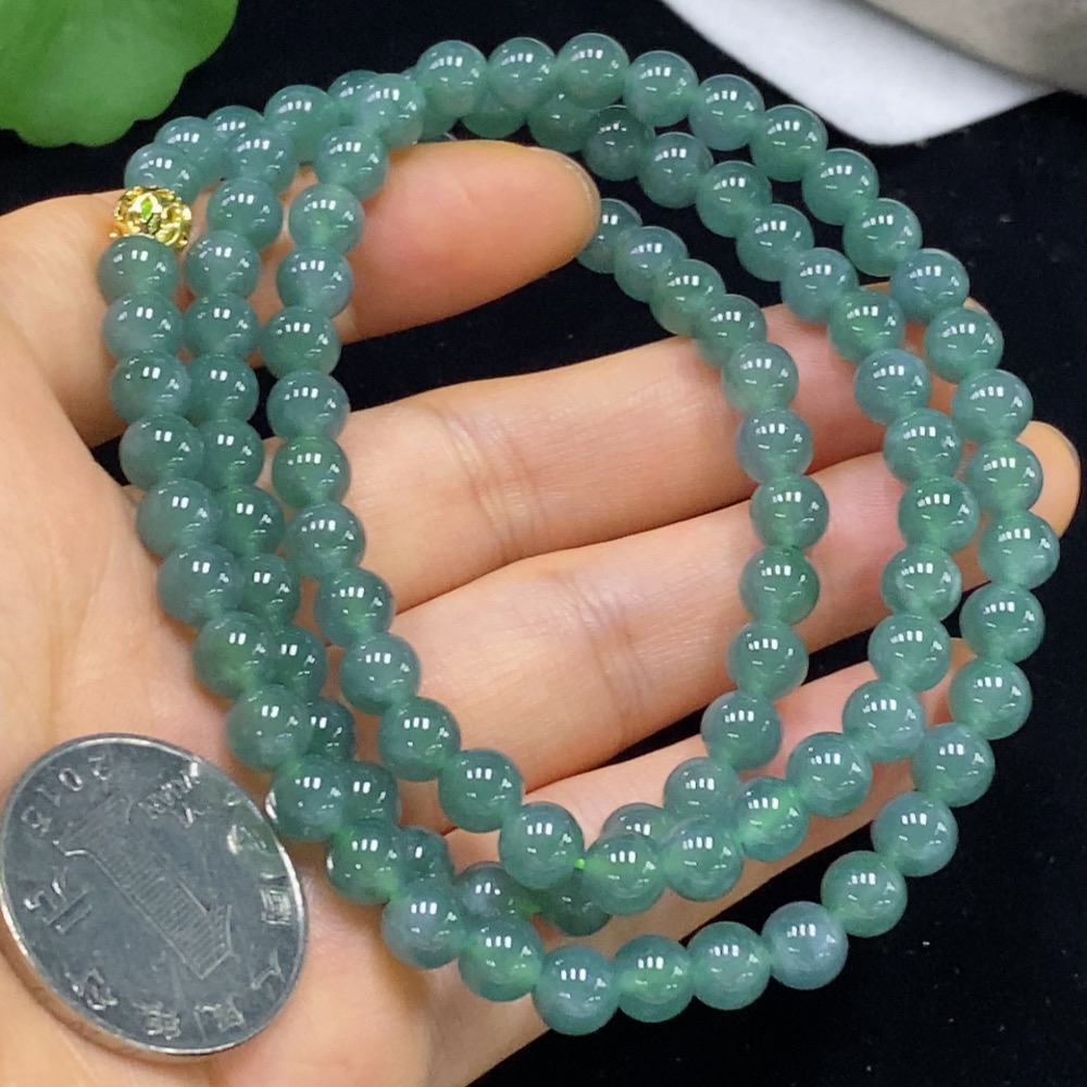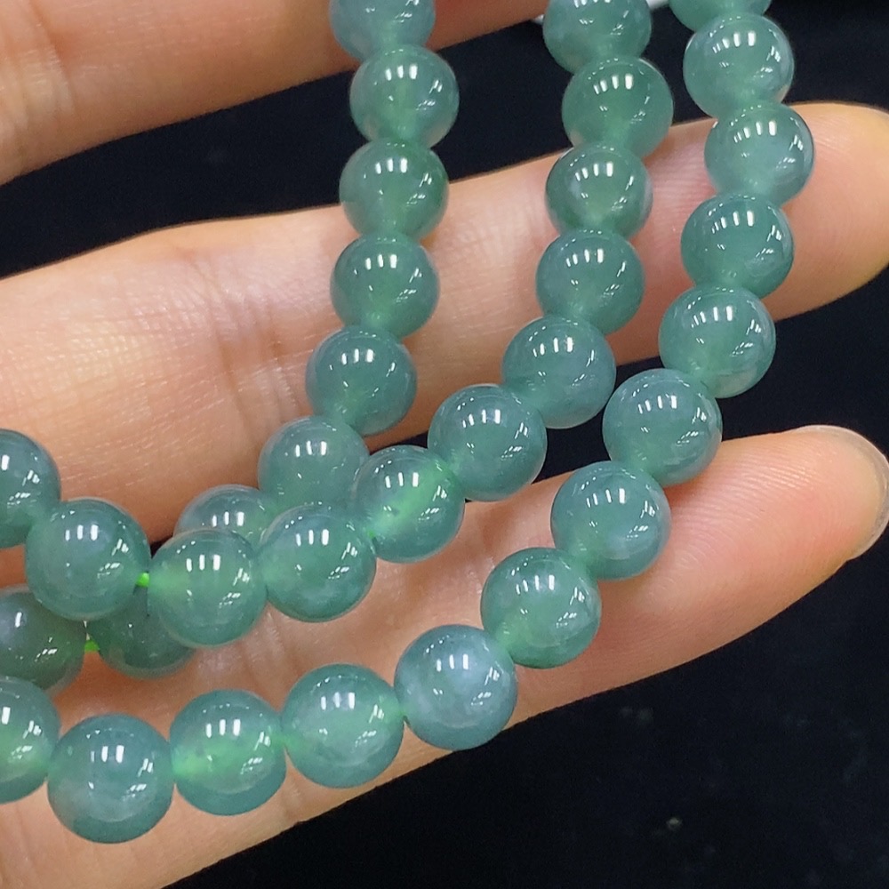 Jadeite Bead Necklace Approx. 6.2mm Non-Gold Total Weight Approx. 47.51g
