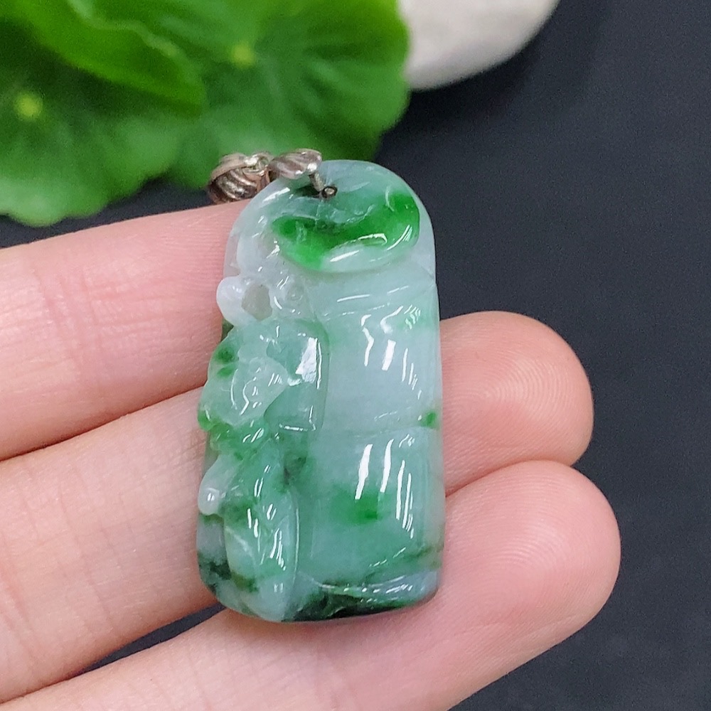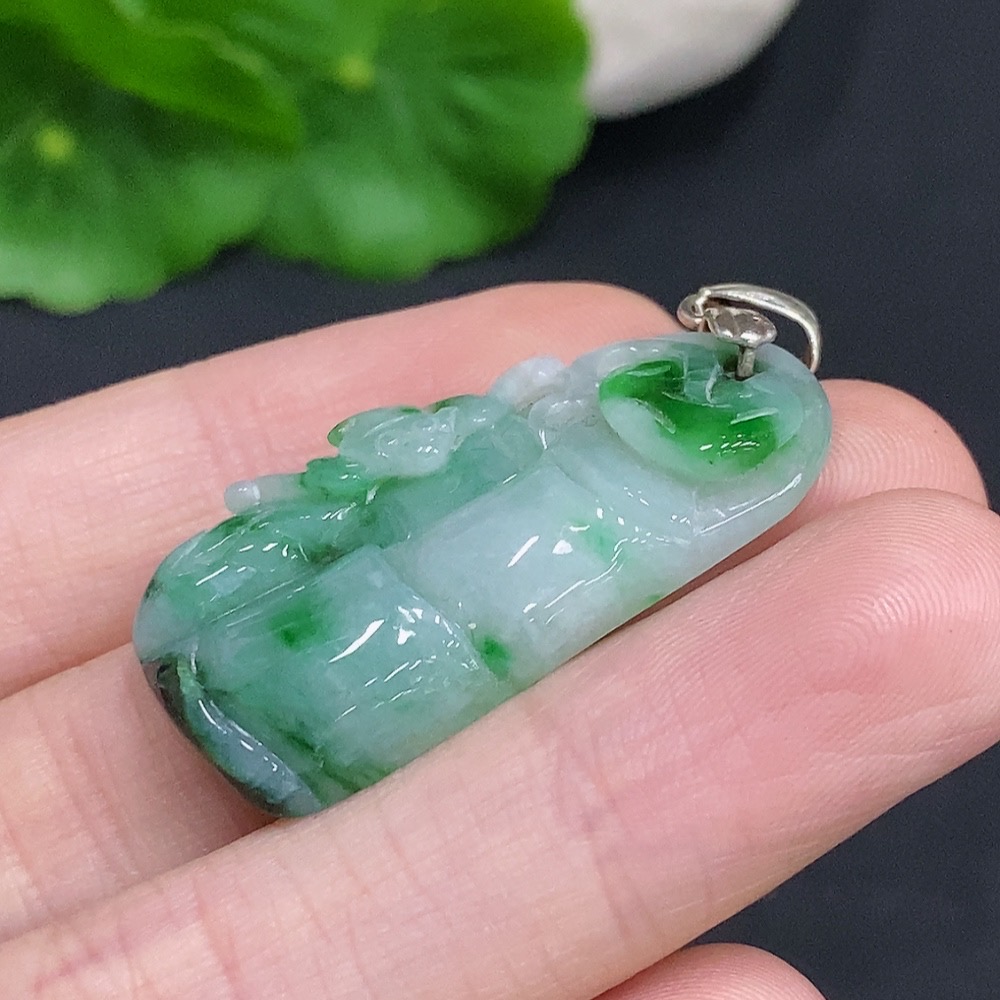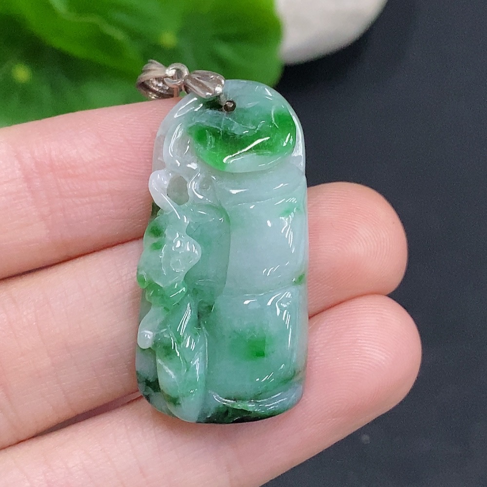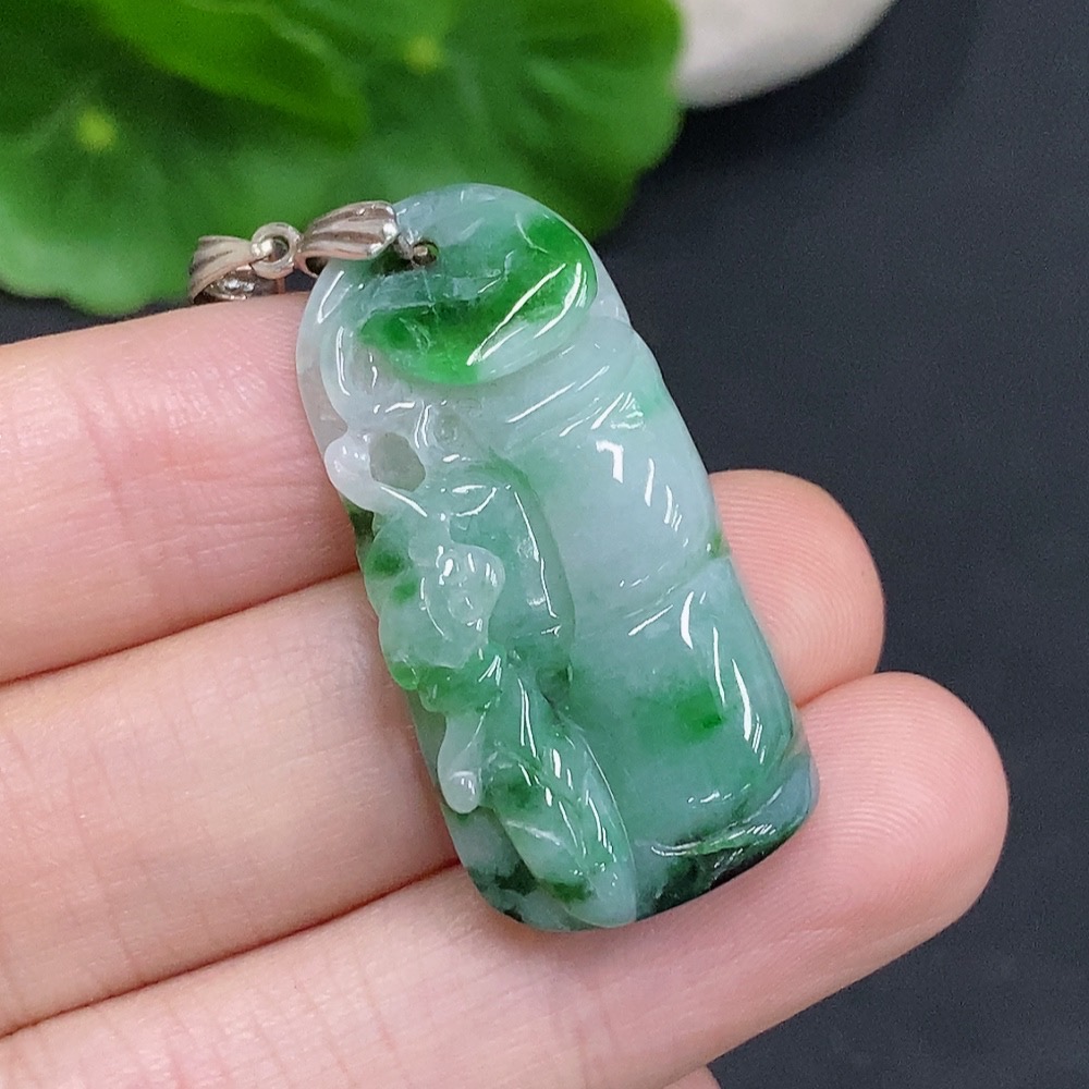 Jadeite Ascending Bamboo Pendant Non-Gold Inlaid Total Weight Approx. 7g