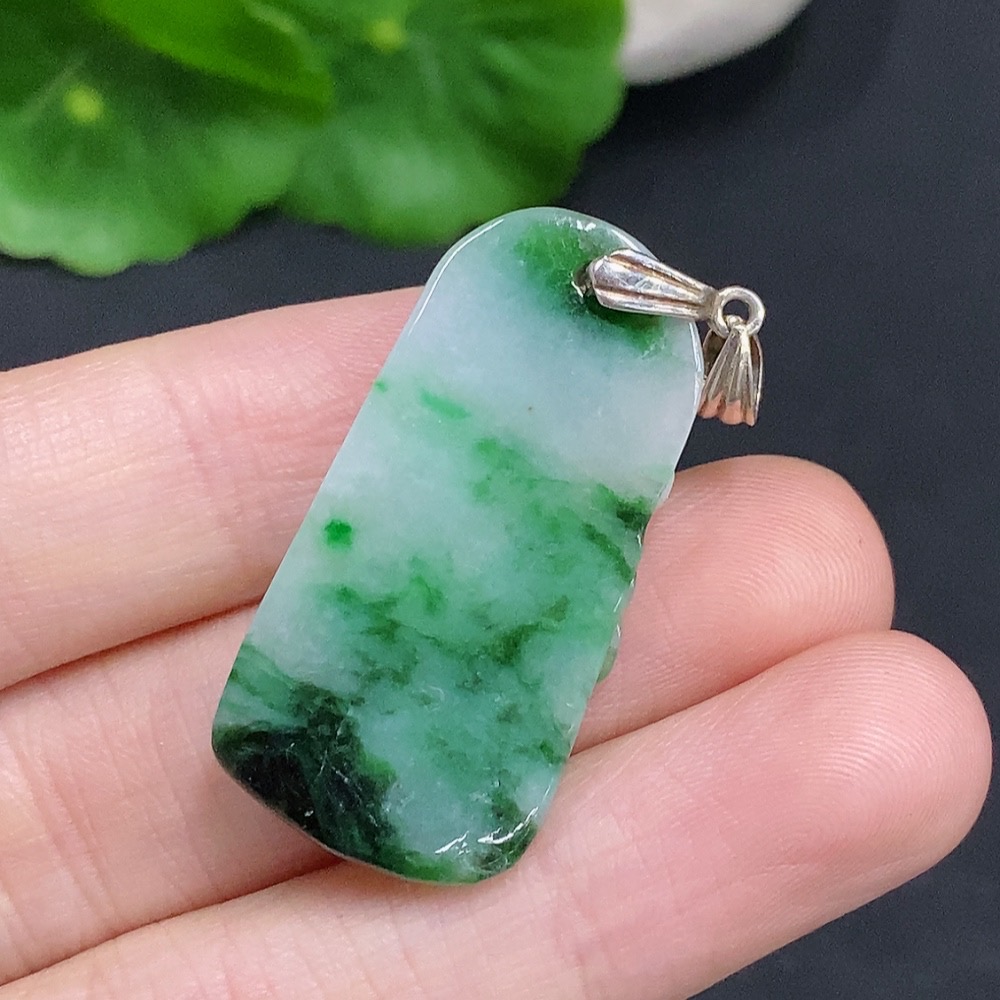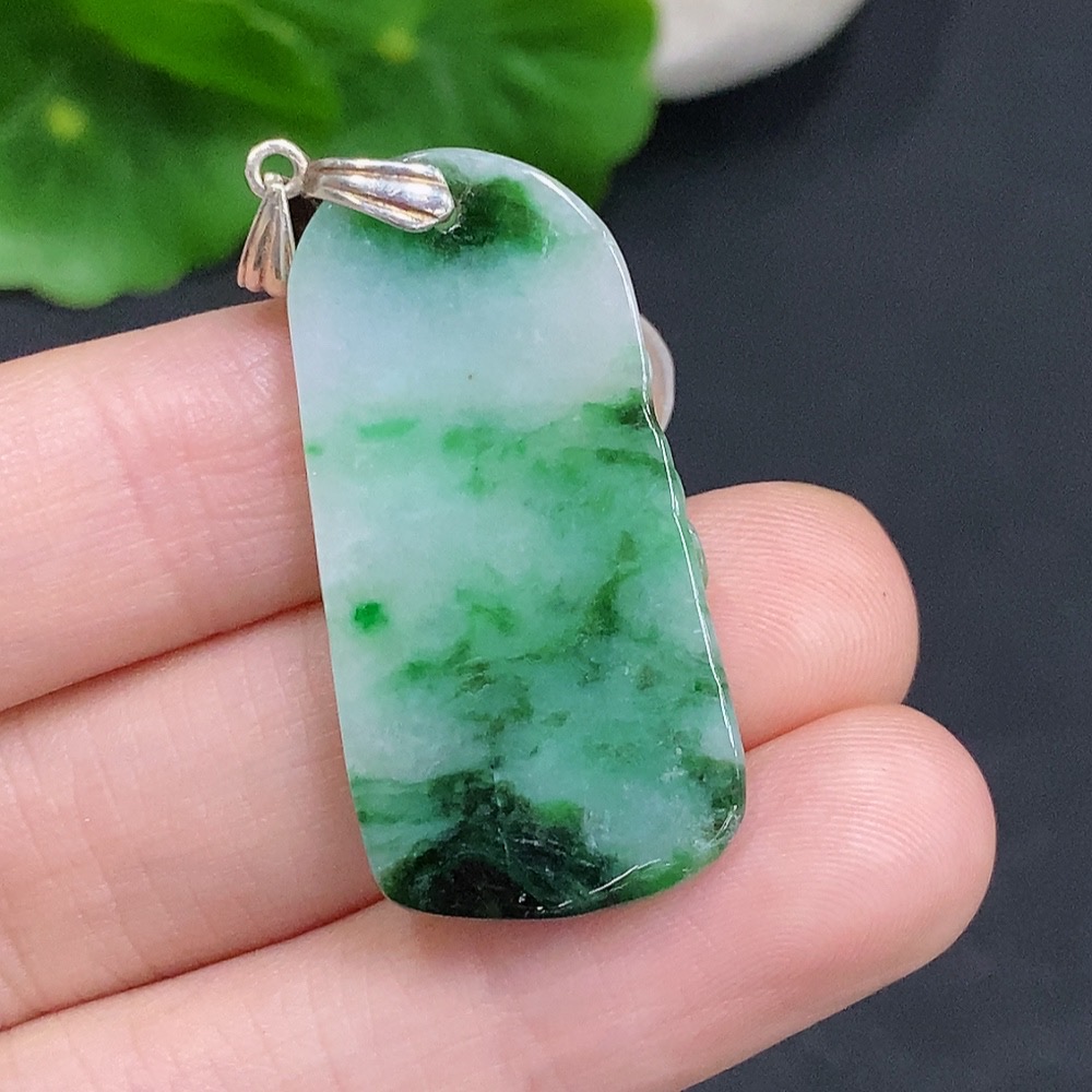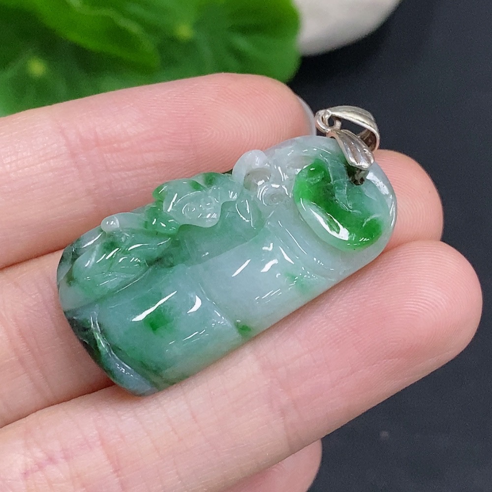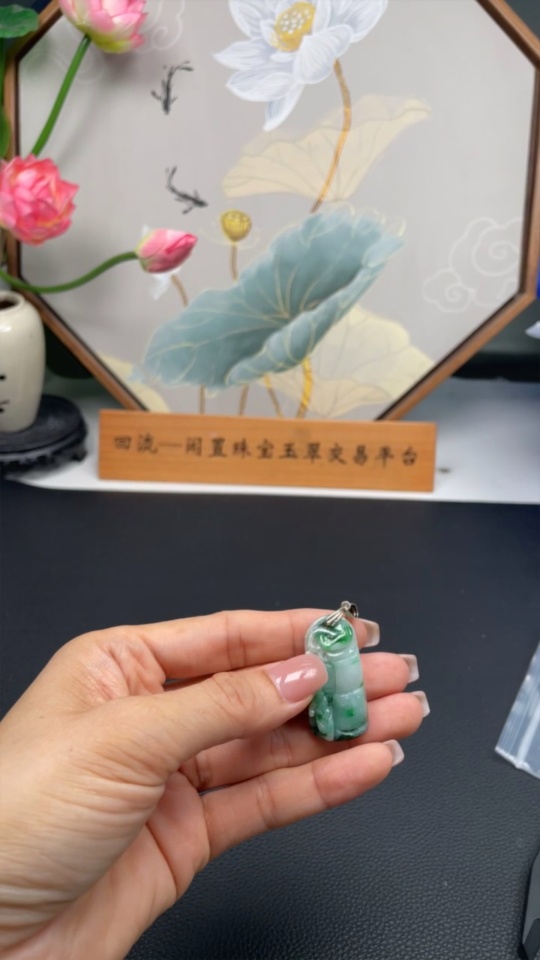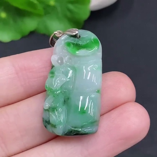 Jadeite Ascending Bamboo Pendant Non-Gold Inlaid Total Weight Approx. 7g