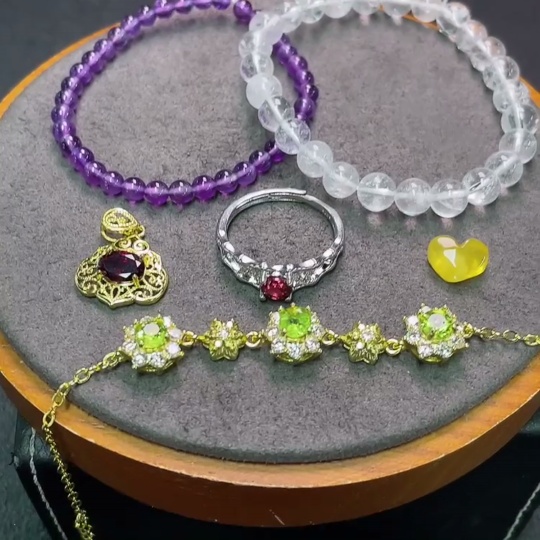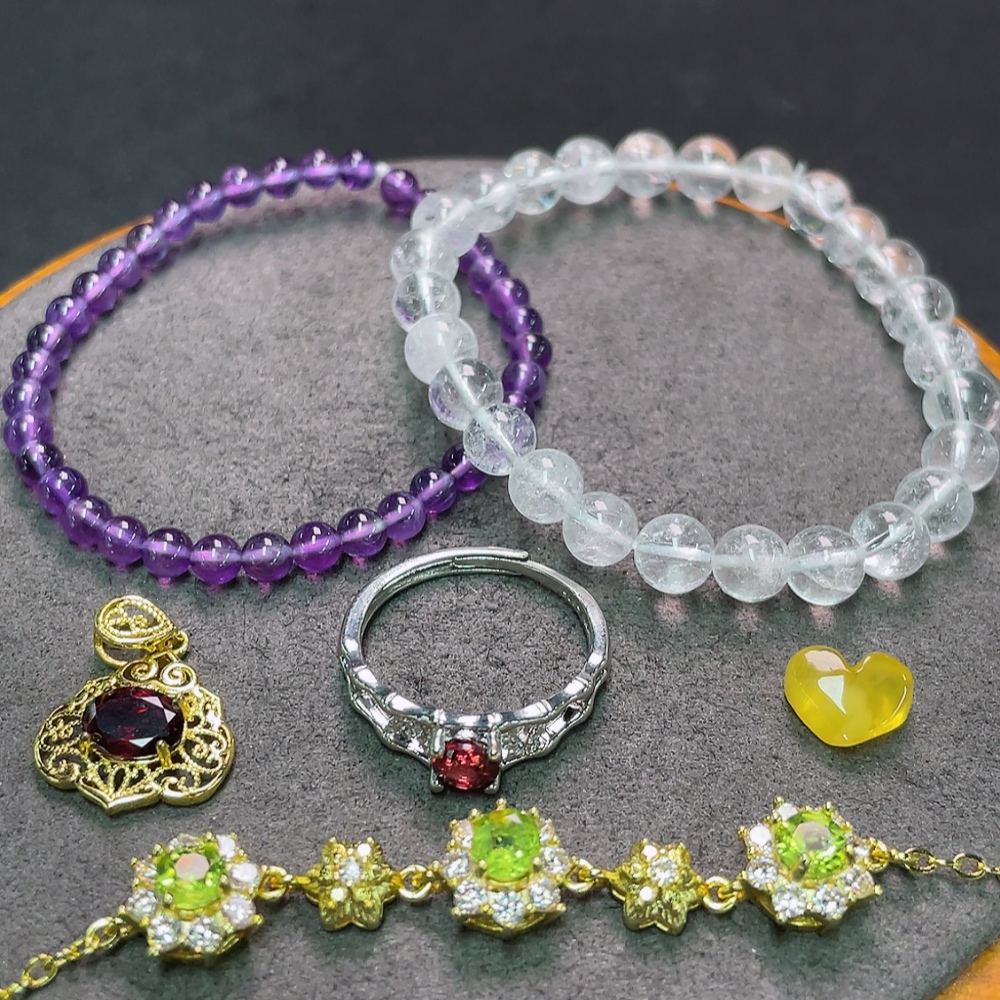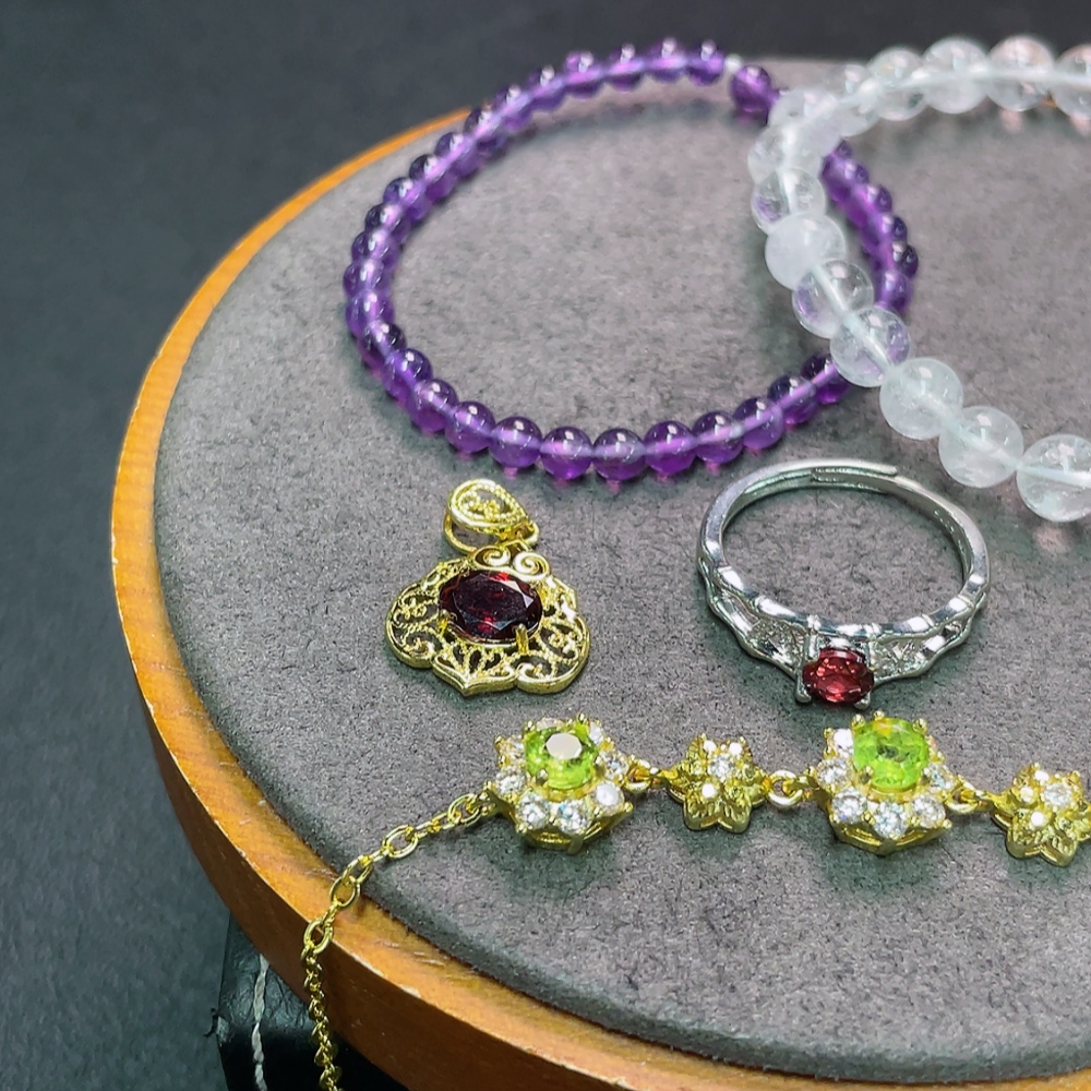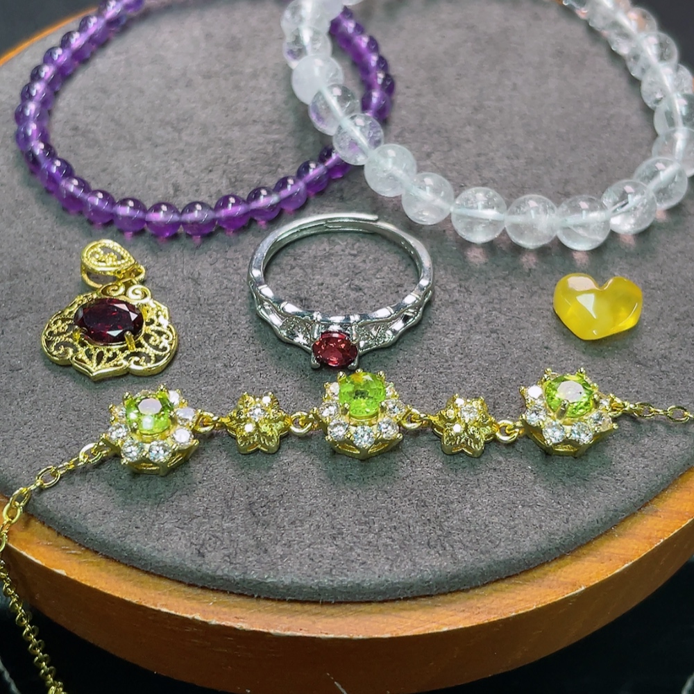 Peridot + Garnet + Amber Beeswax + Crystal Jewelry Non-Gold Total Weight Approx. 24.03g Sell as a Lot