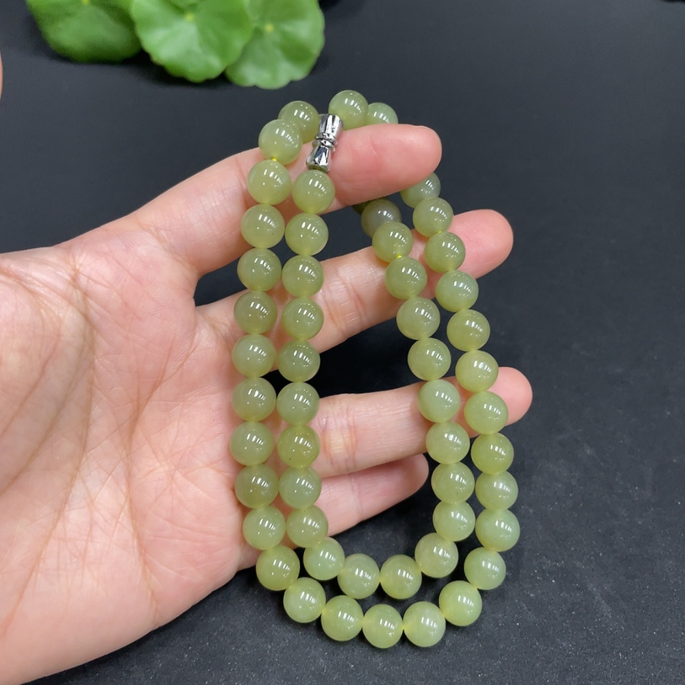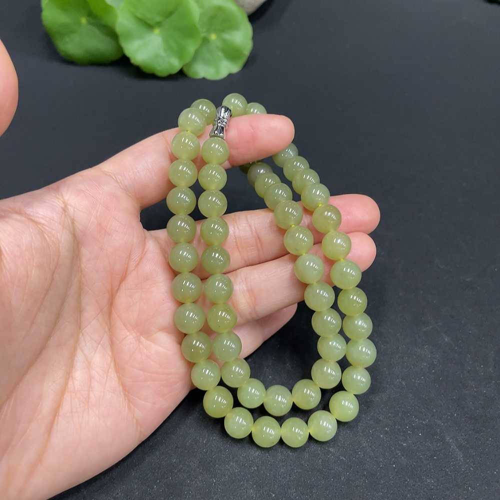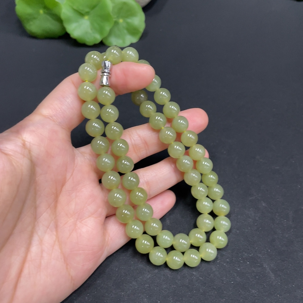 Hetian Jade Bead Necklace Approx. 7.6mm Total Weight Approx. 45.5g