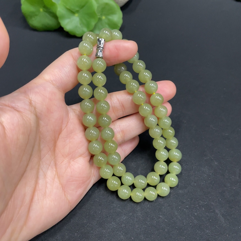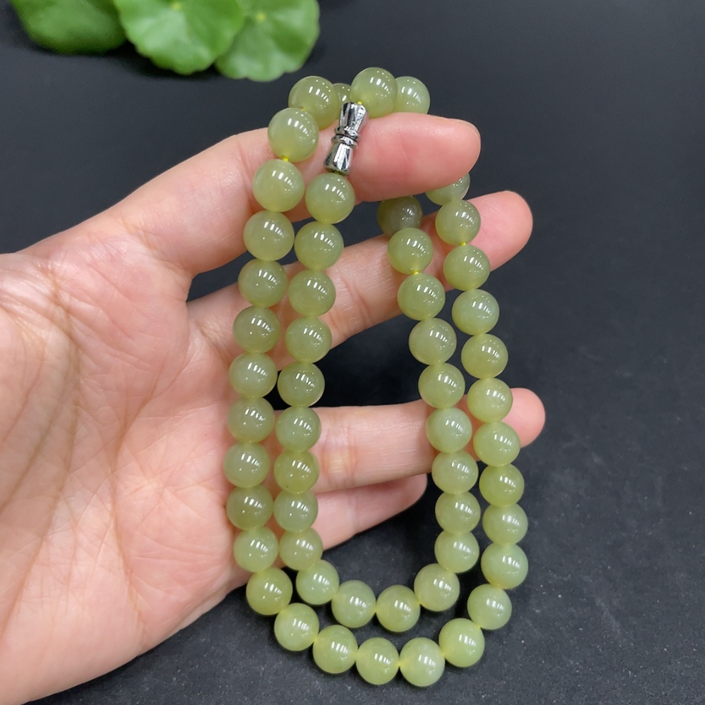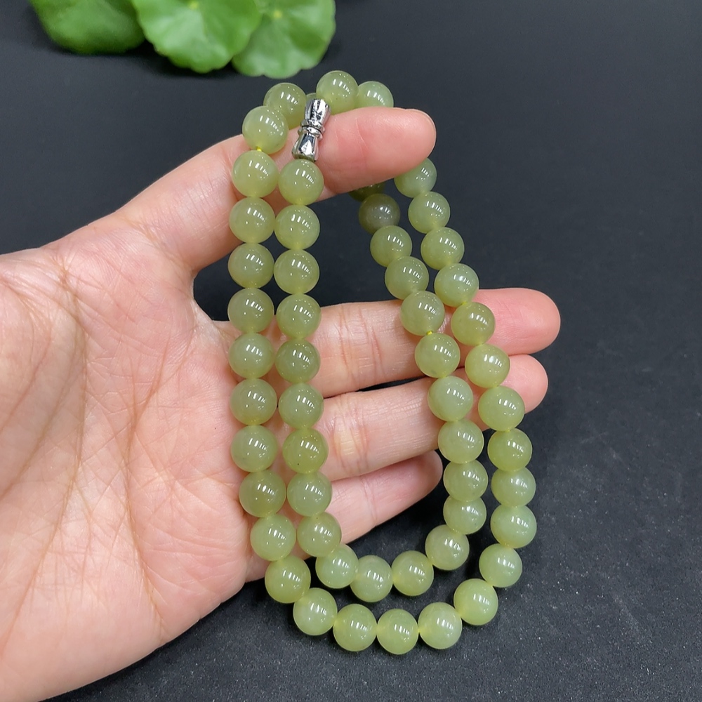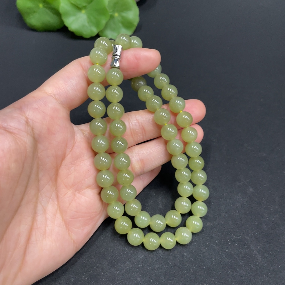 Hetian Jade Bead Necklace Approx. 7.6mm Total Weight Approx. 45.5g